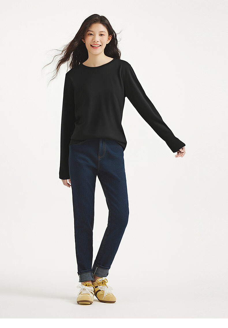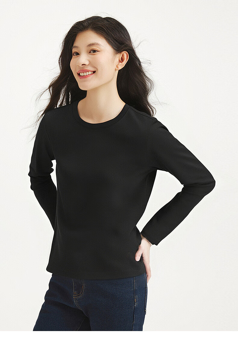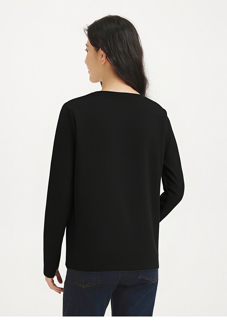 热风2025年秋季新款女士基础圆领长袖T 01黑色 S