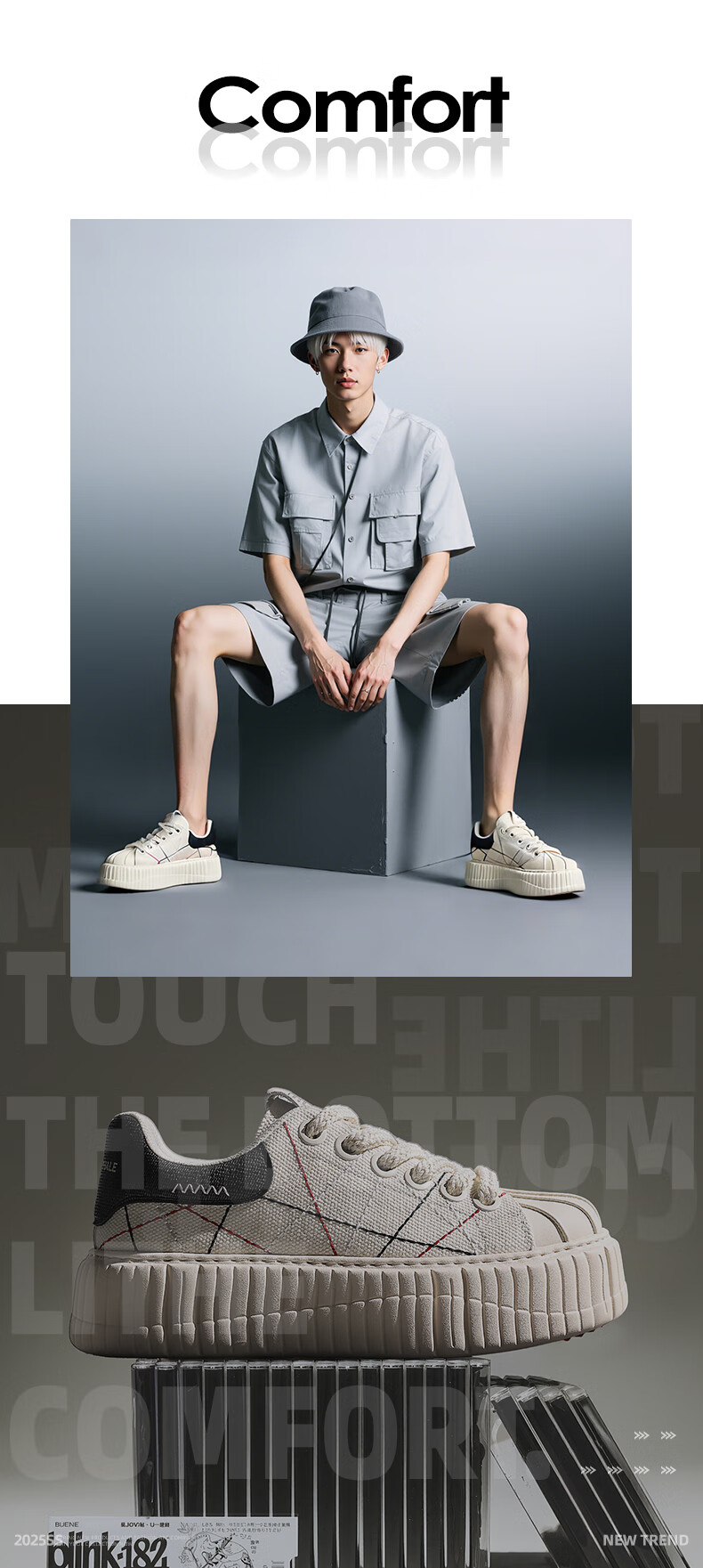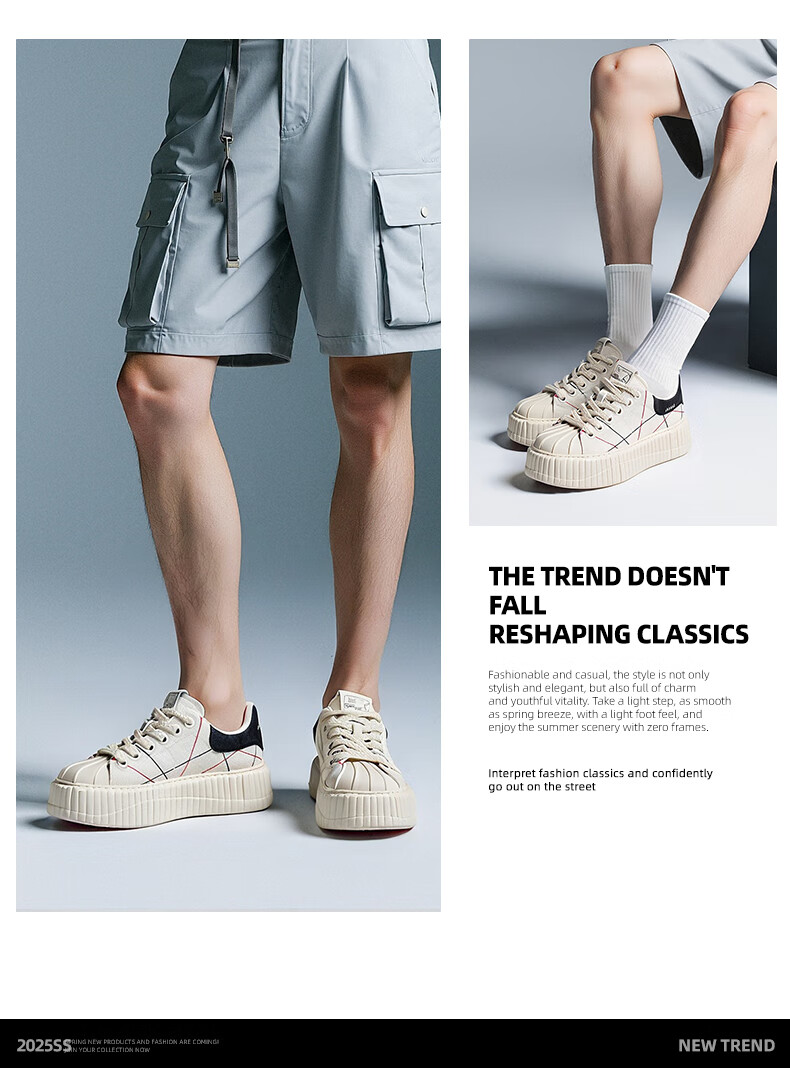 马克华菲男鞋厚底老爹鞋2025新款秋季增高鞋子男士运动休闲鞋 白棕 45
