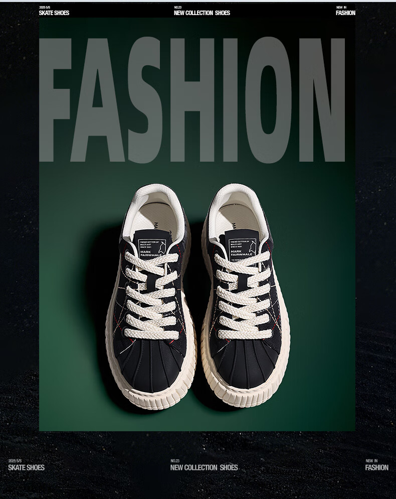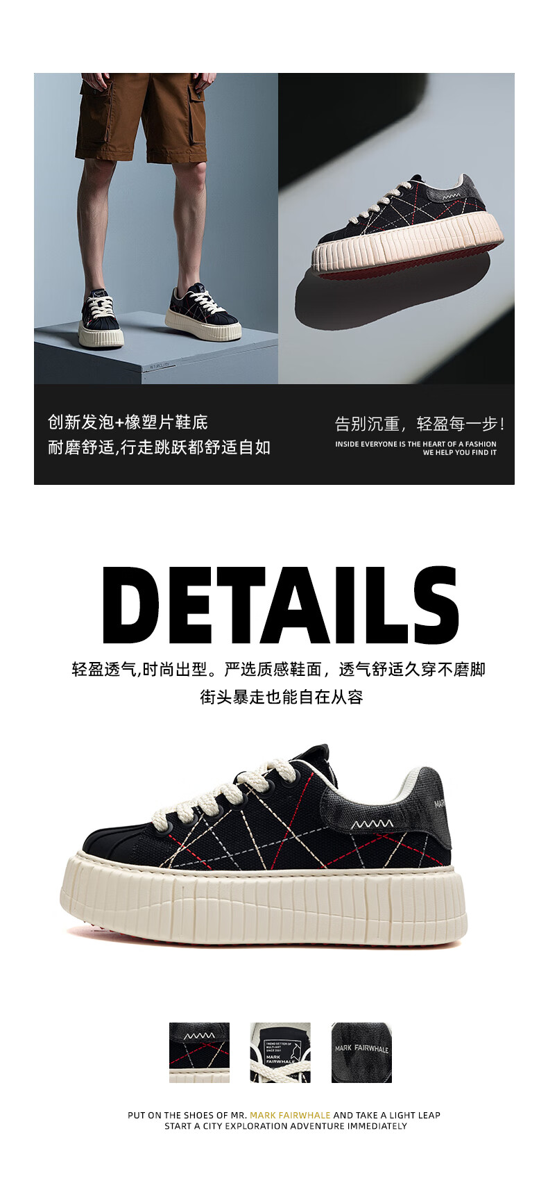 马克华菲男鞋2025新款休闲鞋男款百搭潮鞋小白运动板鞋夏款 曜石黑 39
