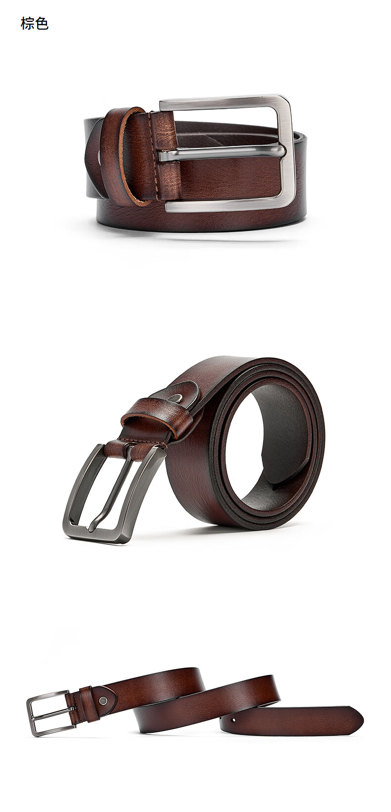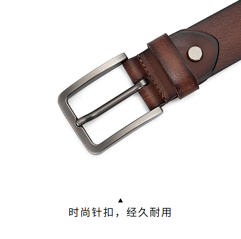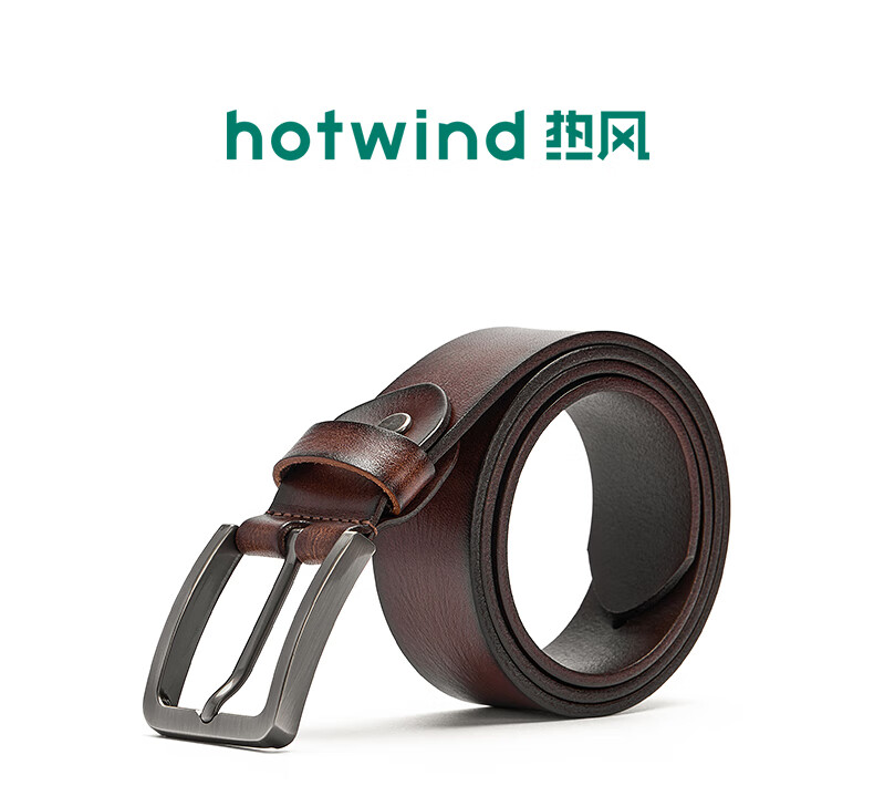 热风【商场同款】2025年秋季新款男士复古擦色原皮针扣皮带 02棕色 110cm
