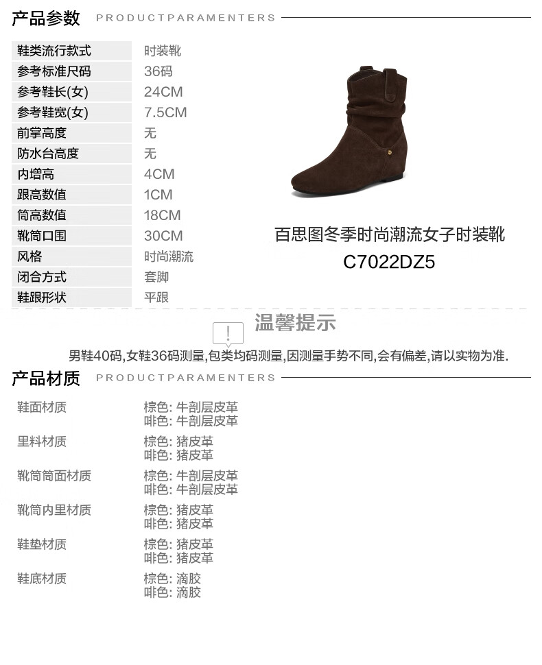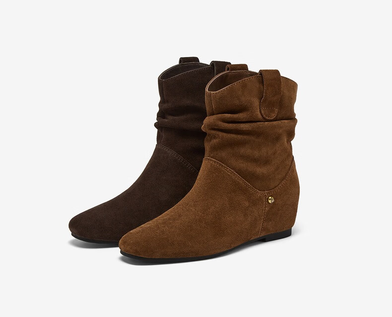 百思图【牧歌谣】25冬新款真皮西部堆堆靴通勤棕色女短靴C7022DZ5 啡色 39