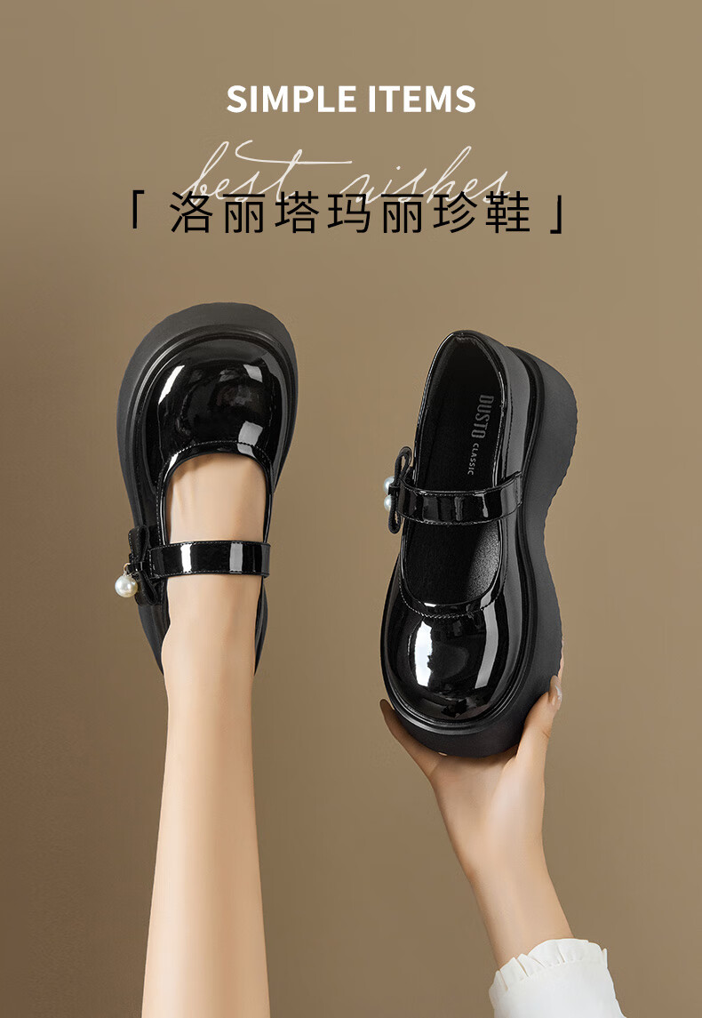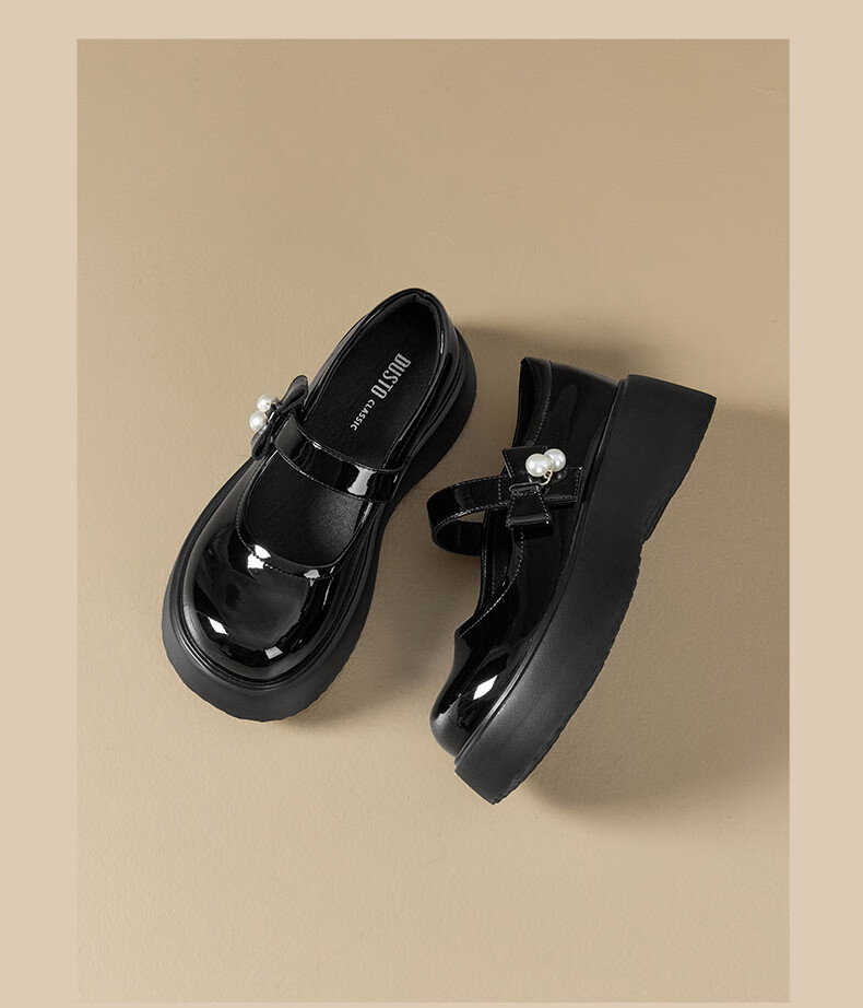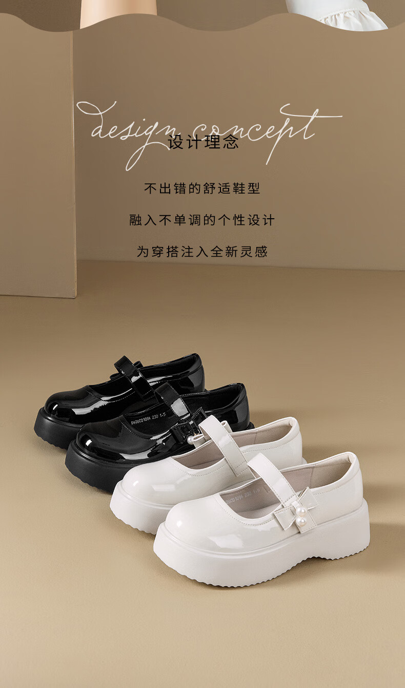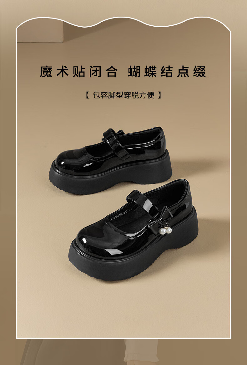 大东玛丽珍鞋女鞋2026年春季新款厚底洛丽塔单鞋0109 黑色 35