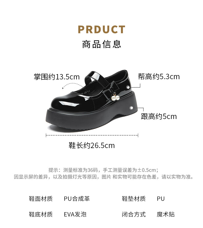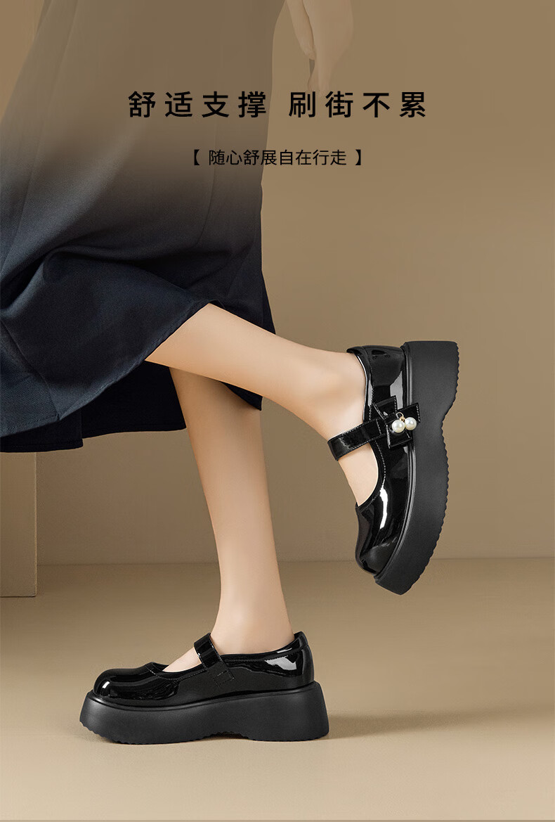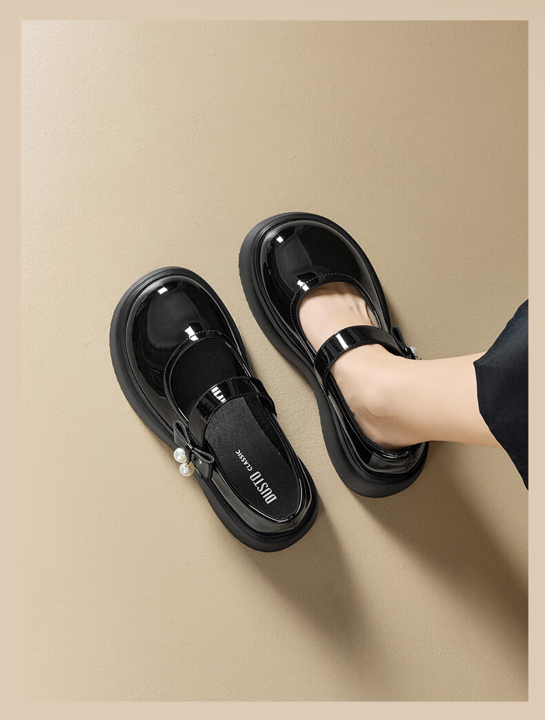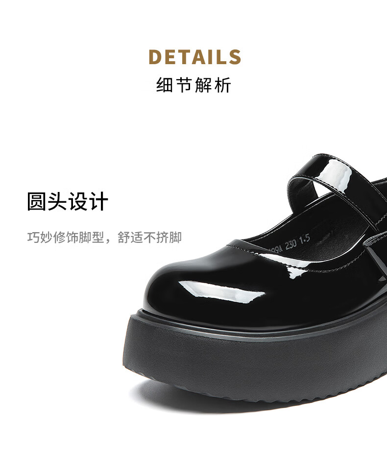 大东玛丽珍鞋女鞋2026年春季新款厚底洛丽塔单鞋0109 黑色 35