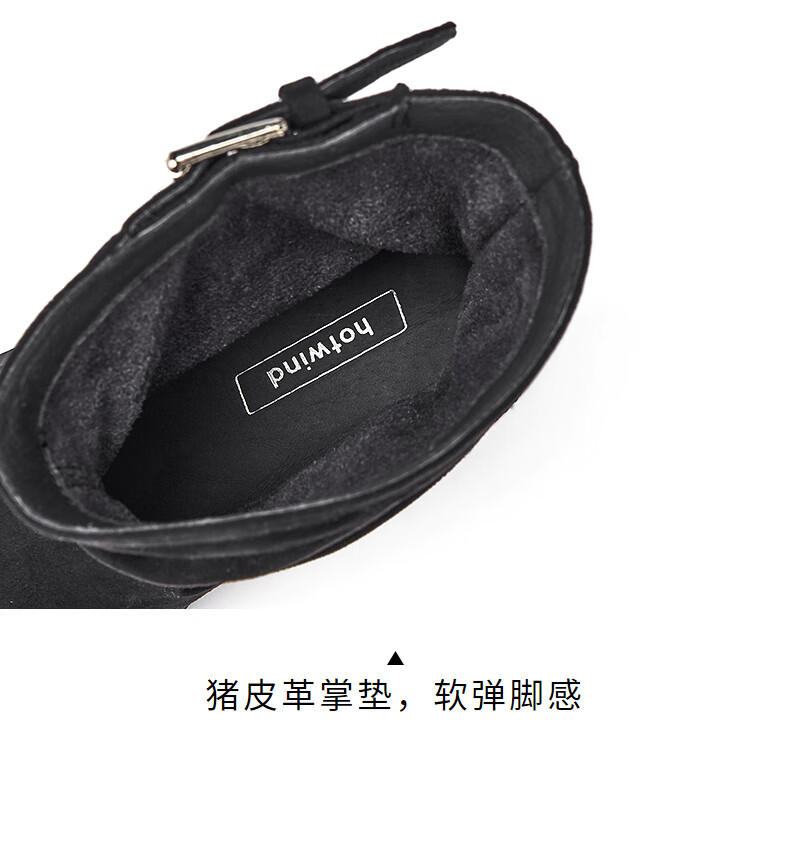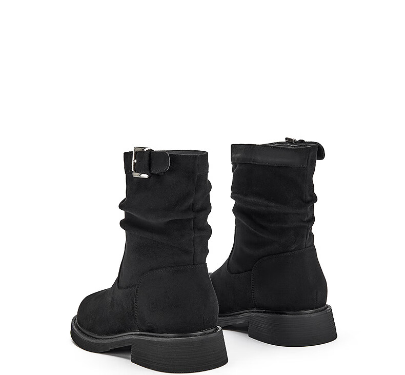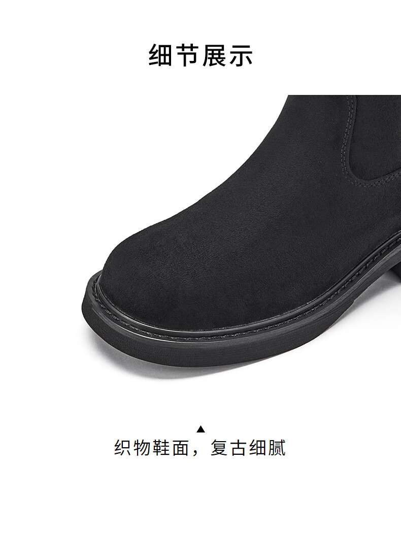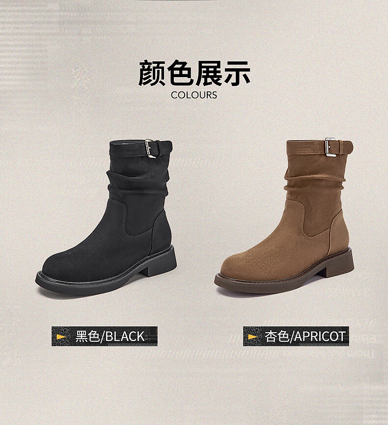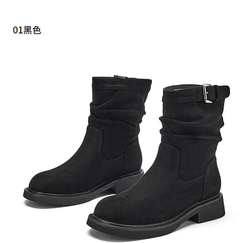 热风美拉德短靴女2025年冬季新款复古堆堆靴棕色西部牛仔靴子女鞋 01黑色 35