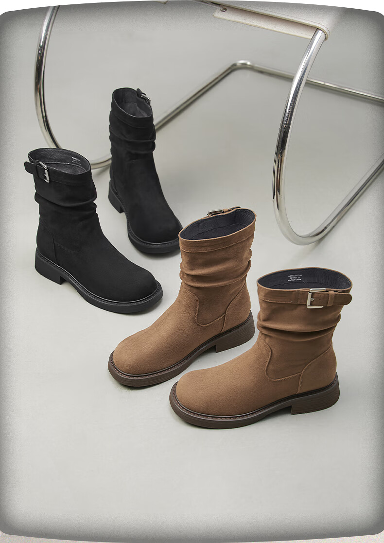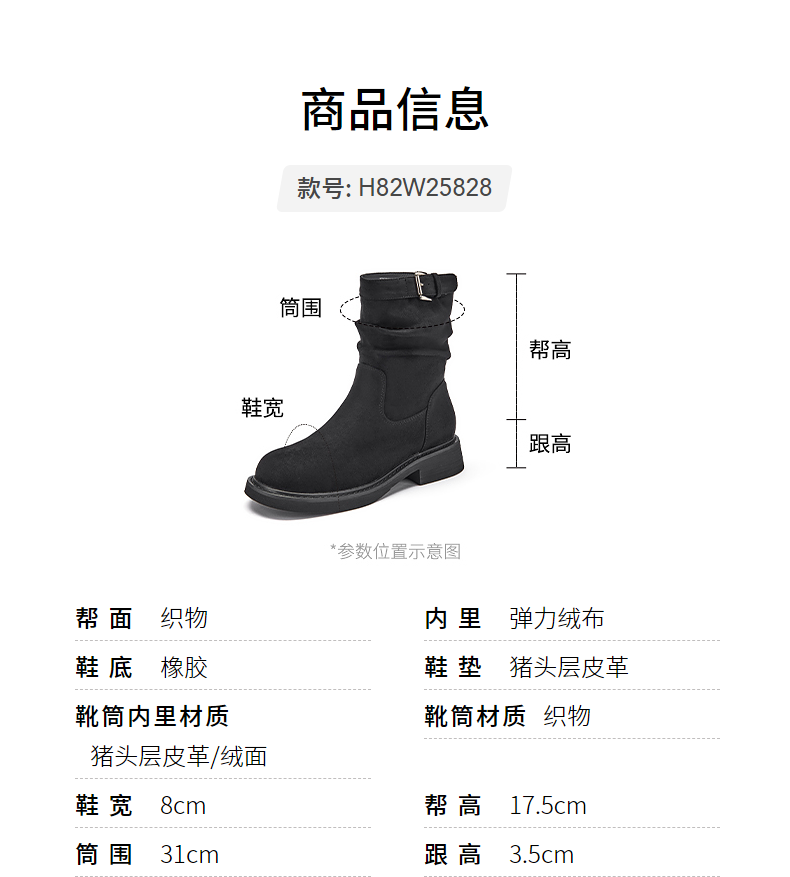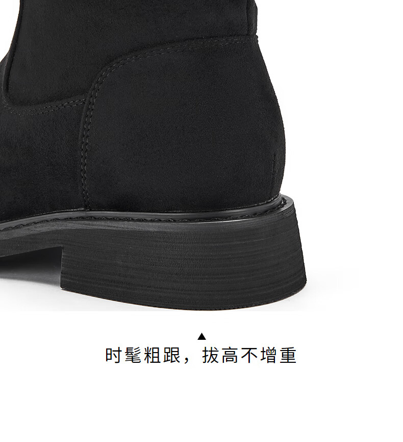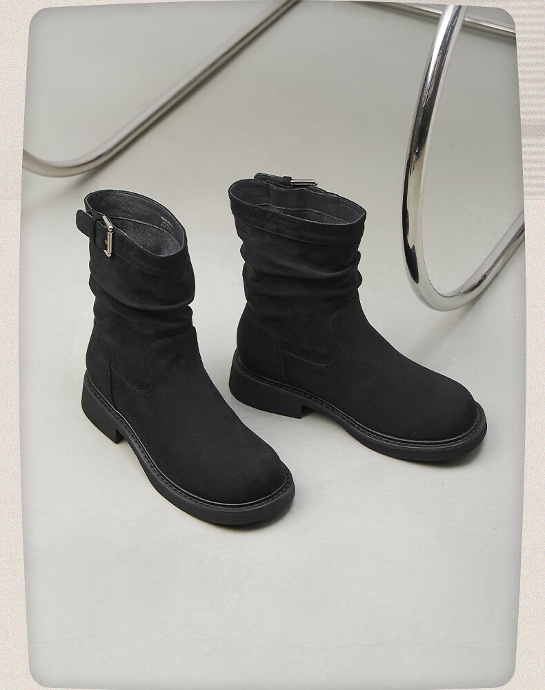 热风美拉德短靴女2025年冬季新款复古堆堆靴棕色西部牛仔靴子女鞋 01黑色 35