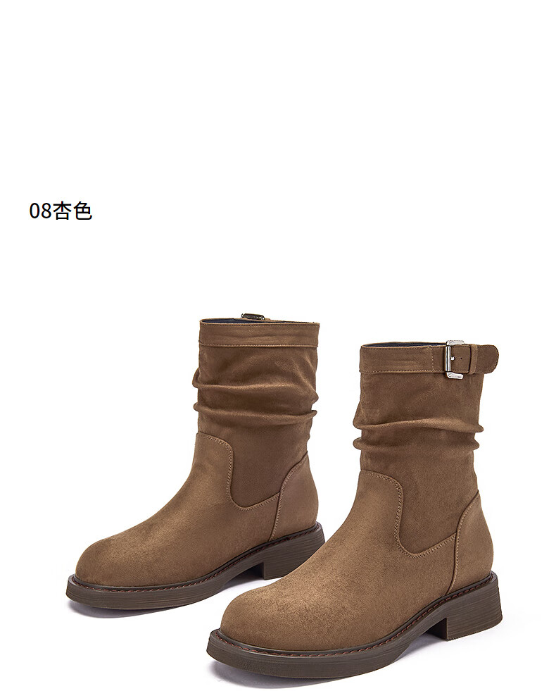 热风【迪士尼系列】复古西部靴女靴2025年冬季新款美拉德休闲时装靴子 08杏色 37