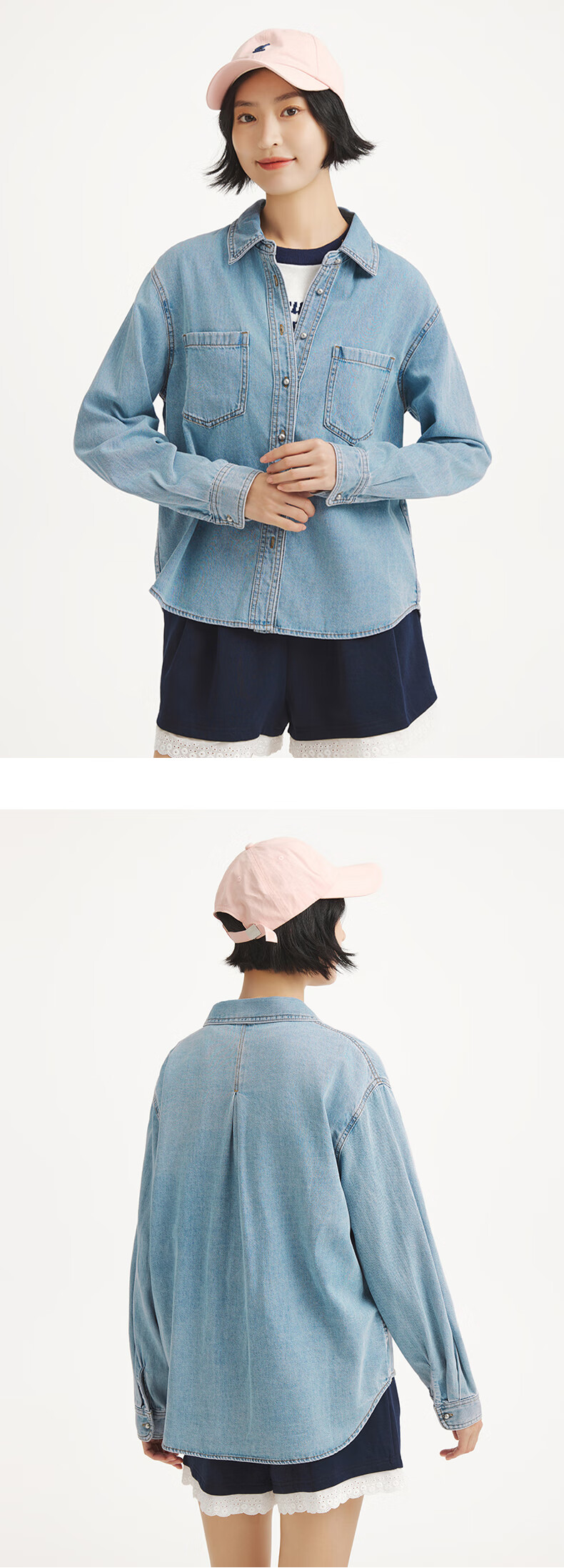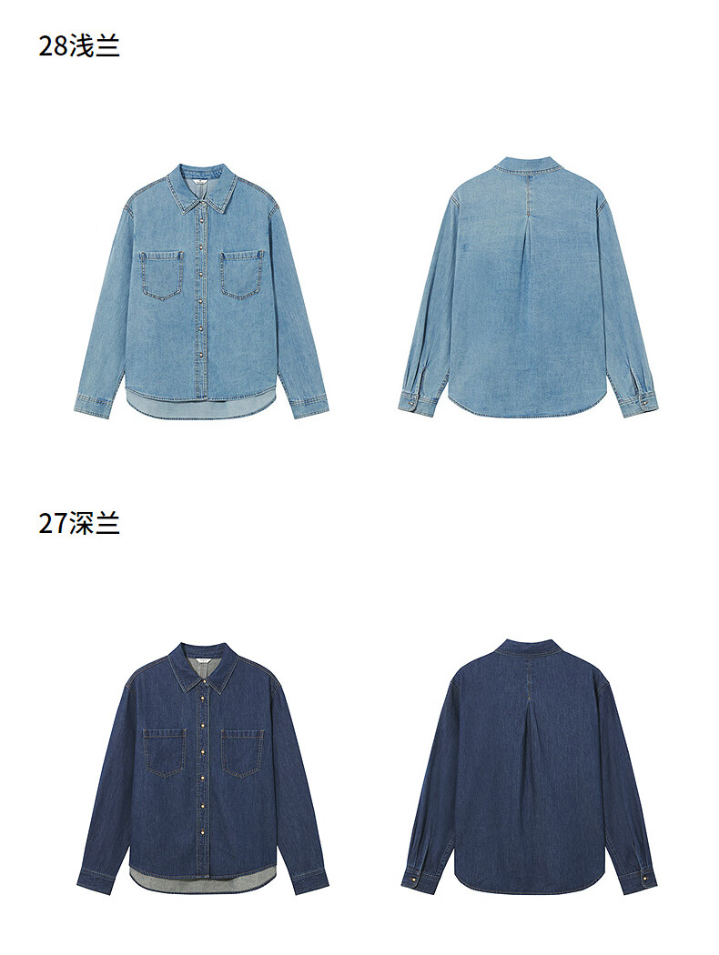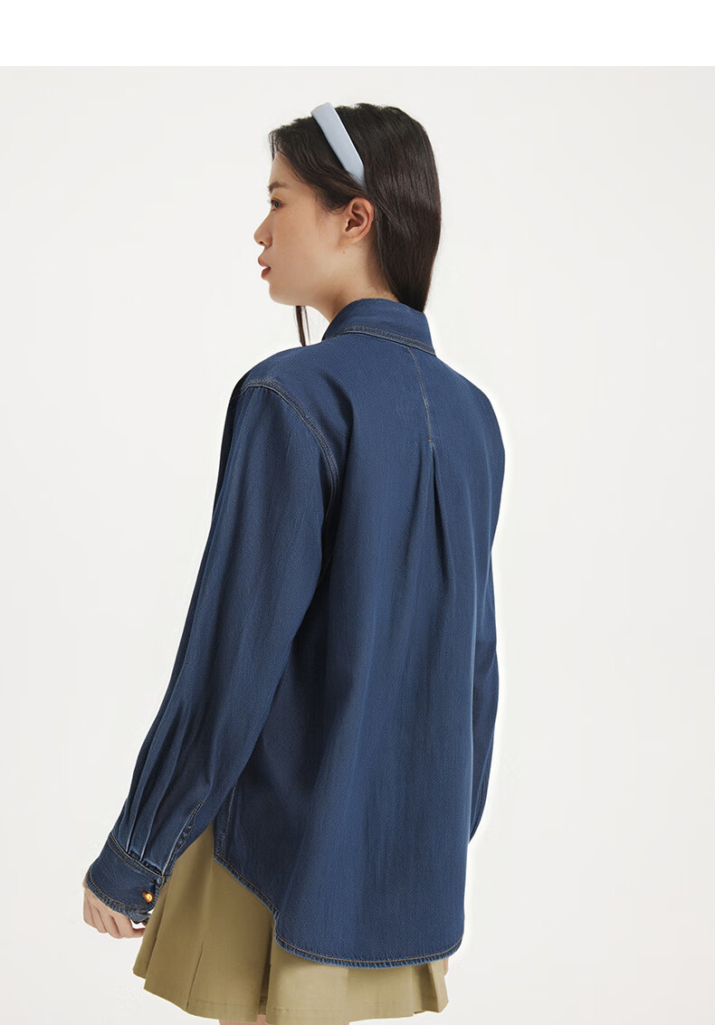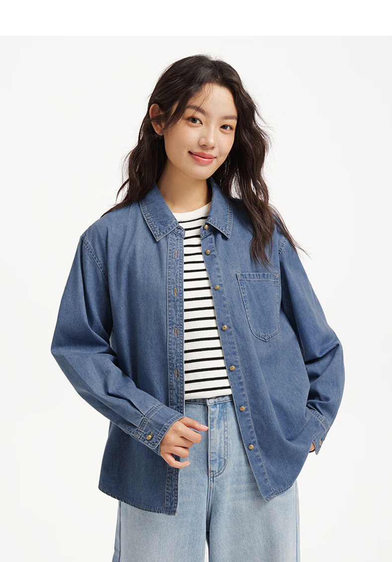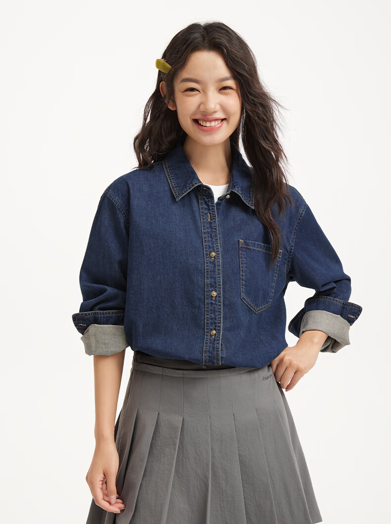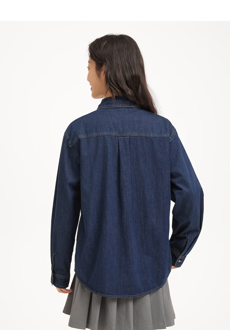 热风【商场同款】女士牛仔衬衫2025年秋季新款美式简约柔软百搭薄外套 27深兰 S