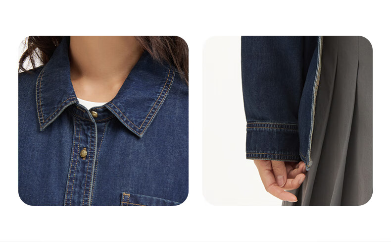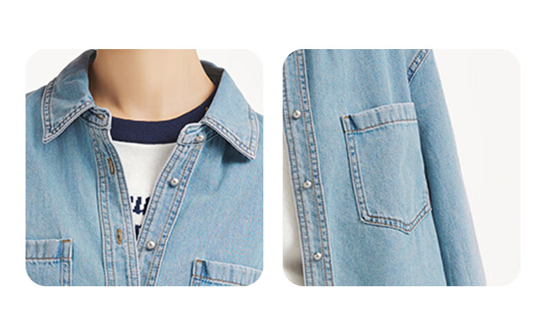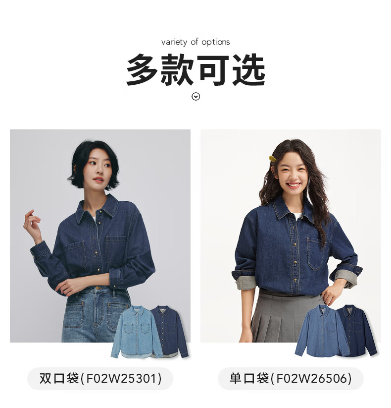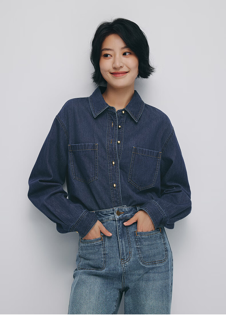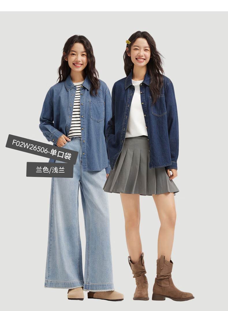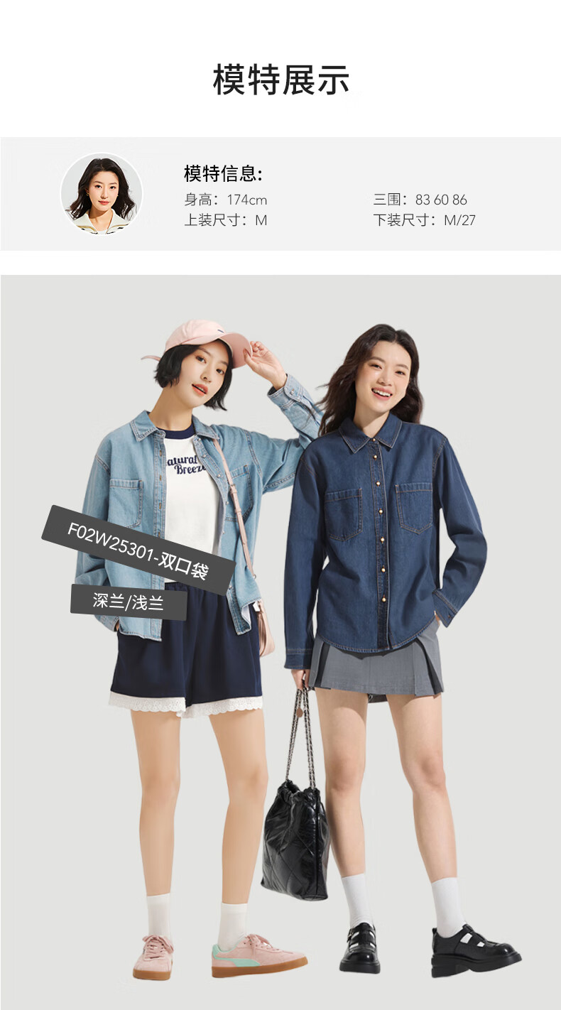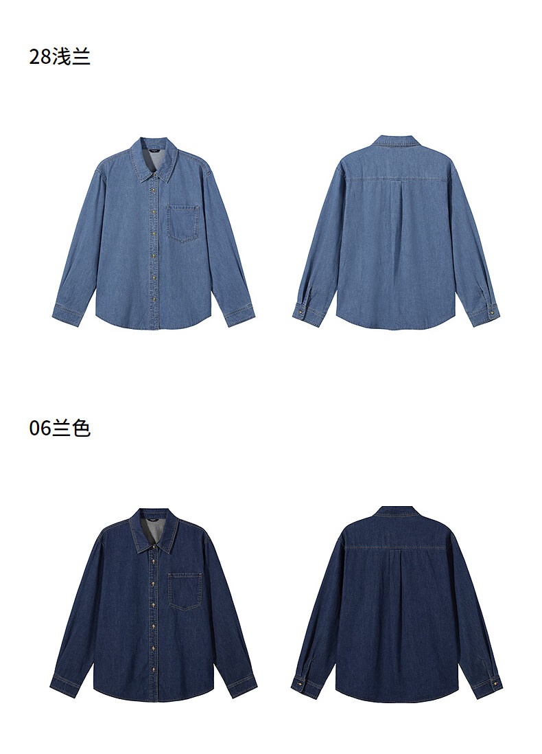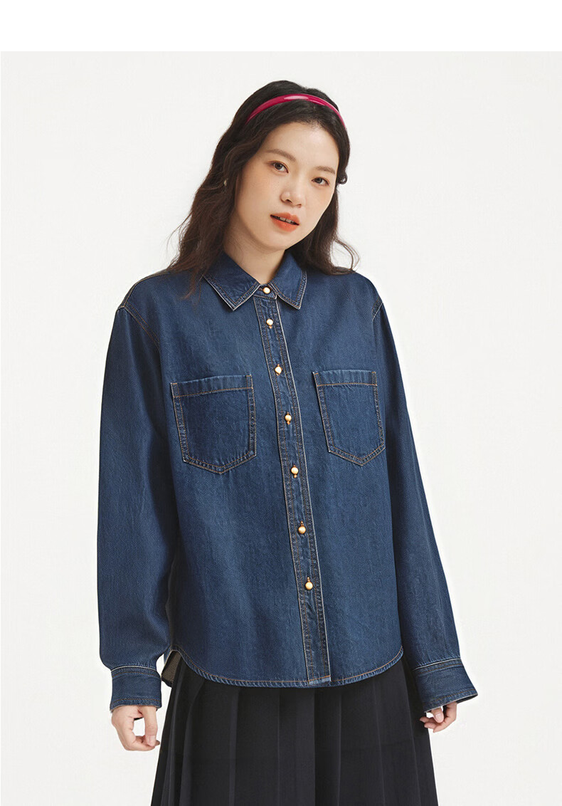 热风【商场同款】女士牛仔衬衫2025年秋季新款美式简约柔软百搭薄外套 27深兰 S