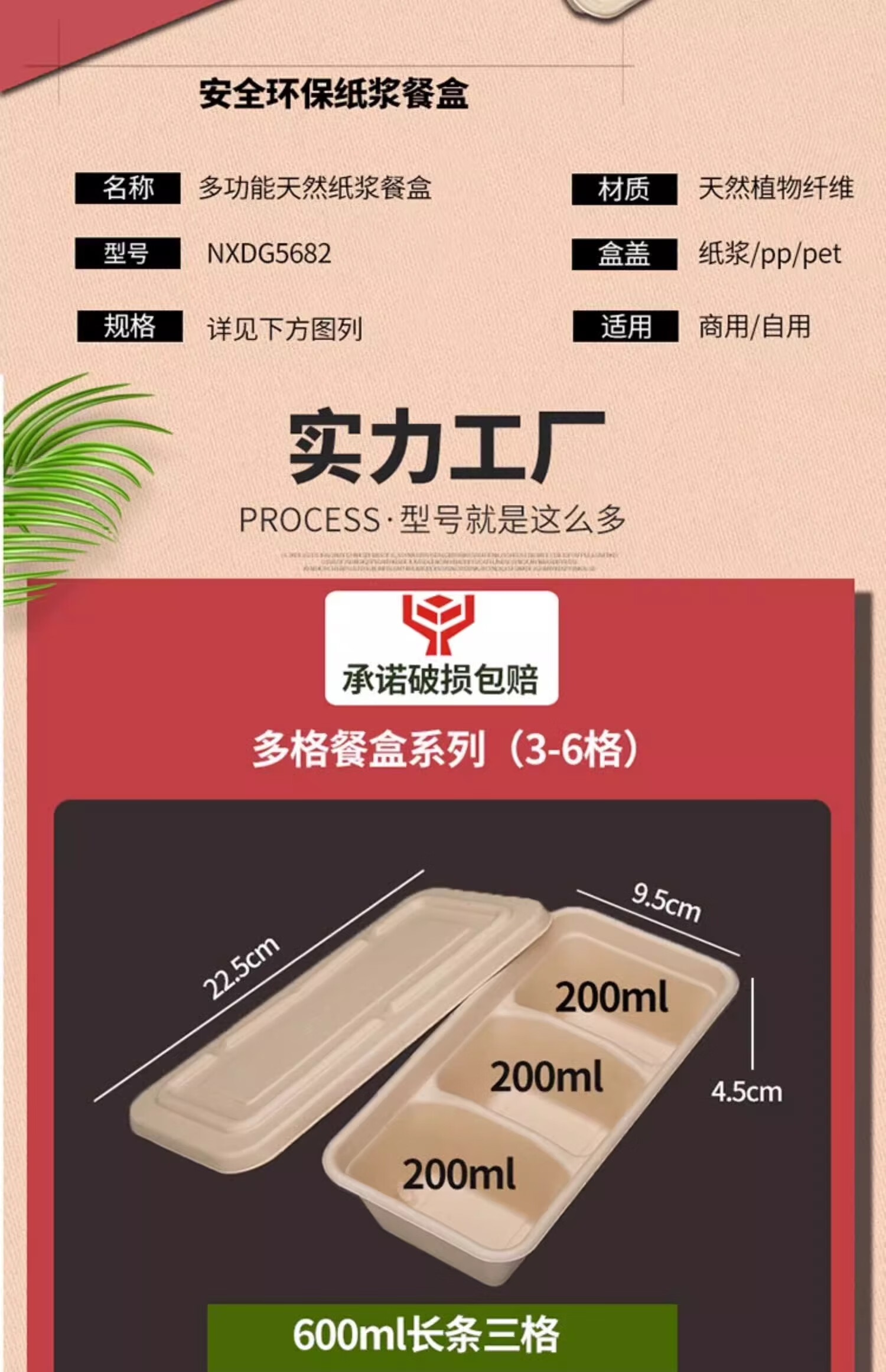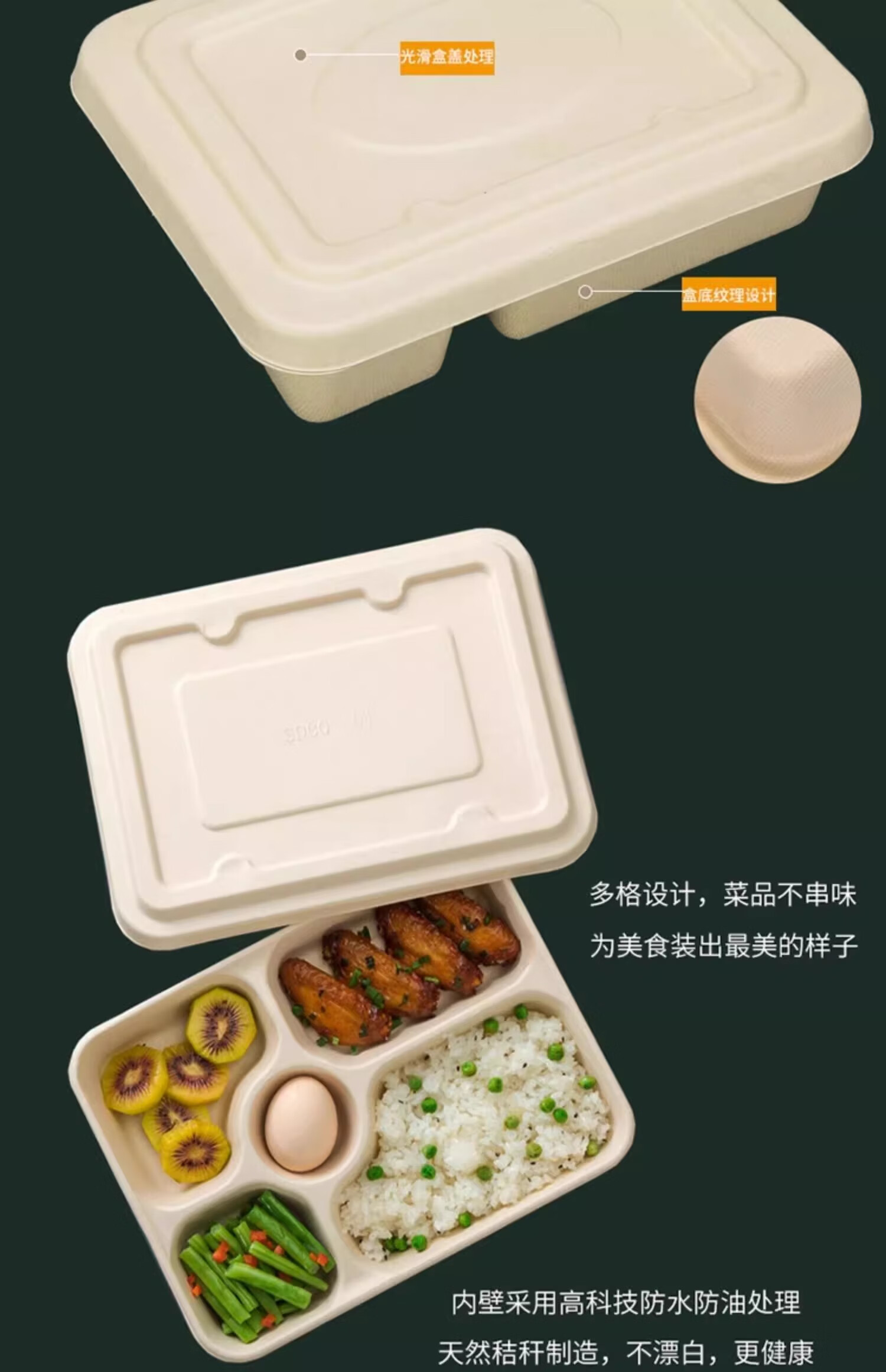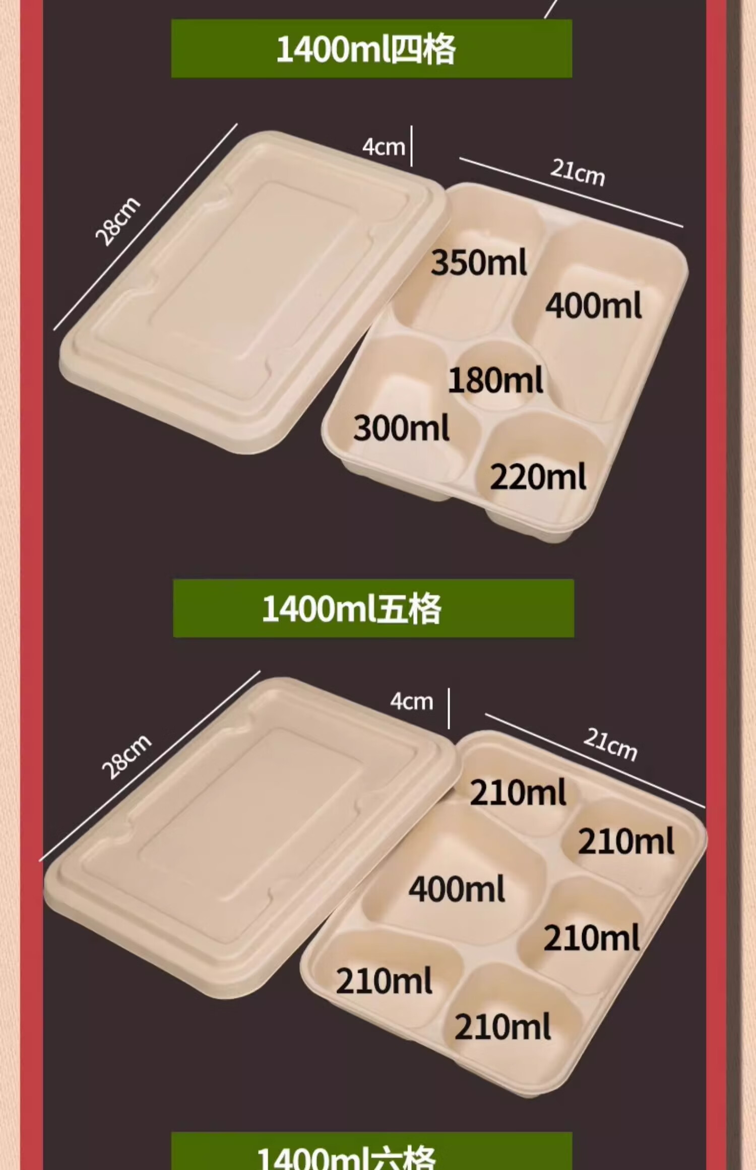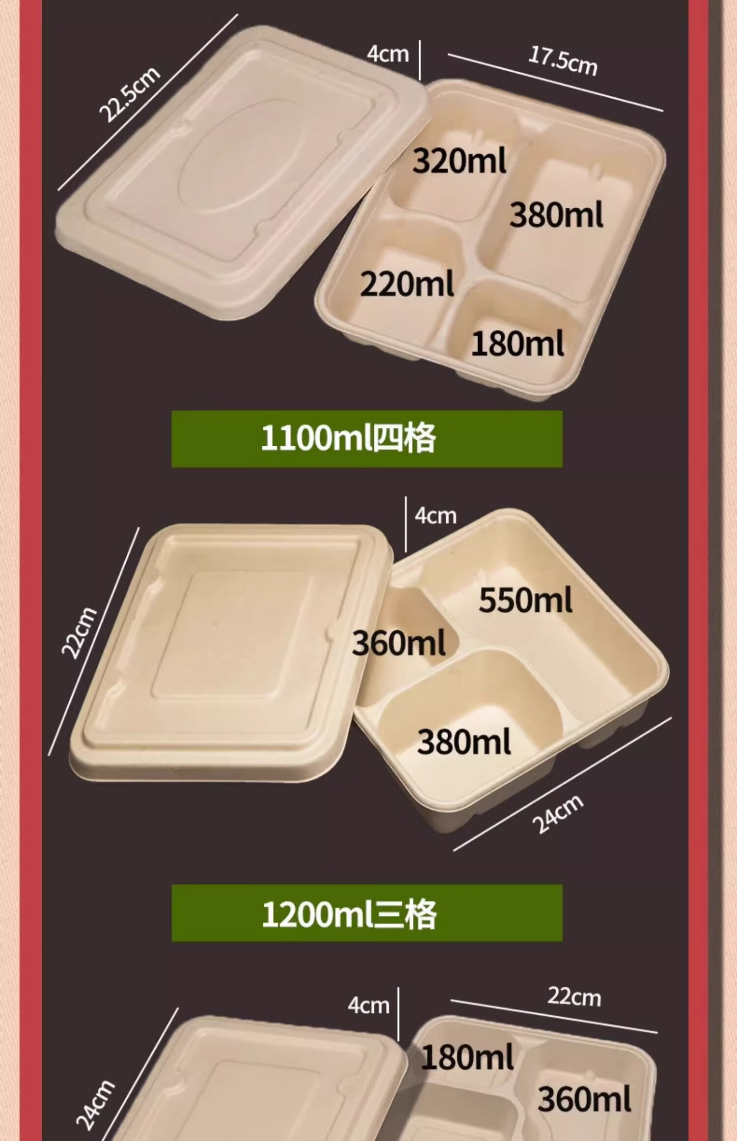 诺鲜一次性四格饭盒纸外卖打包盒三格4格5格分格食品浆餐盒环保可降解 1100ml四格50套(无盖) 加厚