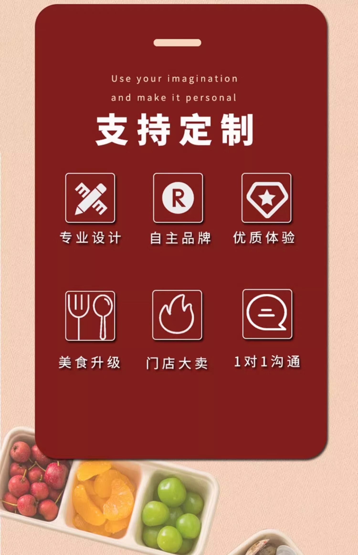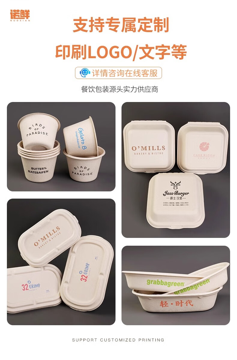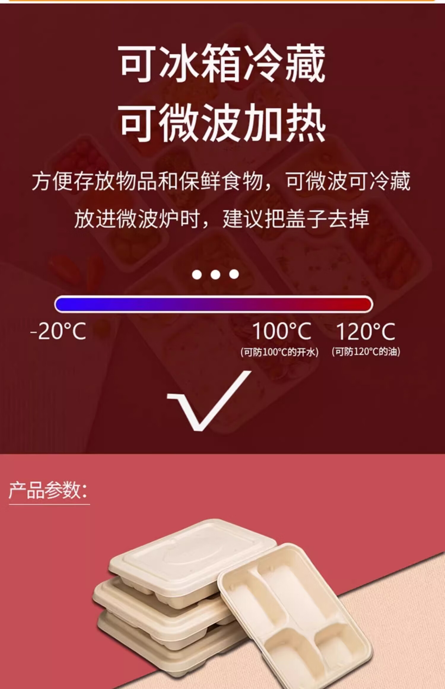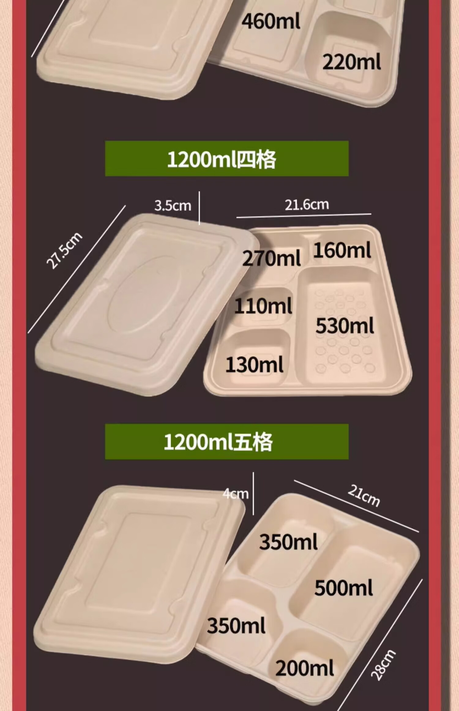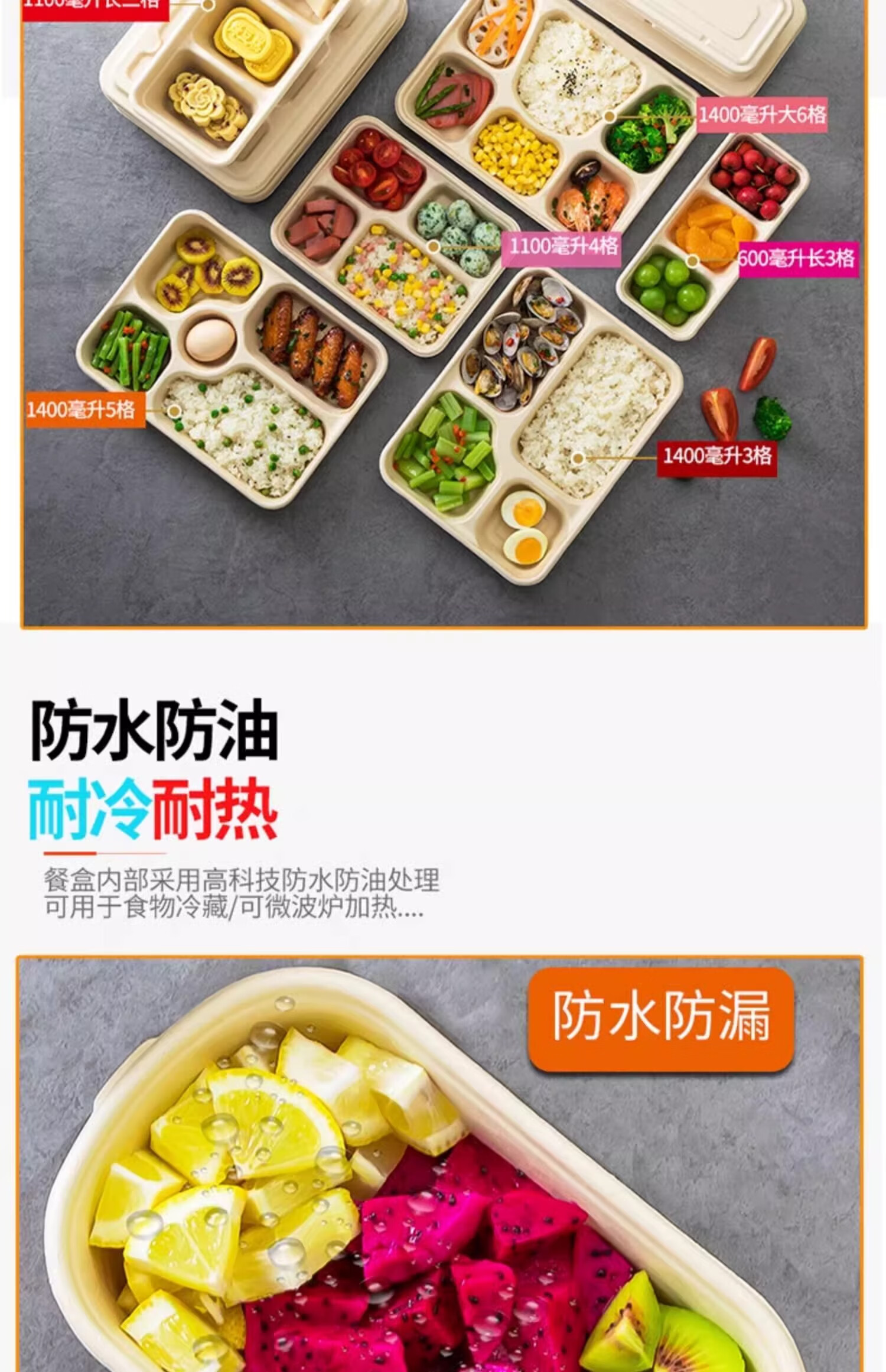 诺鲜一次性四格饭盒纸外卖打包盒三格4格5格分格食品浆餐盒环保可降解 1100ml四格50套(无盖) 加厚