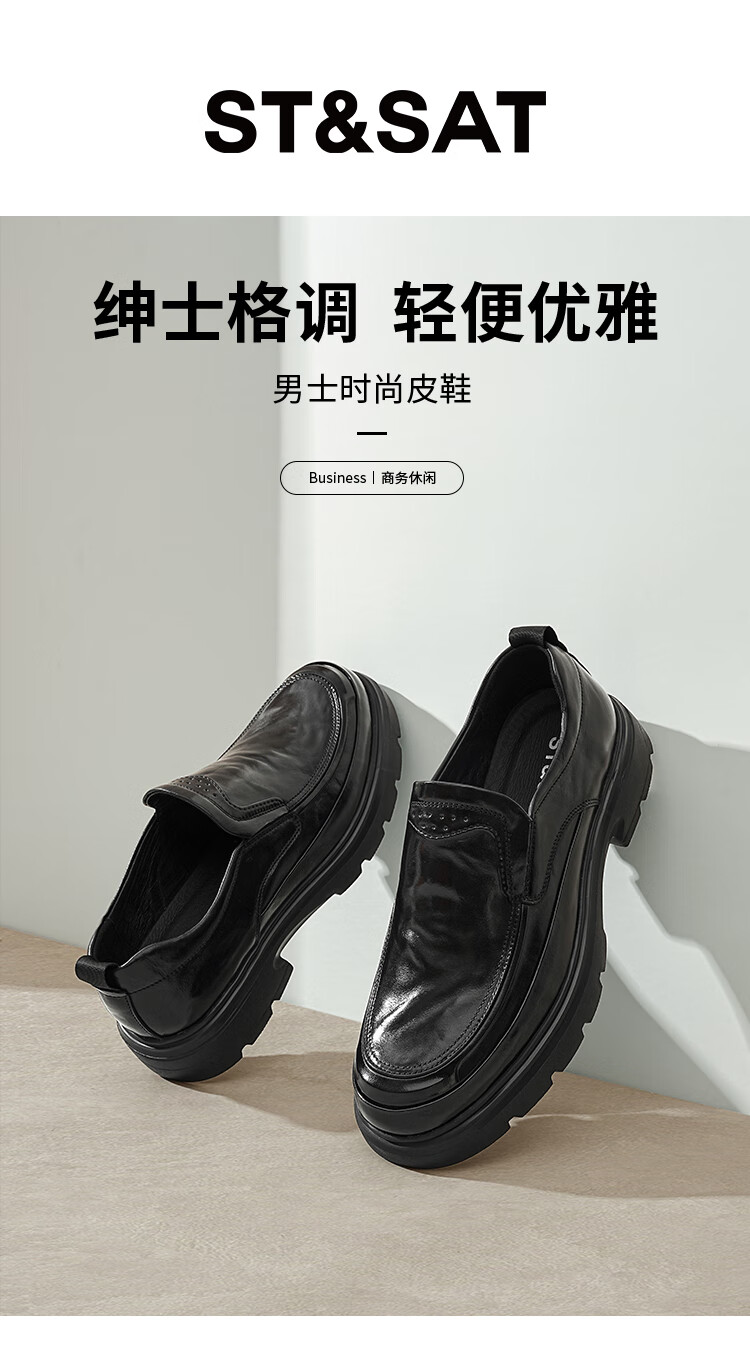 星期六男鞋牛皮时尚百搭商务正装皮鞋男通勤鞋休闲皮鞋豆豆鞋