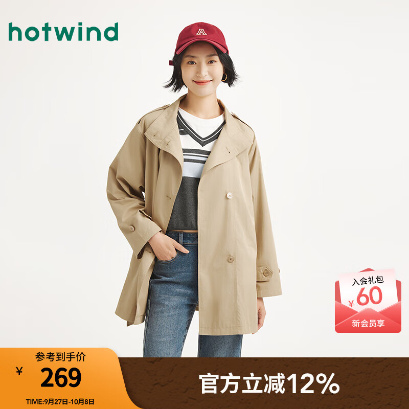 热风女士中长款风衣2025年秋季新款时尚立领气质百搭薄款风衣外套女 08杏色 M