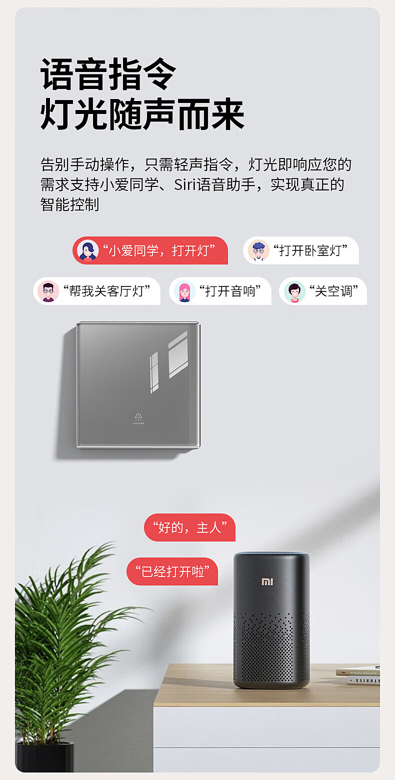 国际电工已接入米家智能开关钢化玻璃面板支持小爱远程语音开关灯全屋智能 【钢化玻璃零火版】灰色智能二开