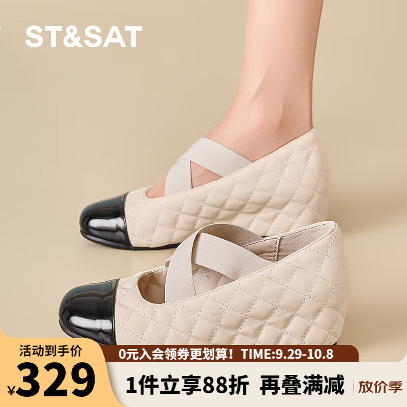 星期六女鞋2025春季新款百搭通勤小香风内增高浅口单鞋DKSSD1111V5B 米白 34