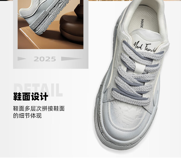 马克华菲厚底增高板鞋男2025秋冬款透气潮流百搭学生休闲鞋 浅云白 40