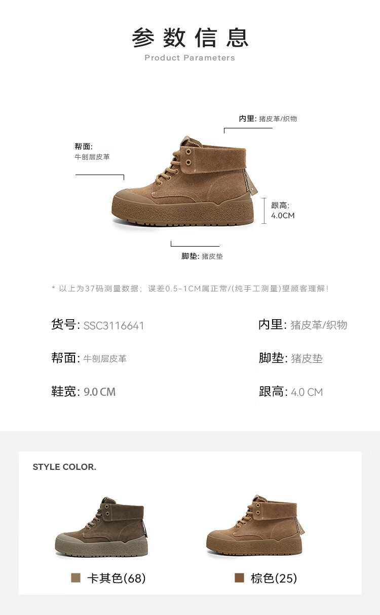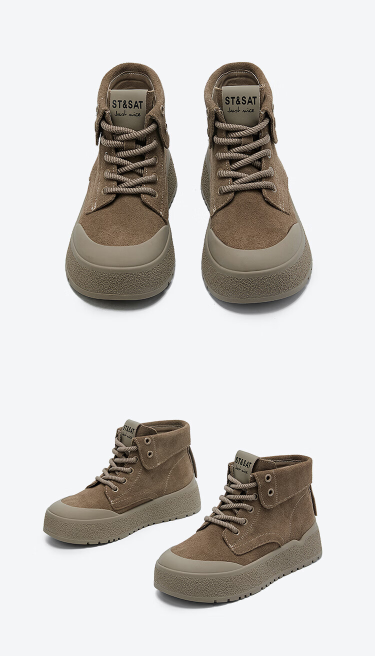 星期六(St&Sat)厚底马丁靴子高帮鞋2025秋季新款时尚两穿磨砂马丁靴SZSSC3116641 棕色 35