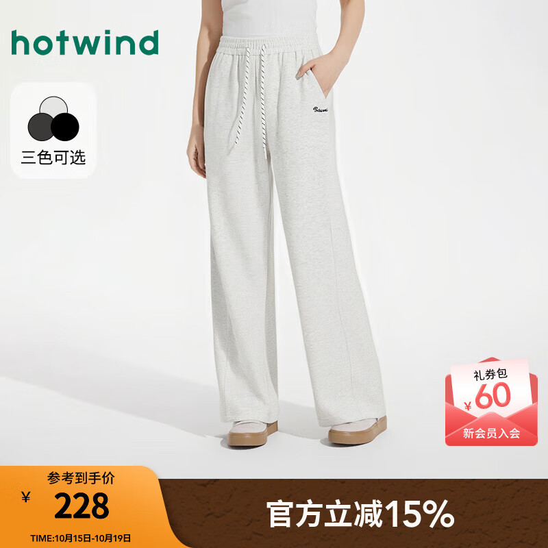 热风【商场同款】女士卫裤2025年秋新款女士休闲宽松直筒阔腿裤运动裤 60浅灰 S