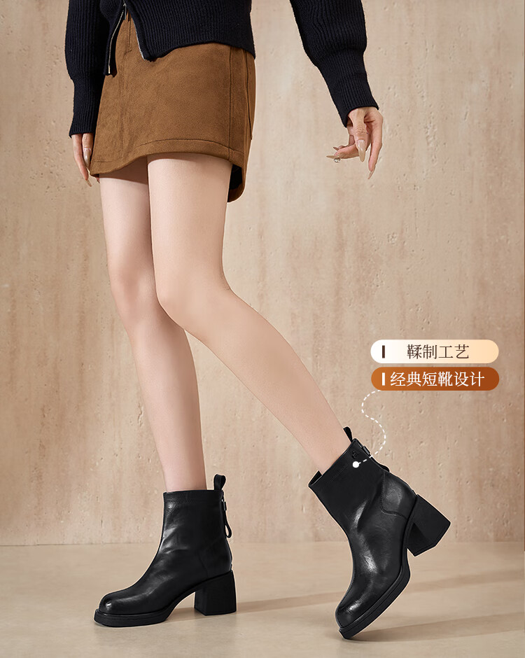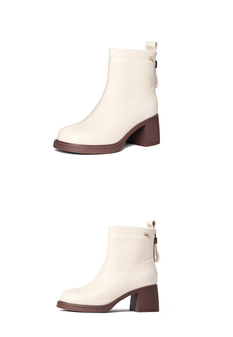 卓诗尼高跟短靴女2025新款秋冬切尔西靴厚底防水台瘦瘦靴 米白色 34