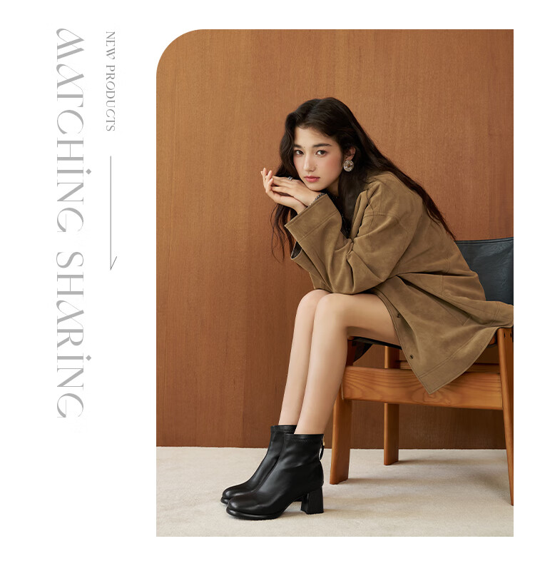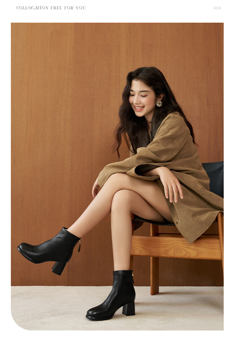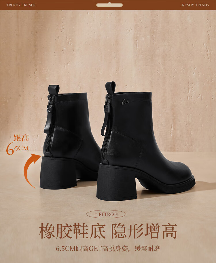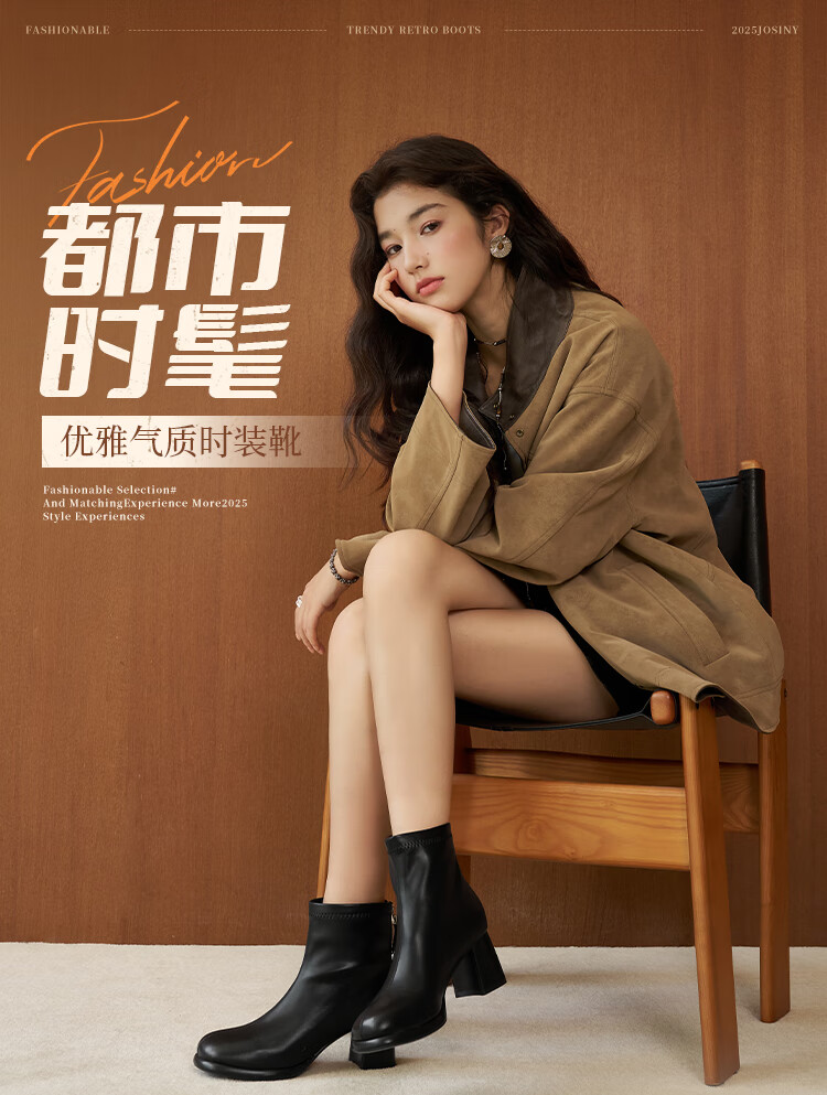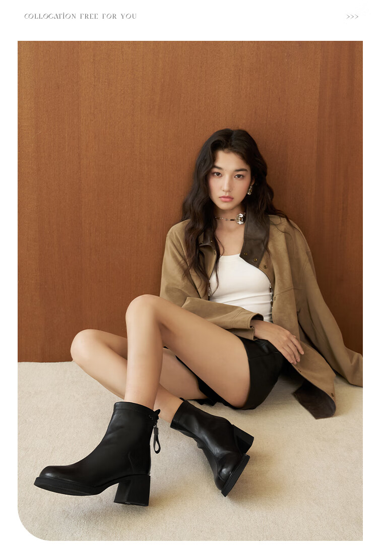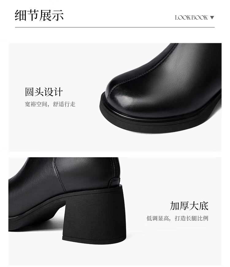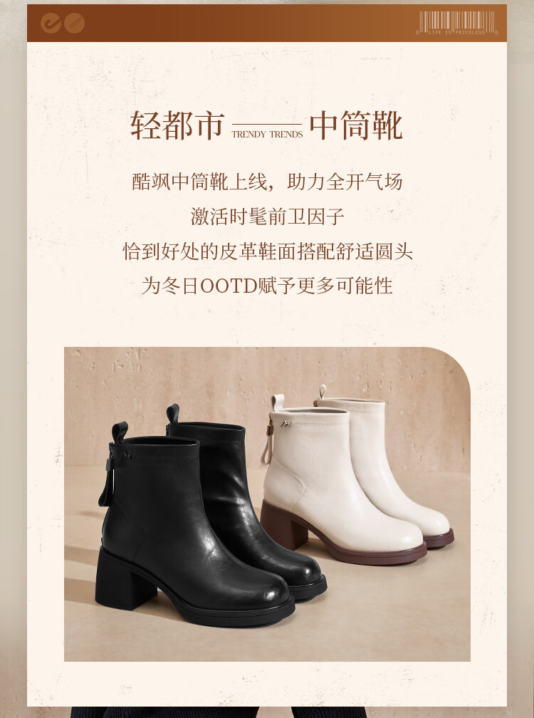 热风【迪士尼系列】复古西部靴女靴2025年冬季新款美拉德休闲时装靴子 08杏色 37