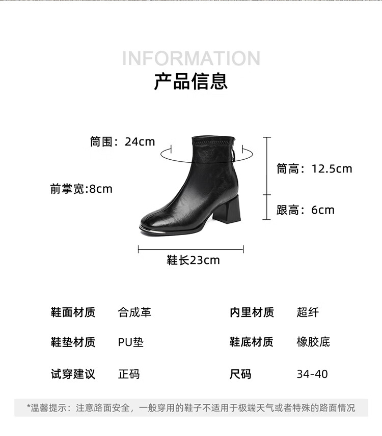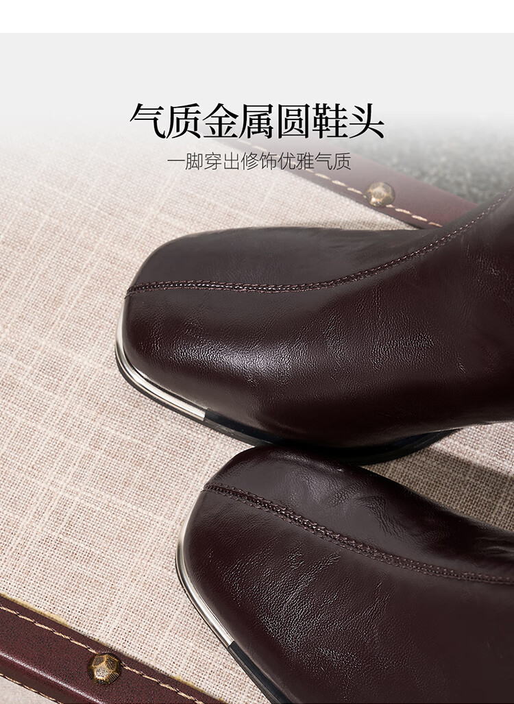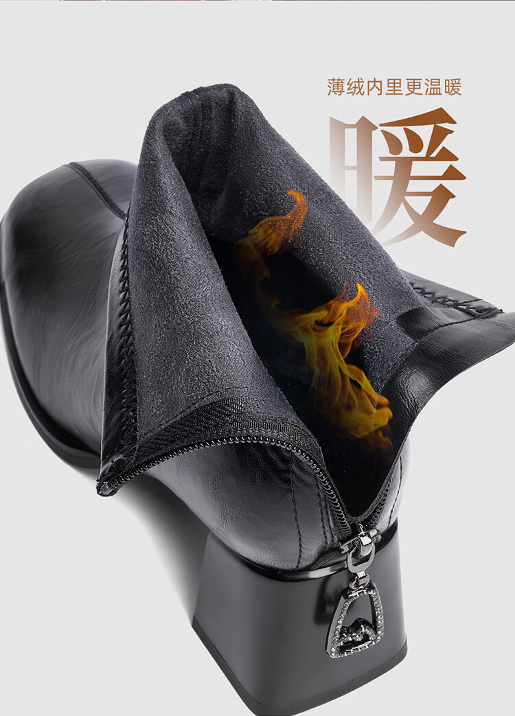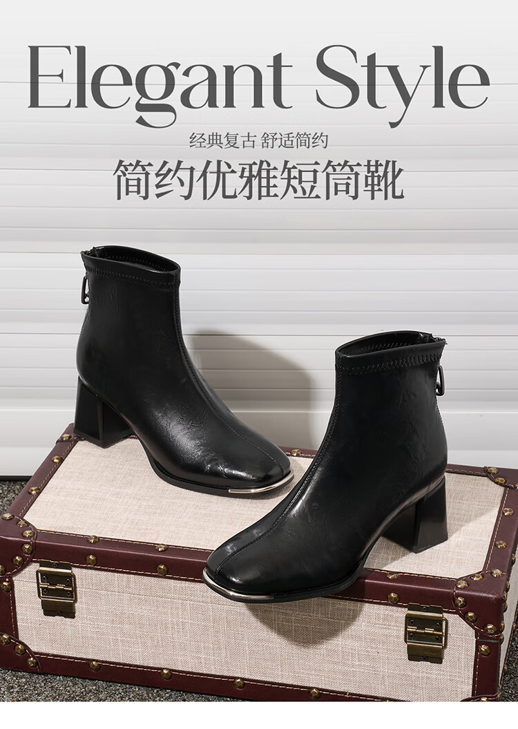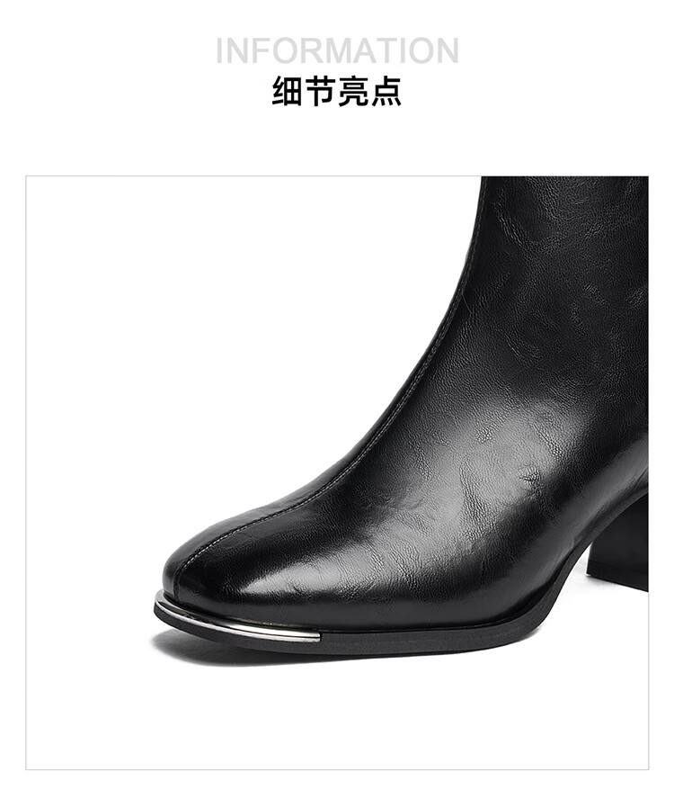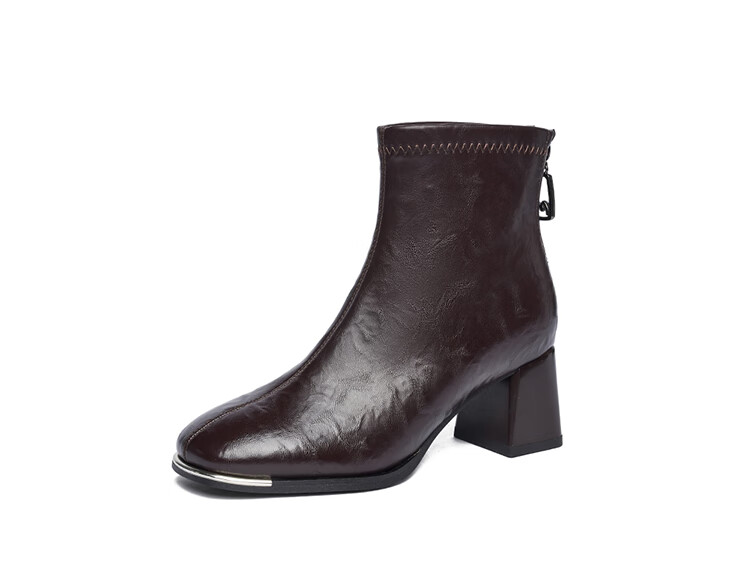卓诗尼高跟短靴女2025新款时尚休闲细跟后拉链黑色尖头时装靴 黑色 39