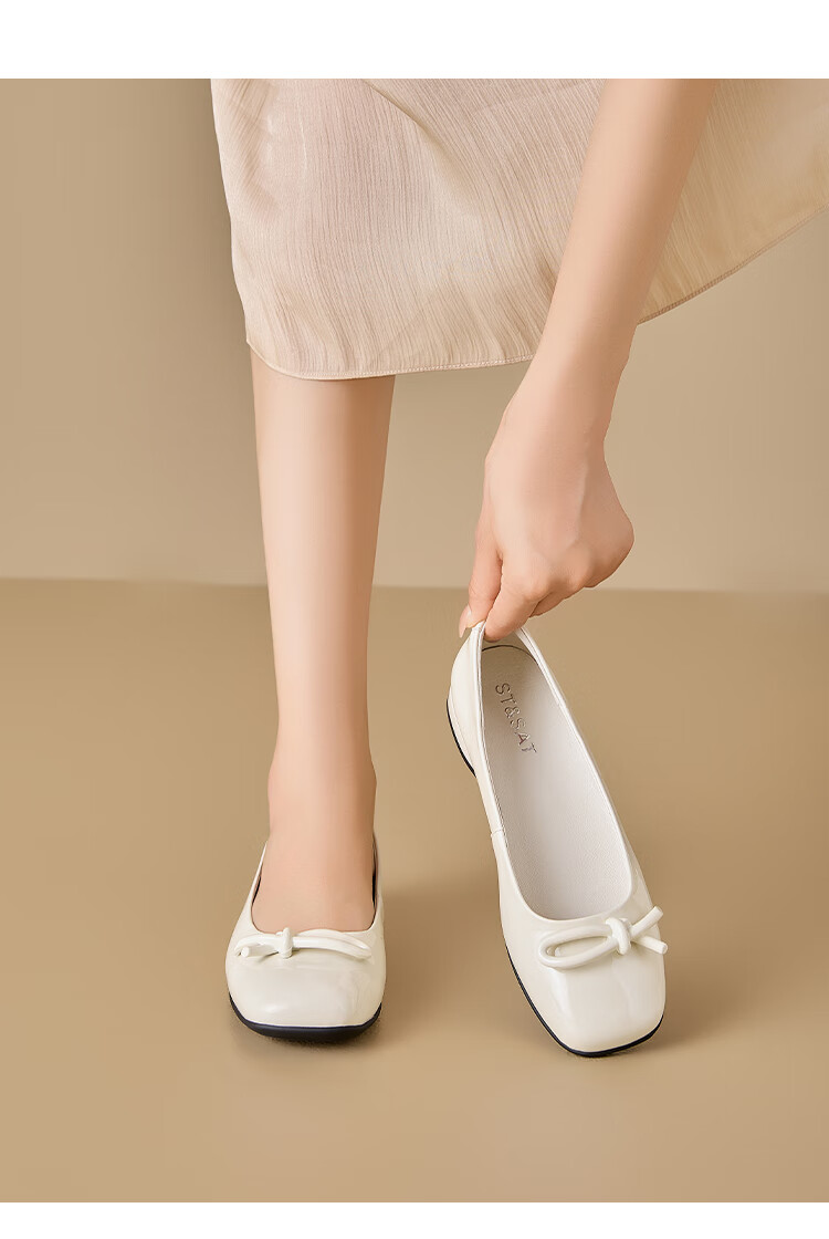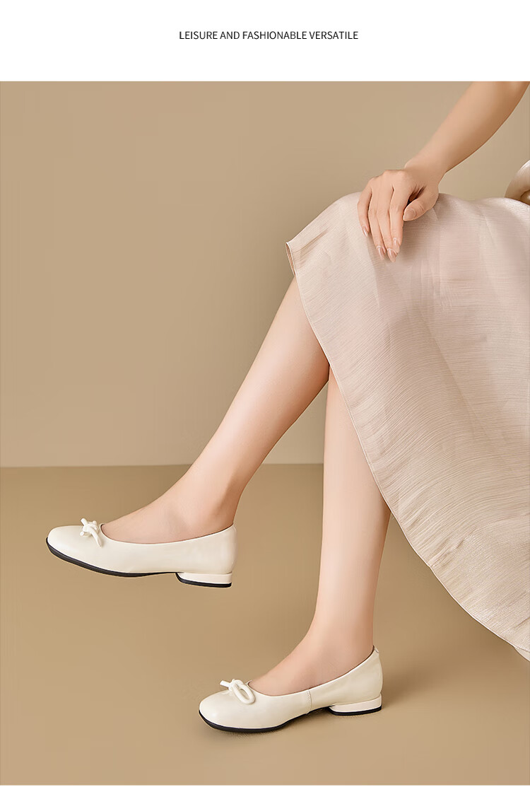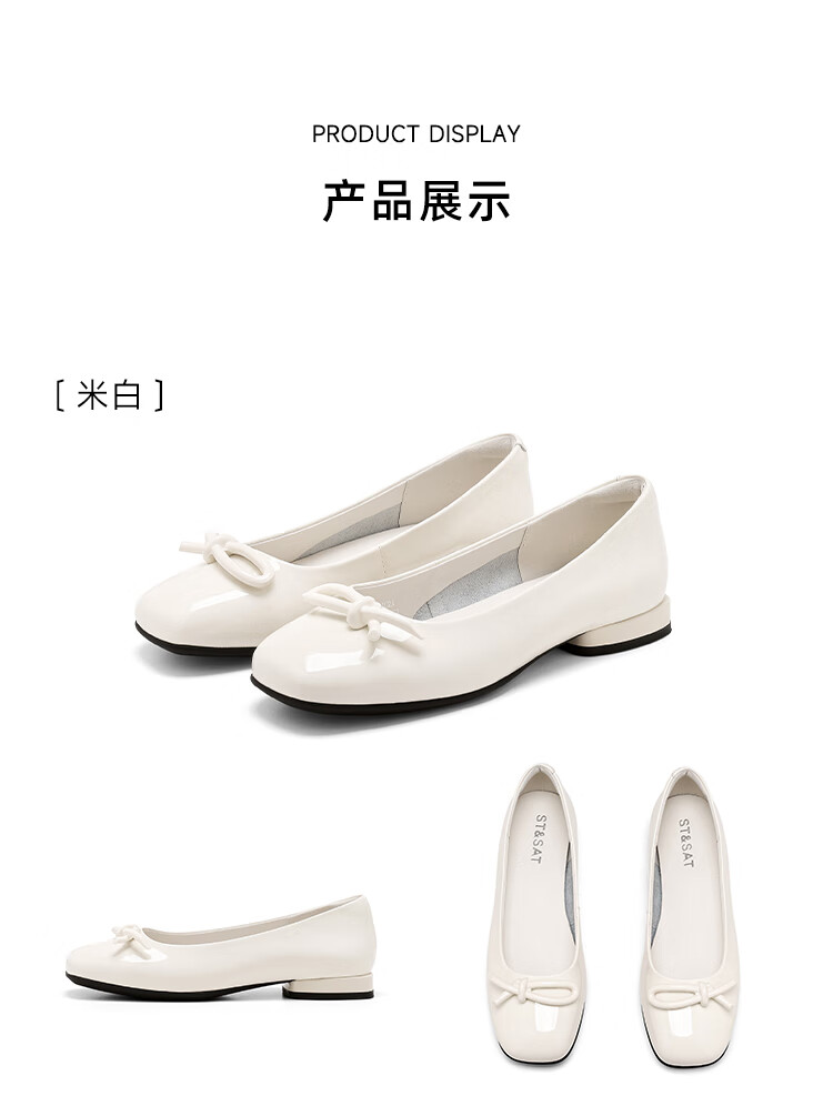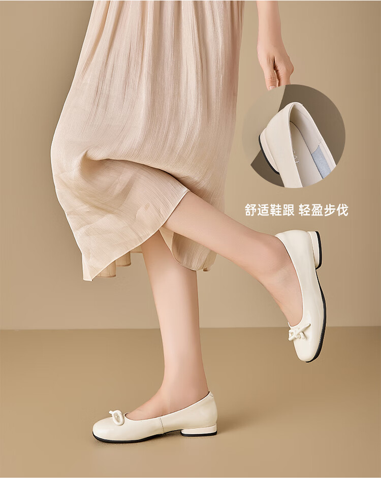 星期六时尚法式优雅单鞋2025秋季新款百搭蝴蝶结女鞋MTSSD3111C2A 米白 35