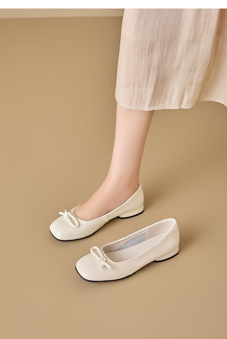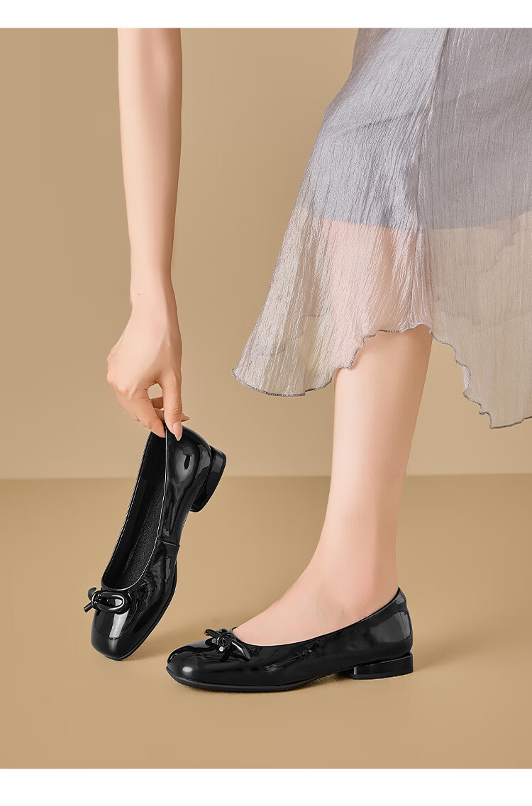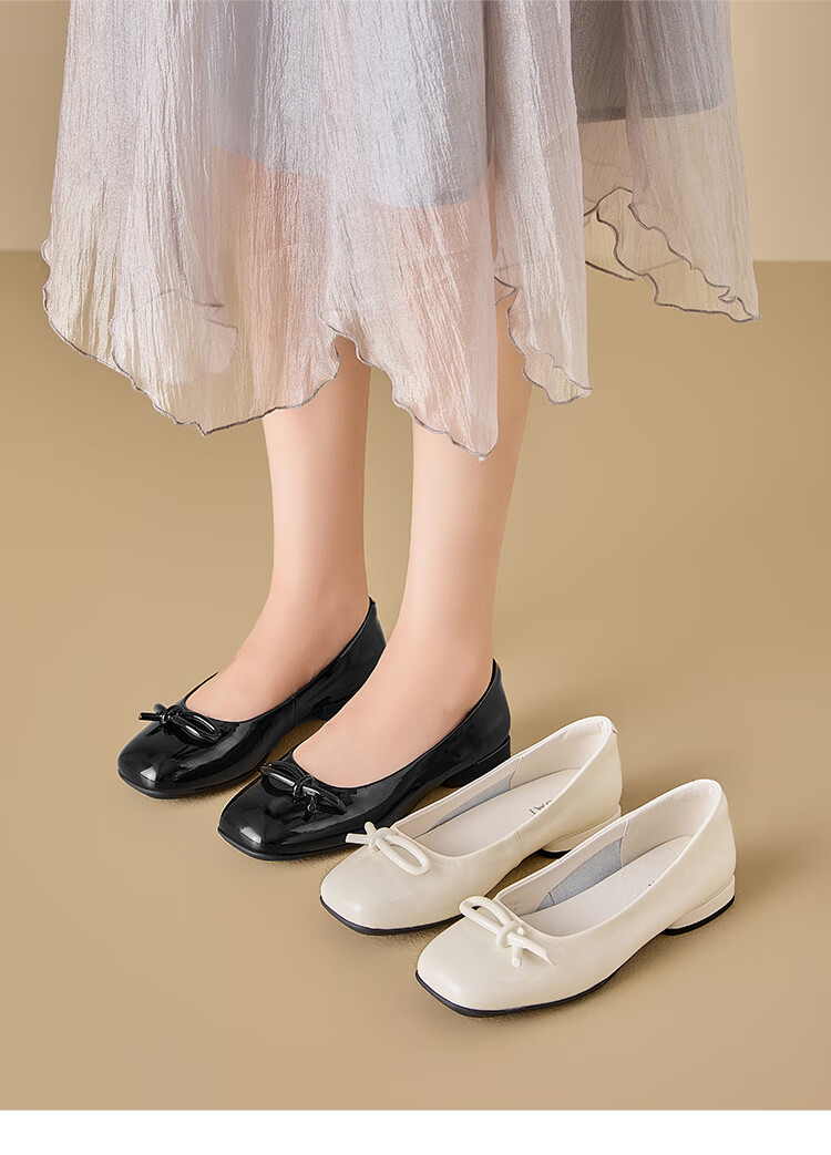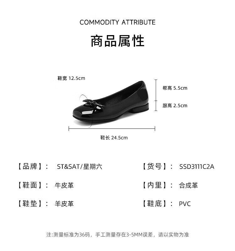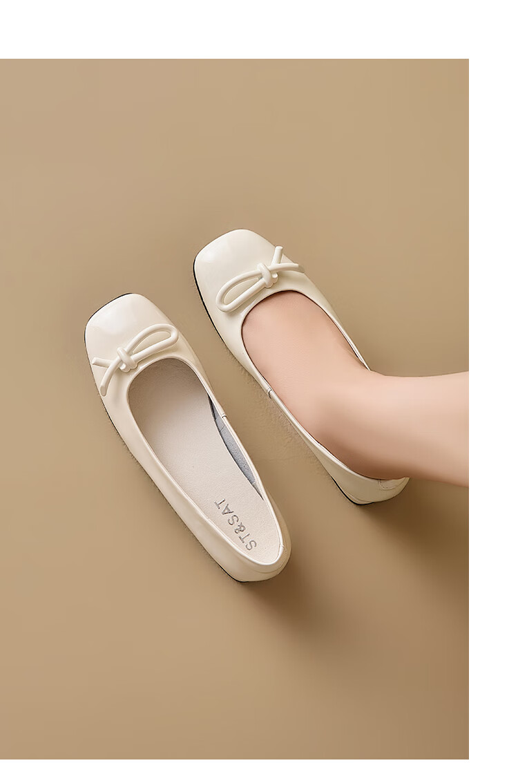星期六时尚法式优雅单鞋2025秋季新款百搭蝴蝶结女鞋MTSSD3111C2A 米白 35