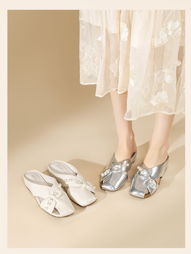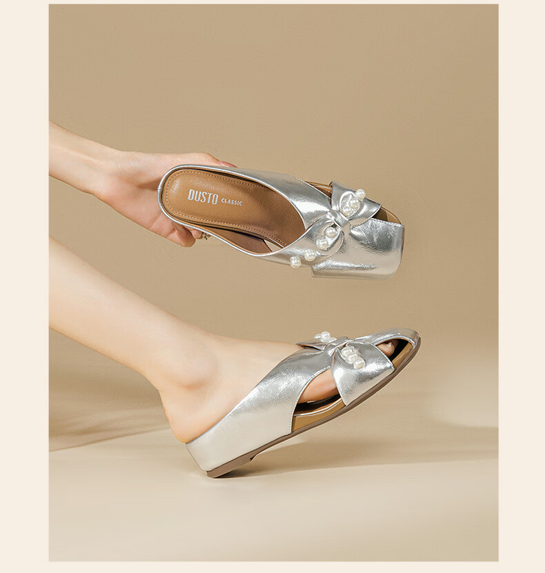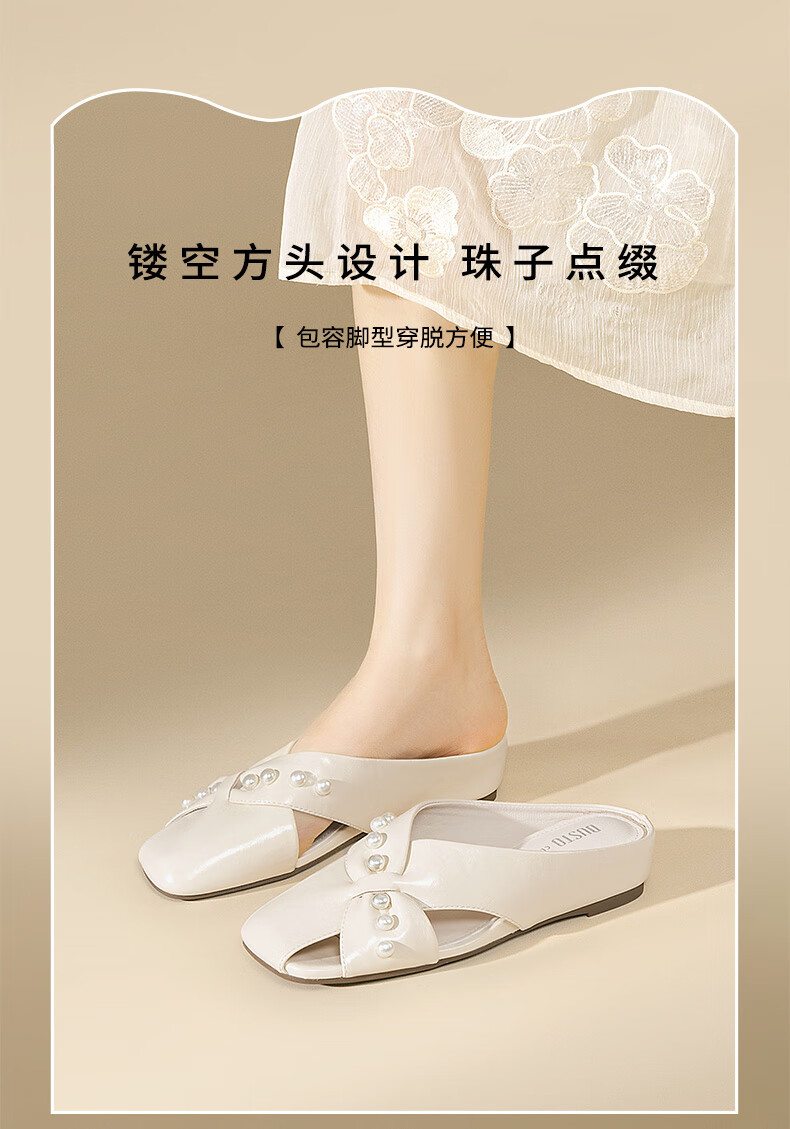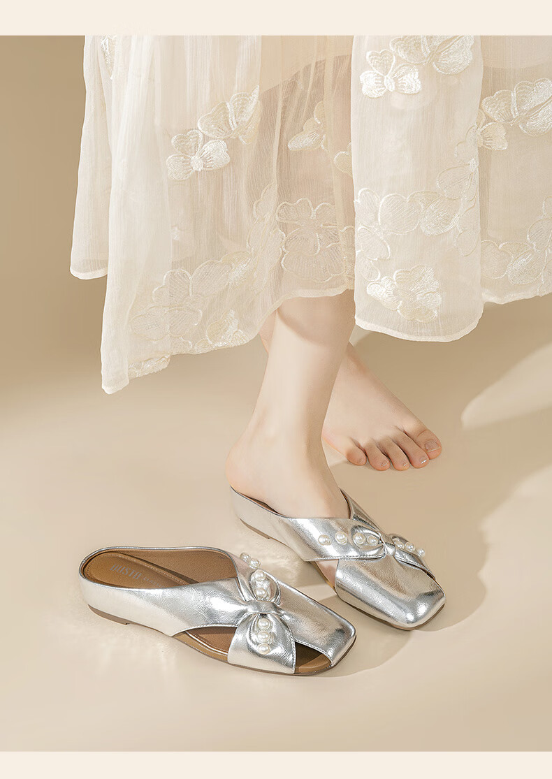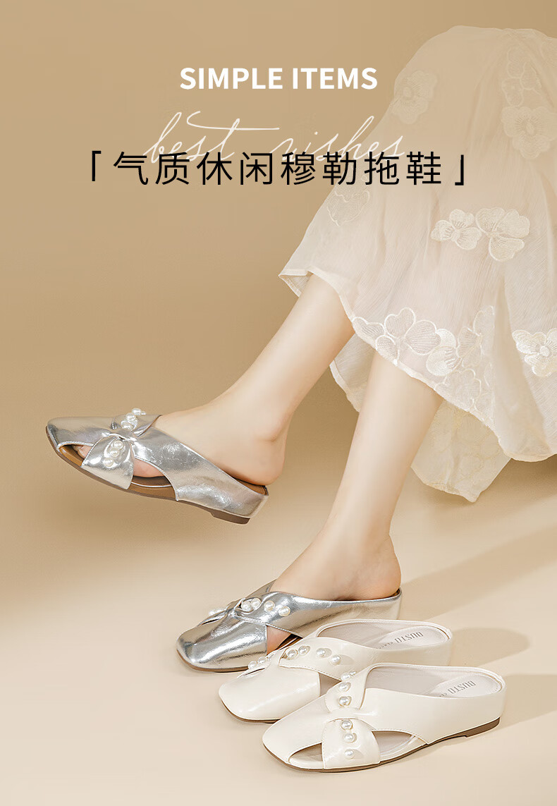 大东穆勒鞋女鞋2026年春季新款休闲气质镂空方头0107 银色 38