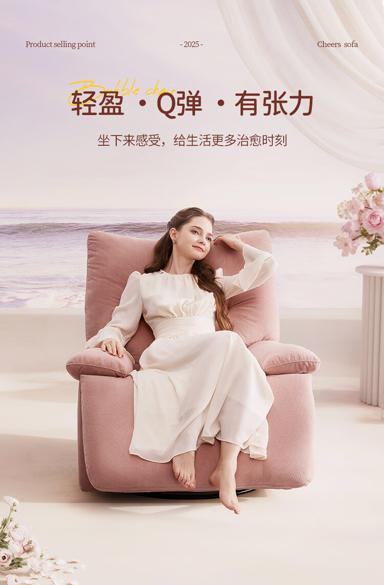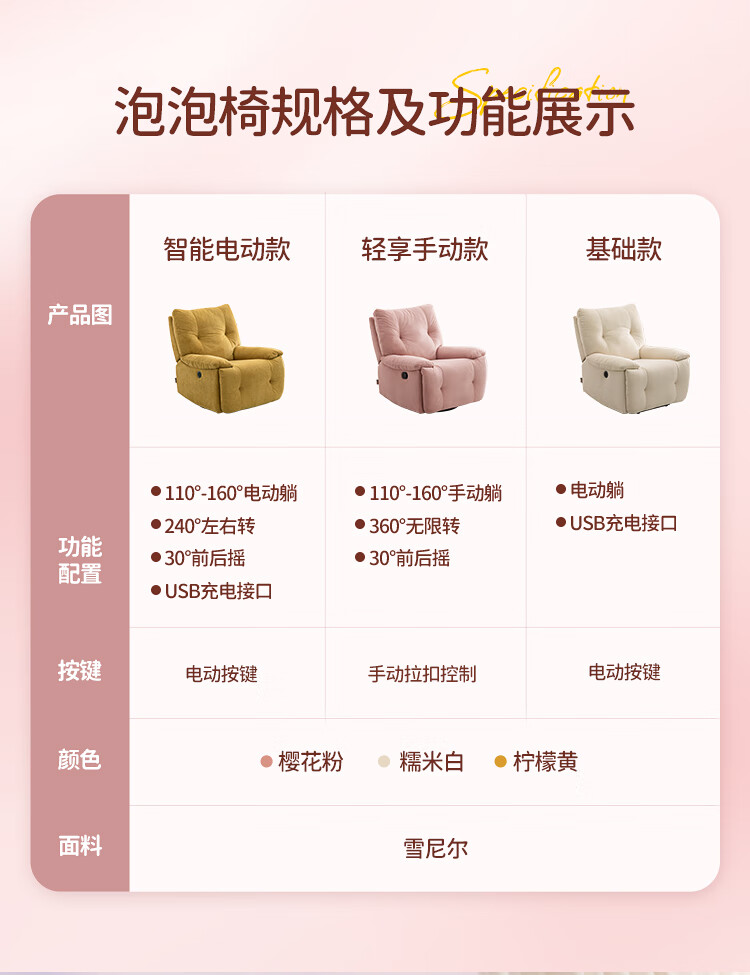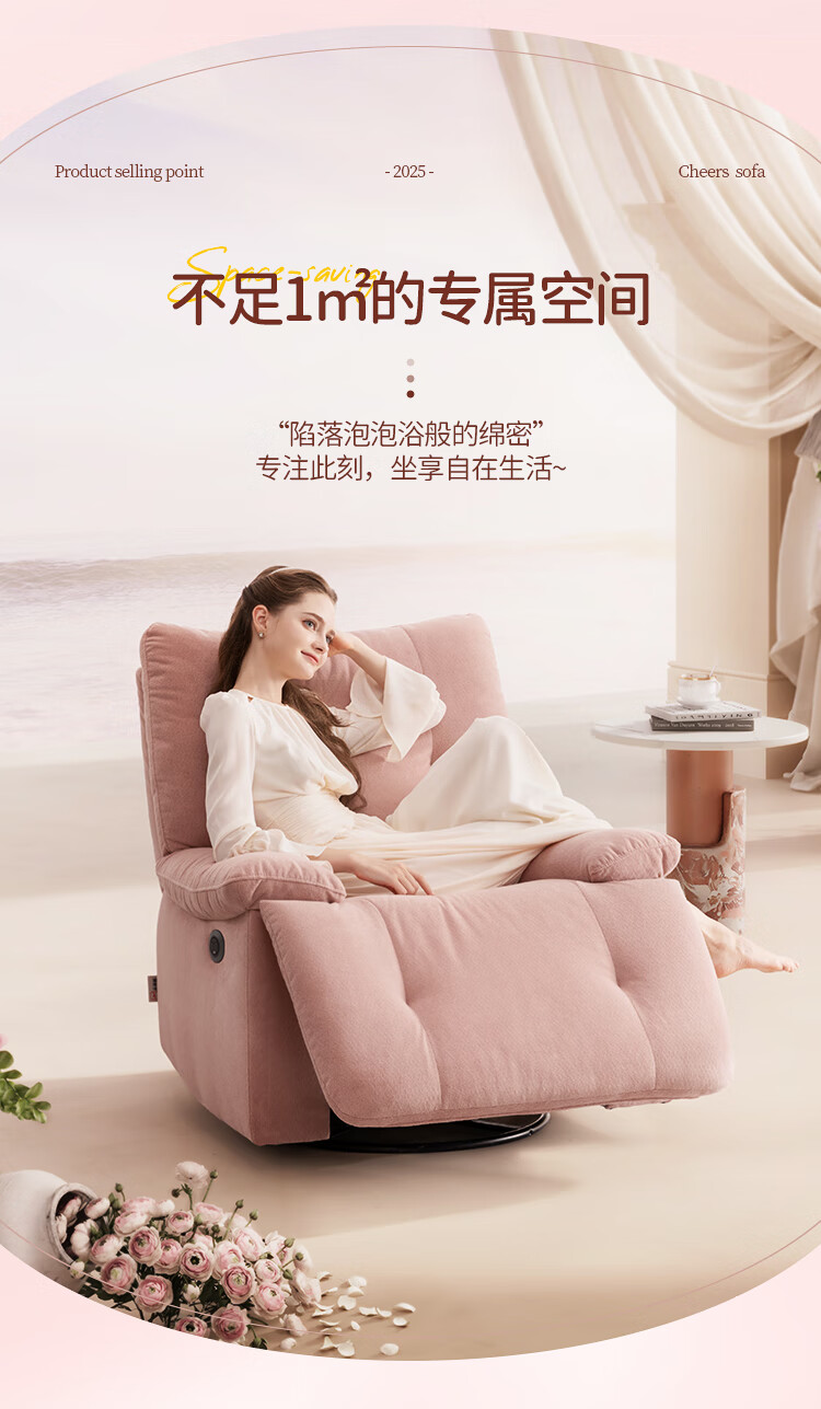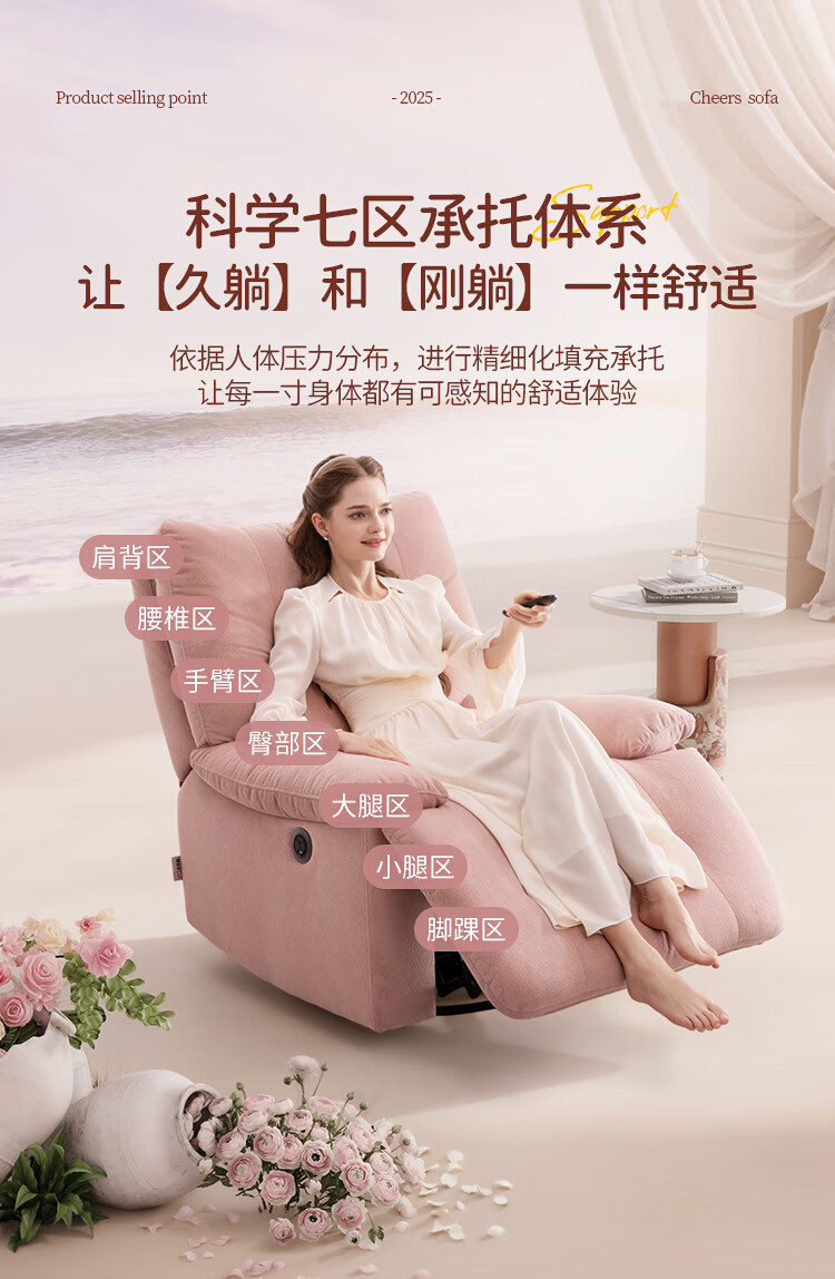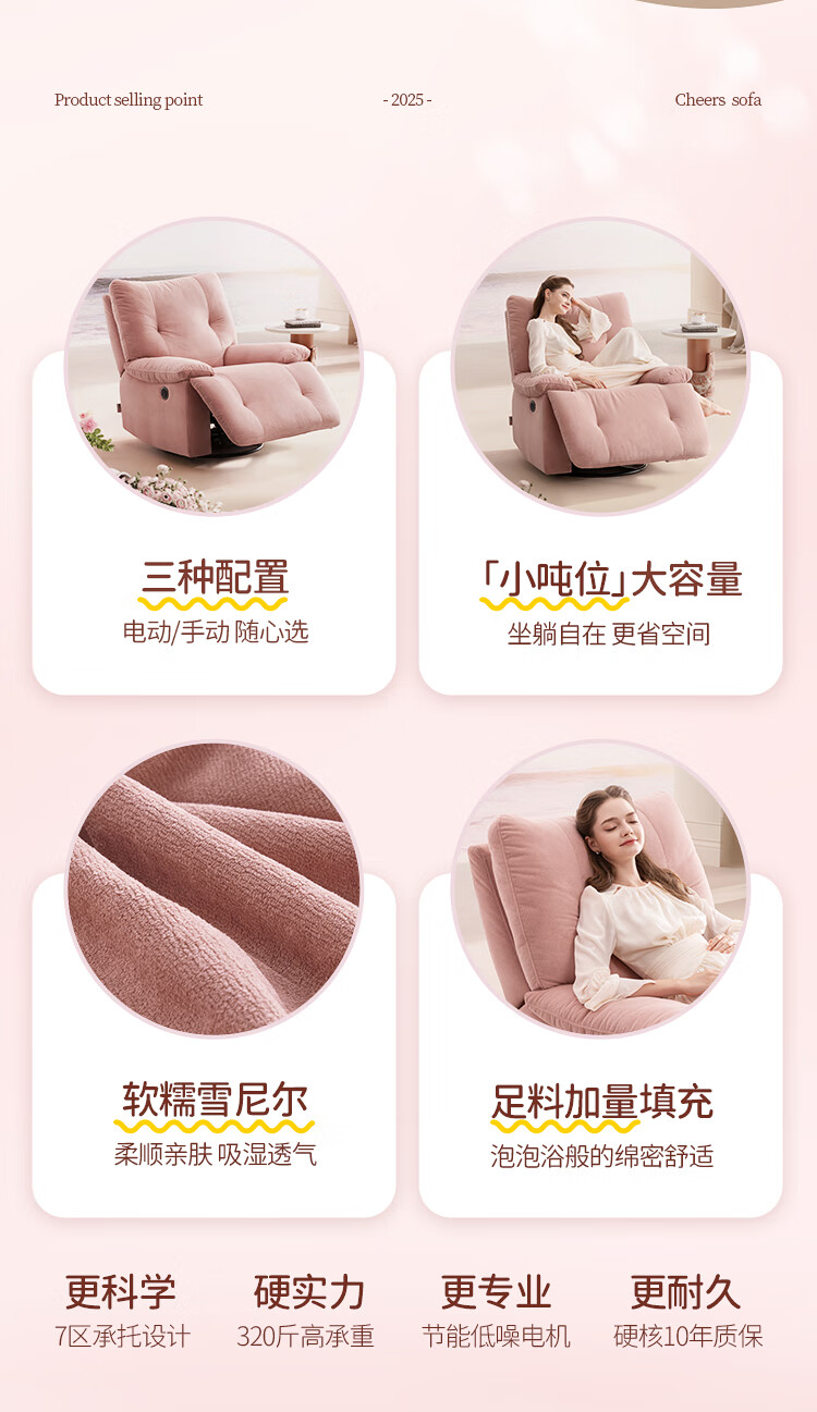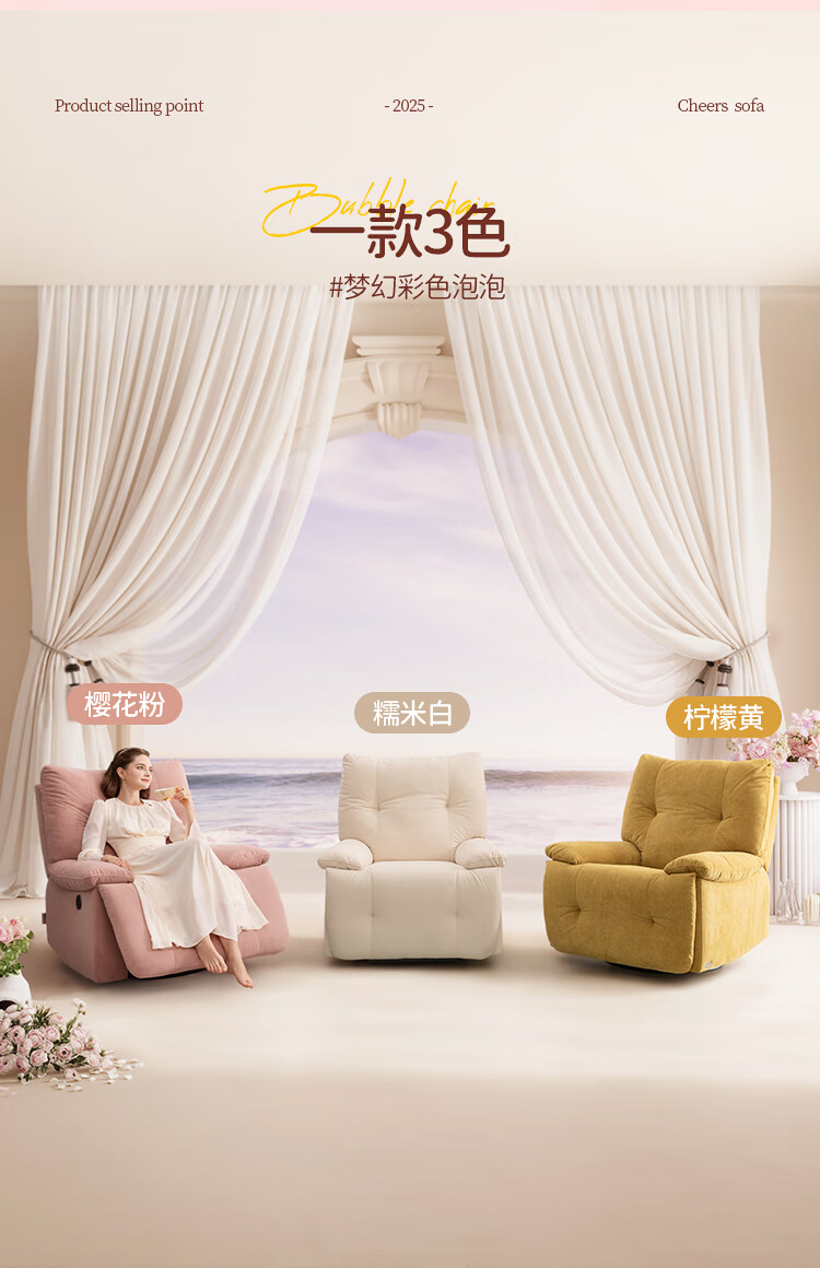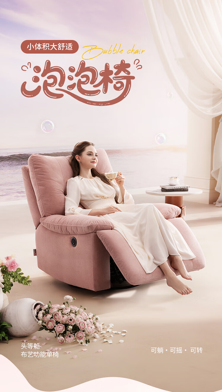 芝华仕头等舱布单椅智能椅布艺沙发客厅电动功能泡泡椅家具30779 柠檬黄-电动躺+手动摇转 延期发货(详询客服)