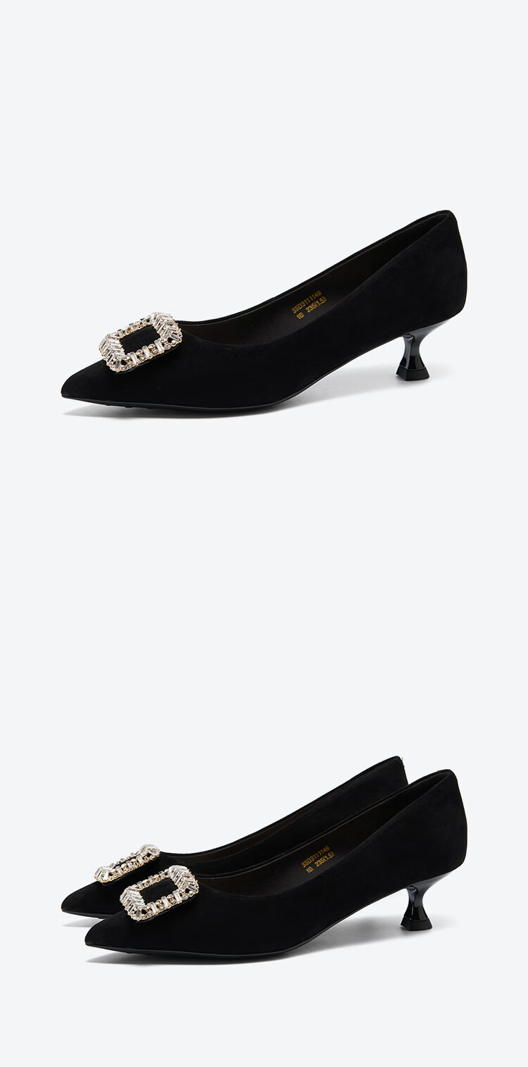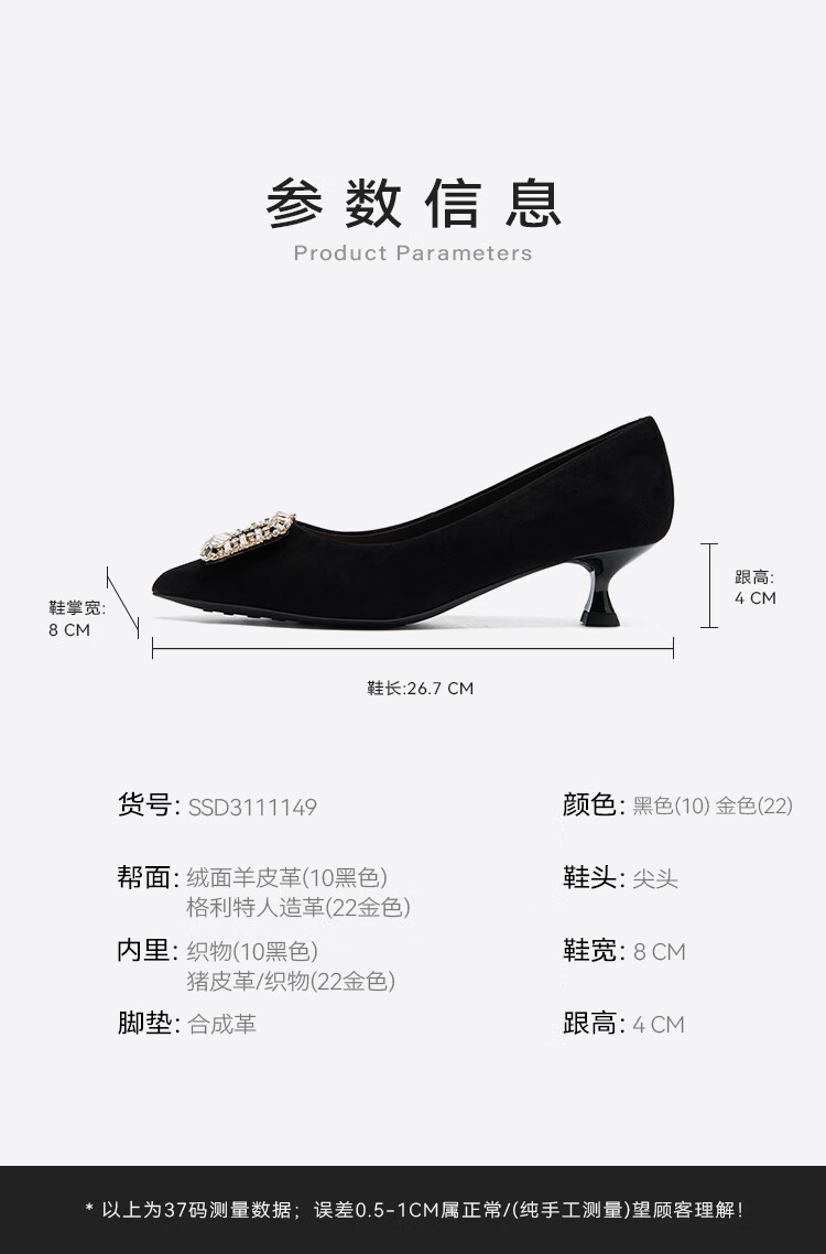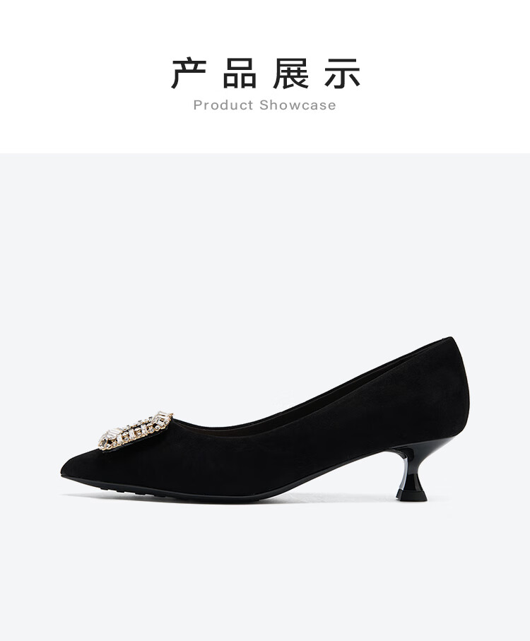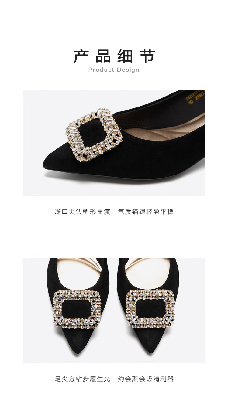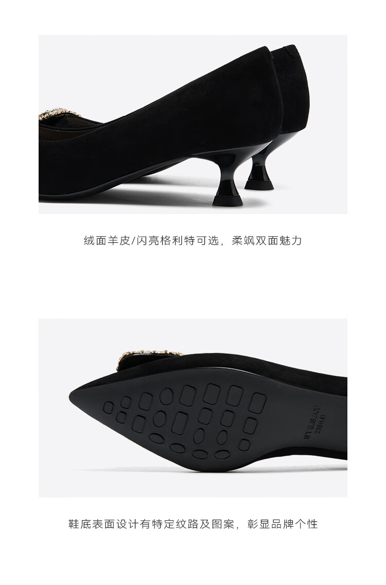 St&Sat星期六尖头方钻2025夏季新款简约时尚一脚蹬细跟女单鞋SSD3111149 黑色 38