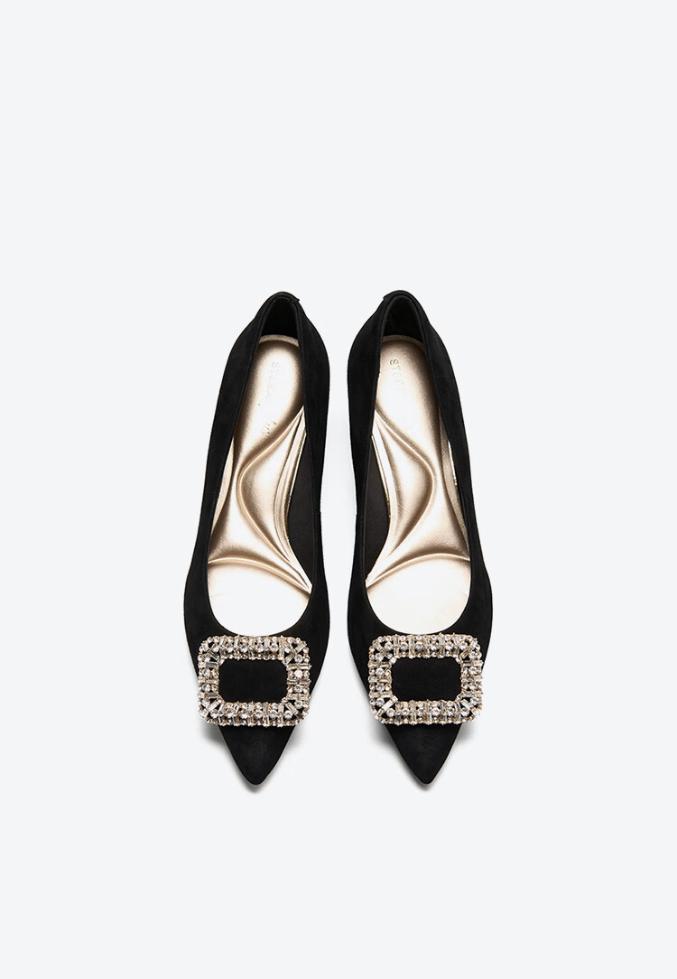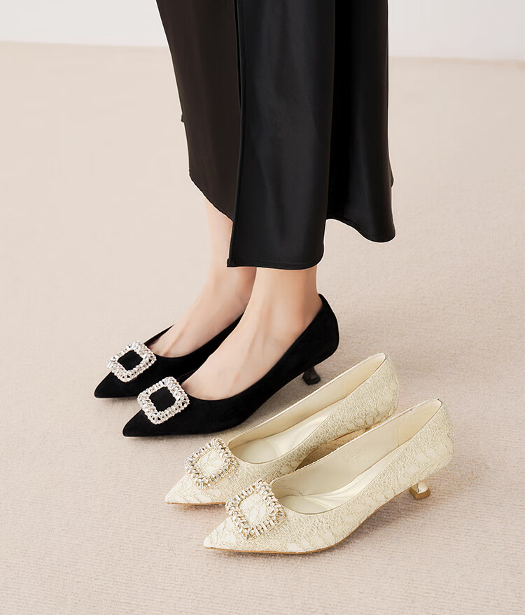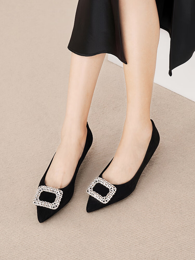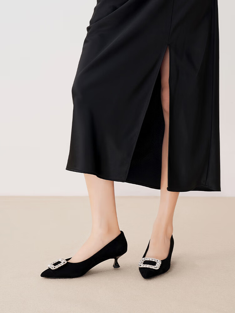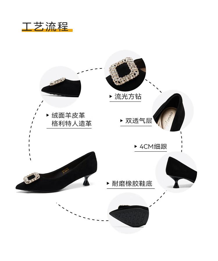 St&Sat星期六尖头方钻2025夏季新款简约时尚一脚蹬细跟女单鞋SSD3111149 黑色 38