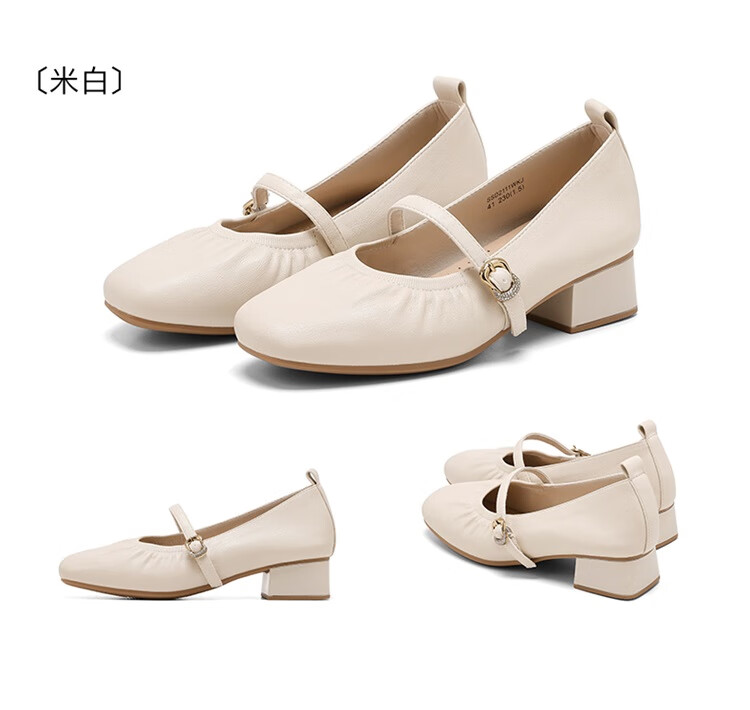星期六一字带粗跟时尚单鞋2025夏季新款百搭舒适女鞋MTSSD2111WKJ 米白 36