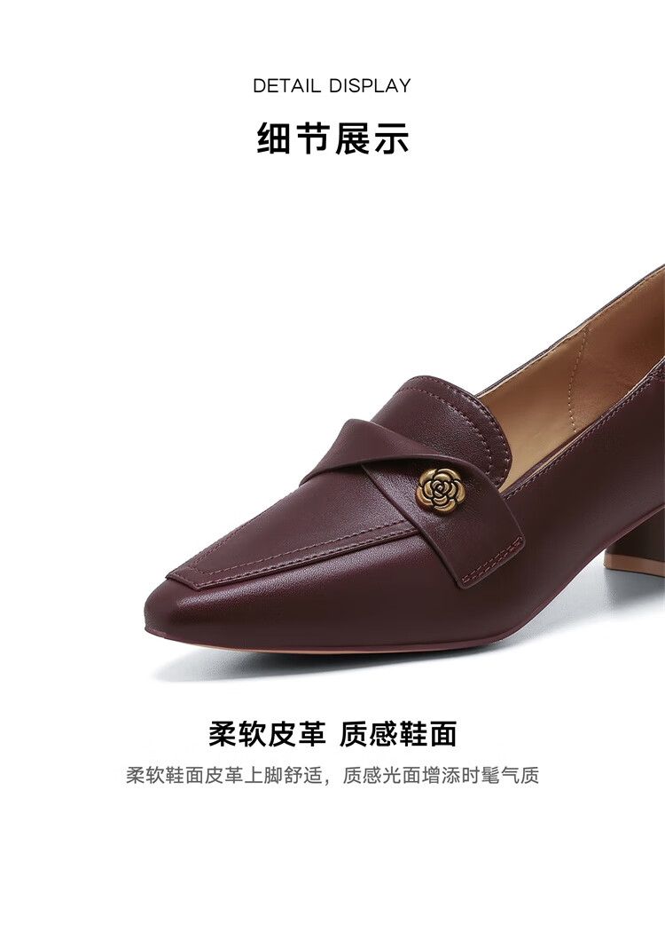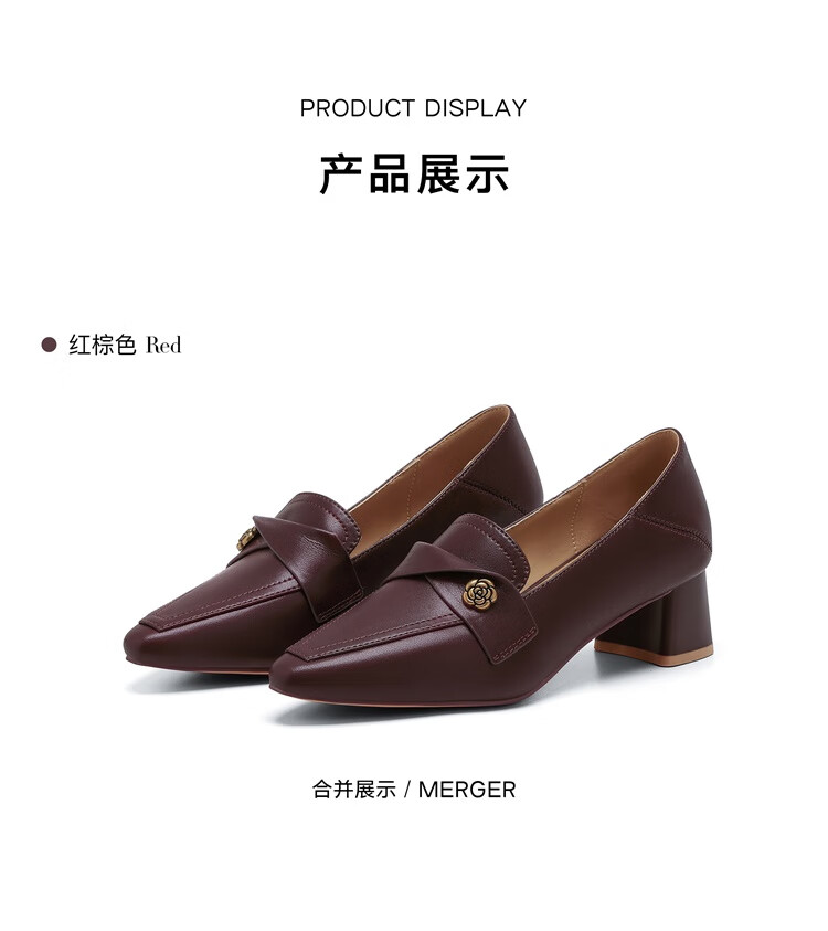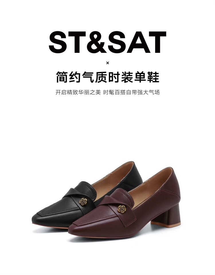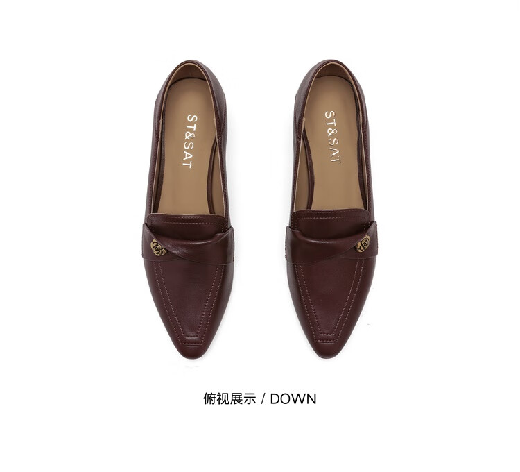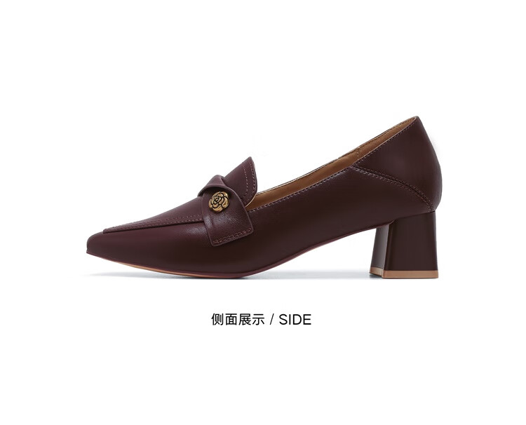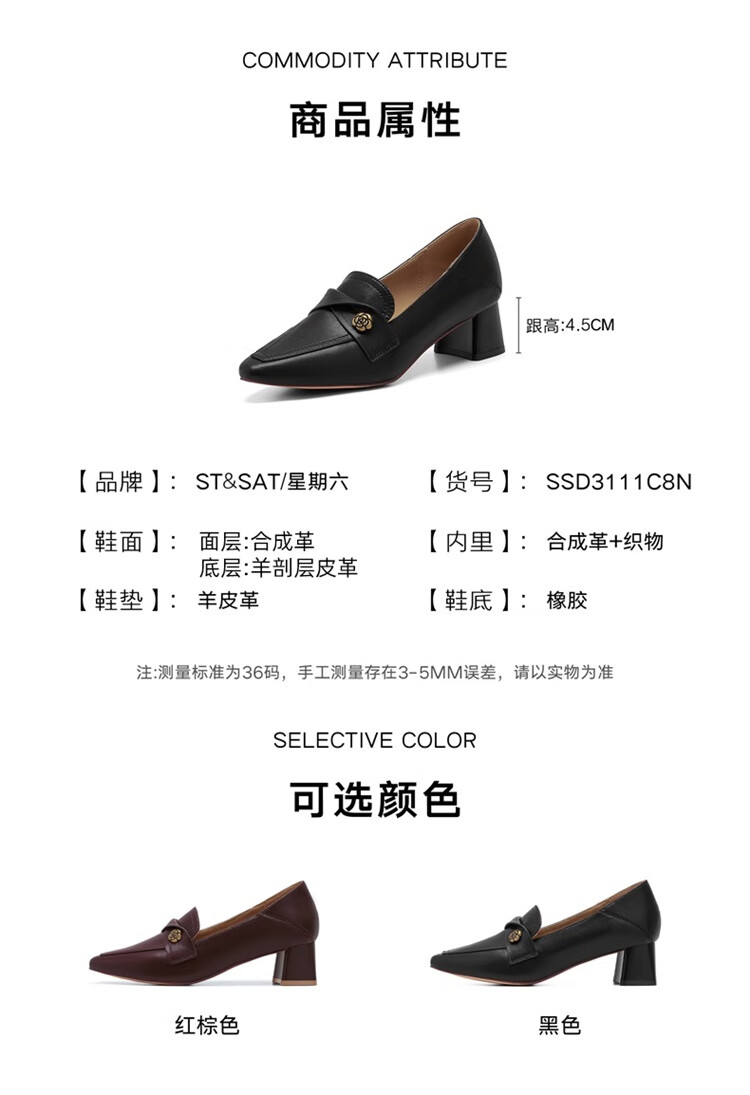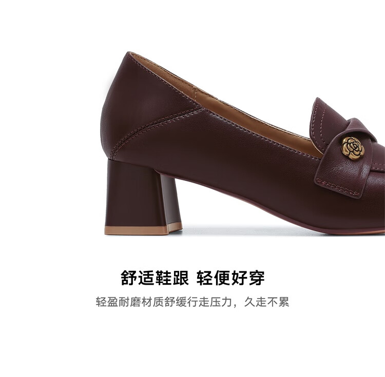 星期六时尚摩登女鞋2025秋季新款百搭舒适通勤女单鞋MTSSD3111C8N 红棕色 34