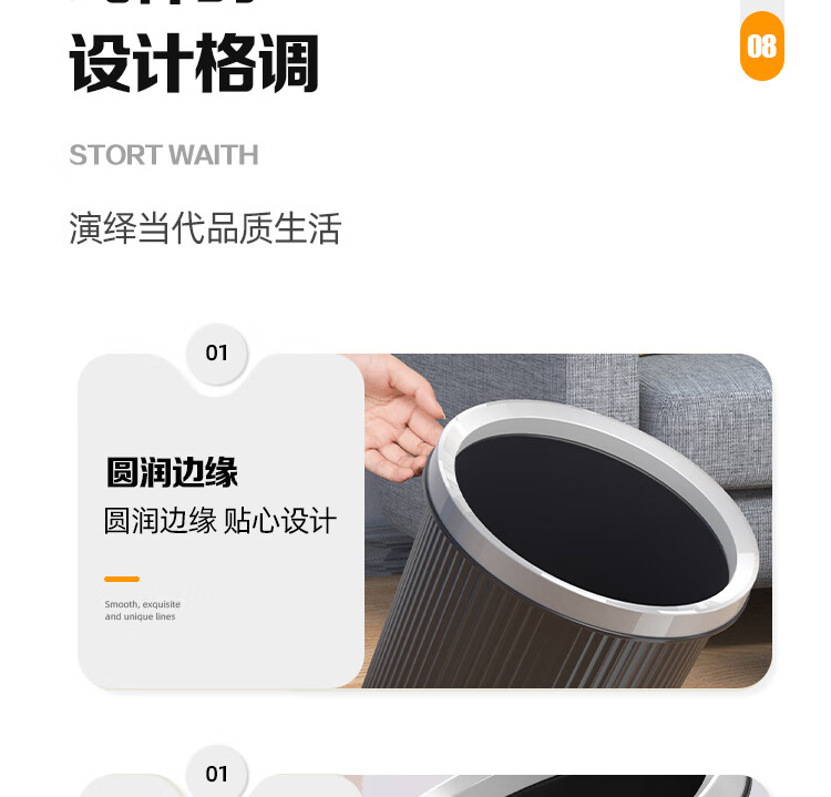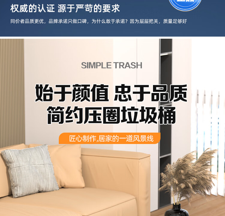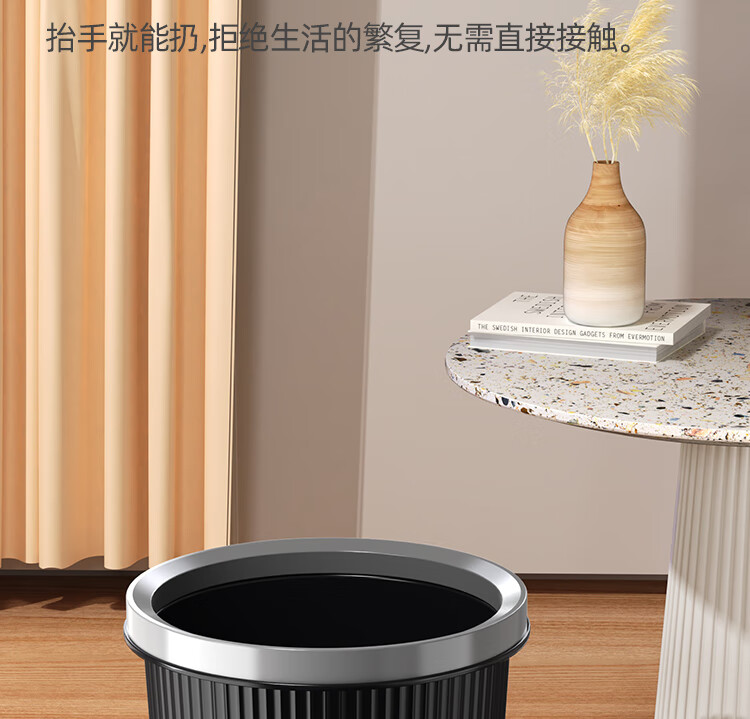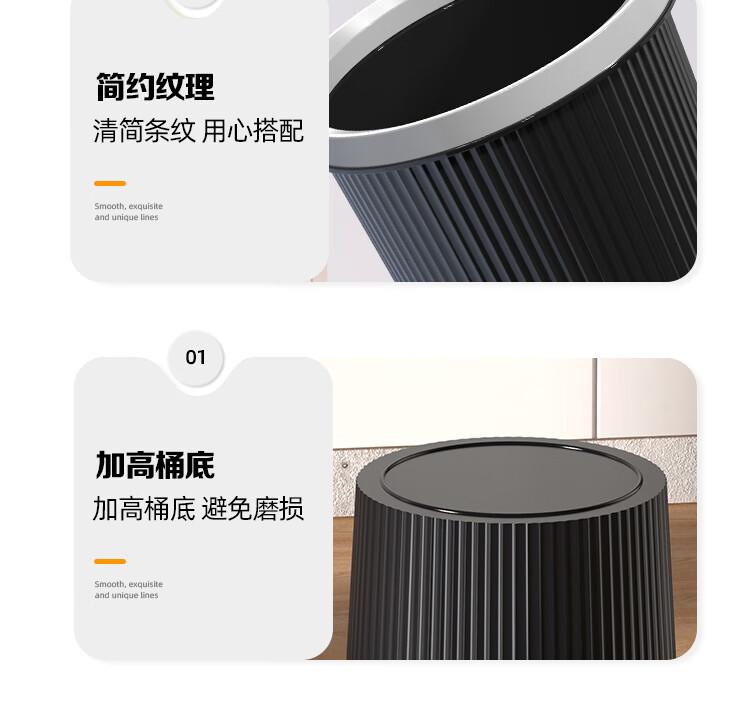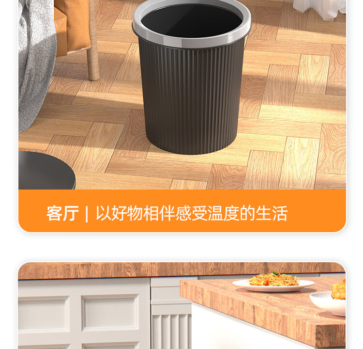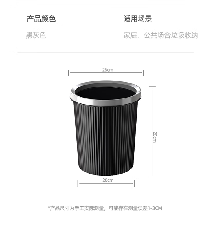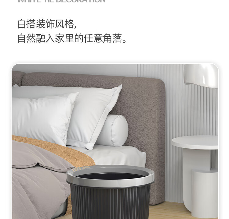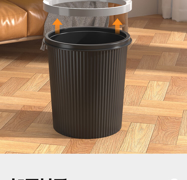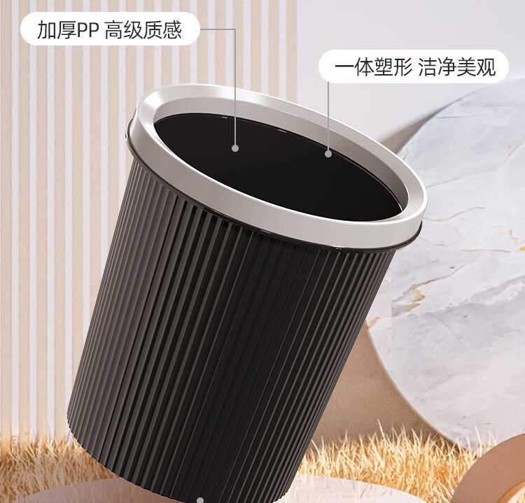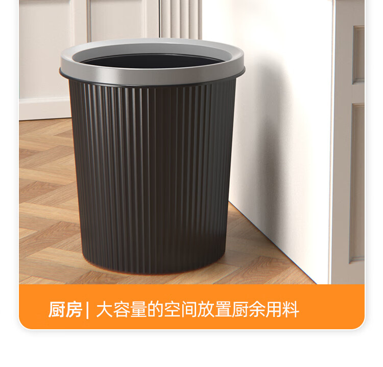 本迪11L压圈垃圾桶直投大容量黑色加厚桶身家用厨房厕所办公宿舍纸篓