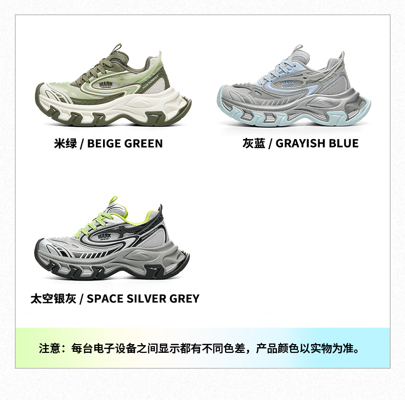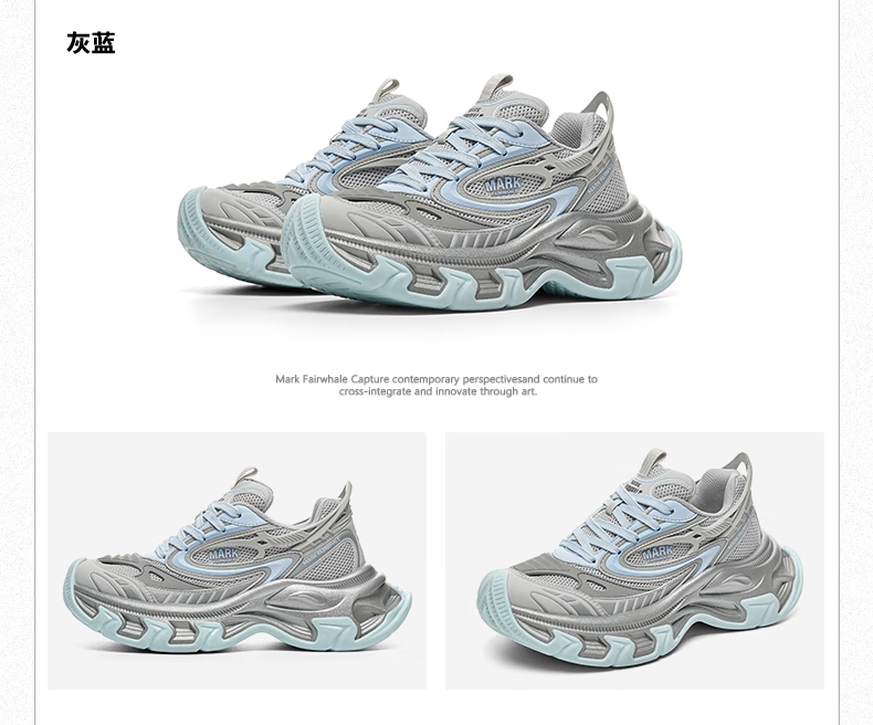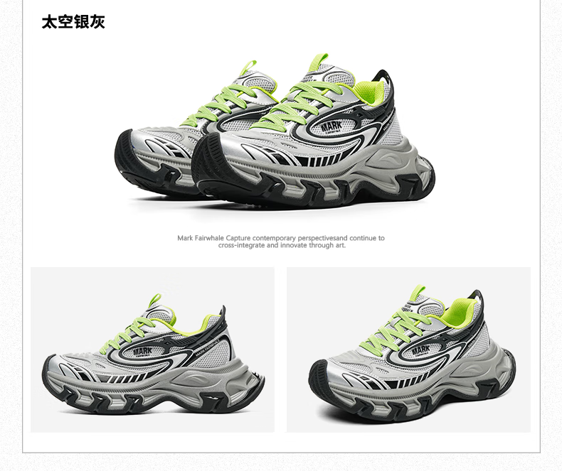 马克华菲老爹鞋男2025透气厚底增高鞋子男经典百搭运动鞋男 太空银灰 39