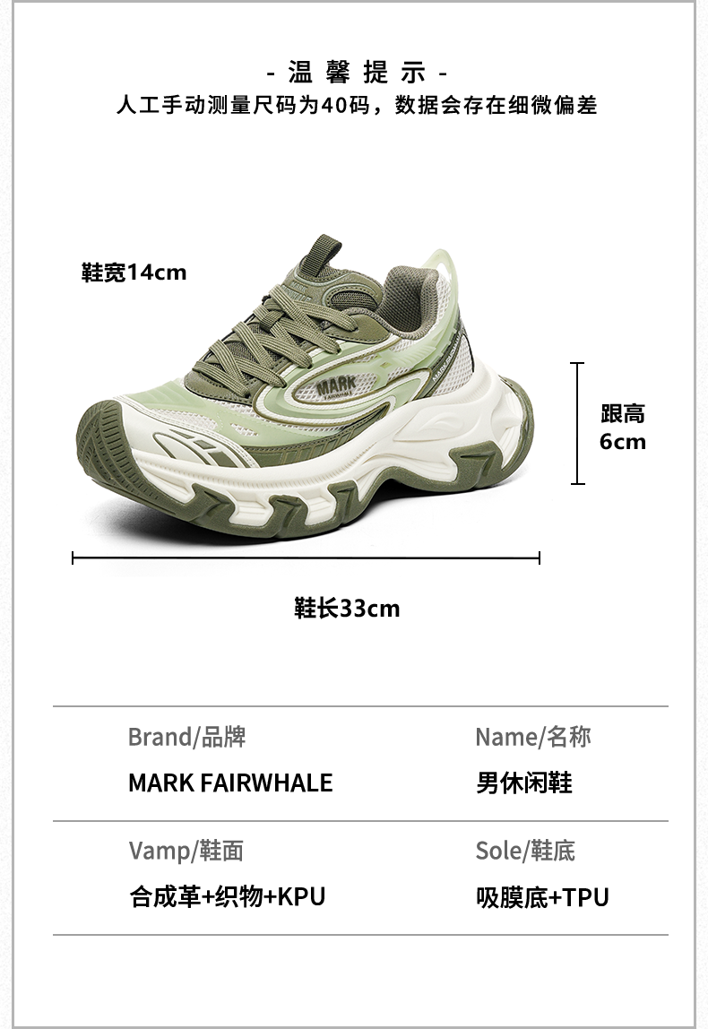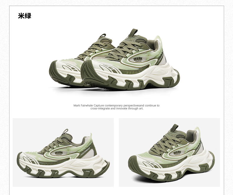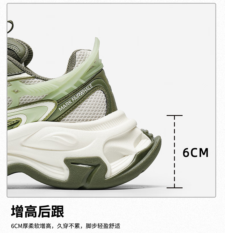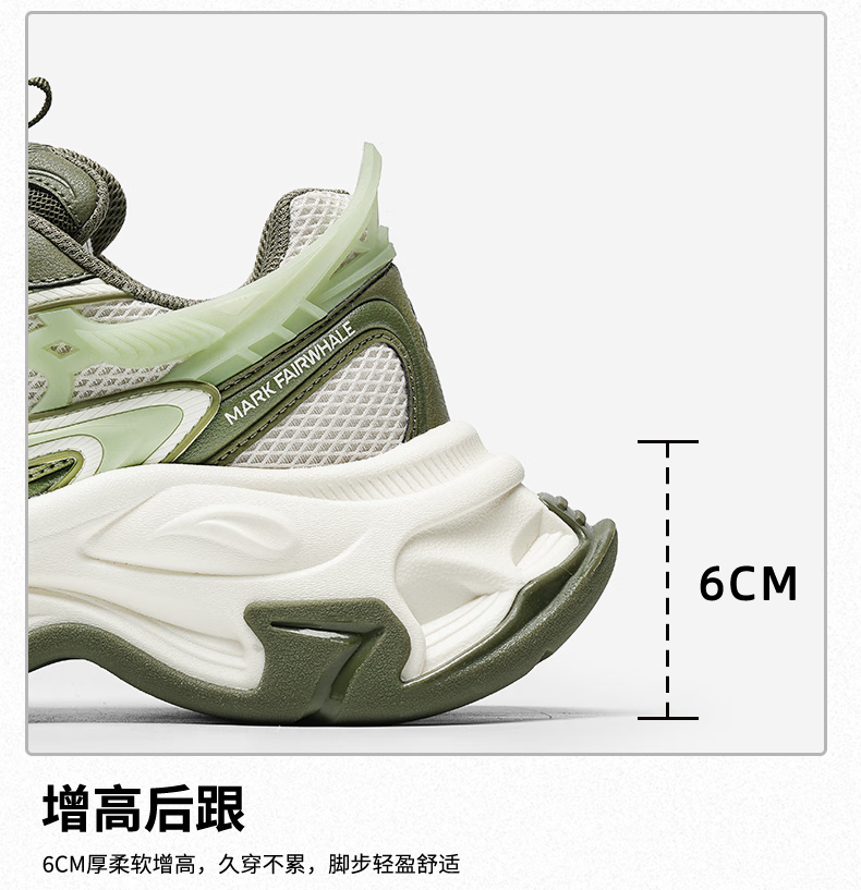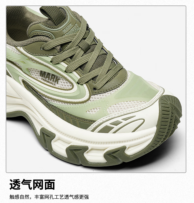 马克华菲德训鞋女2025夏季新款厚底增高透气运动鞋百搭休闲板鞋 白绿 37