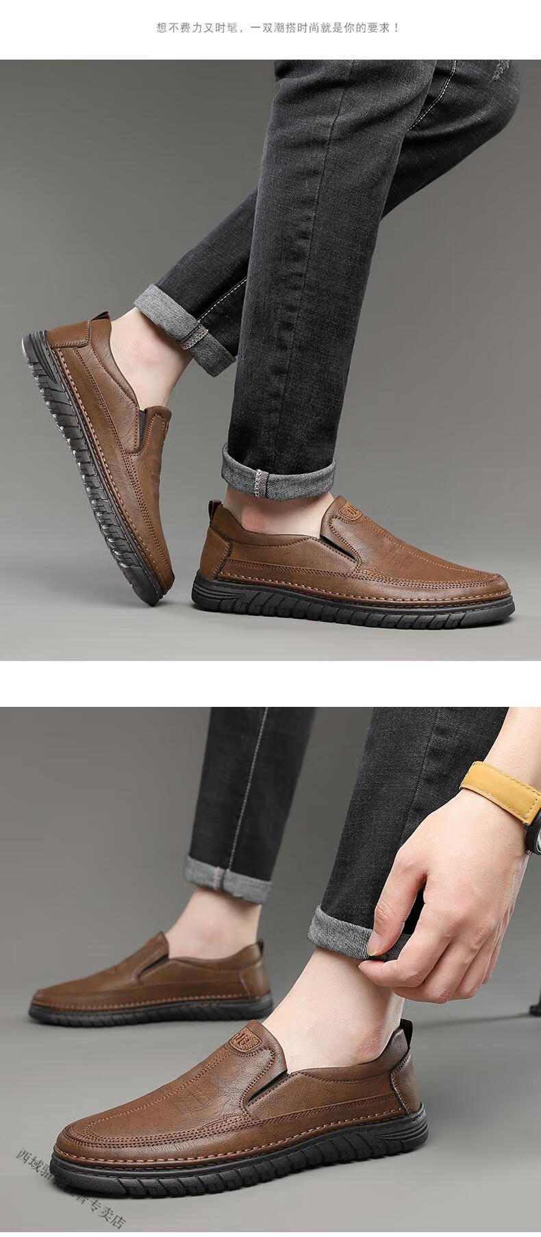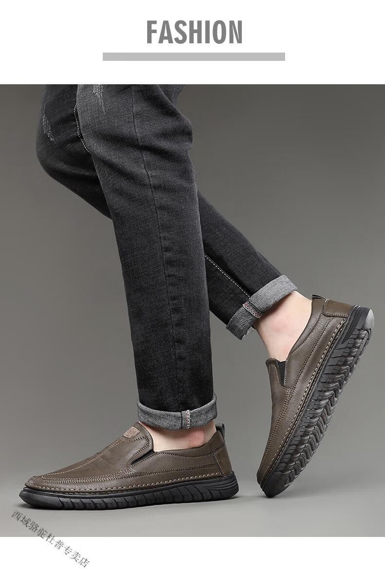 西域骆驼中老年休闲皮鞋男真皮牛筋底春夏季新款爸爸鞋软面软底手工皮鞋男 9108黑色套脚-骆驼官方品牌官网 42