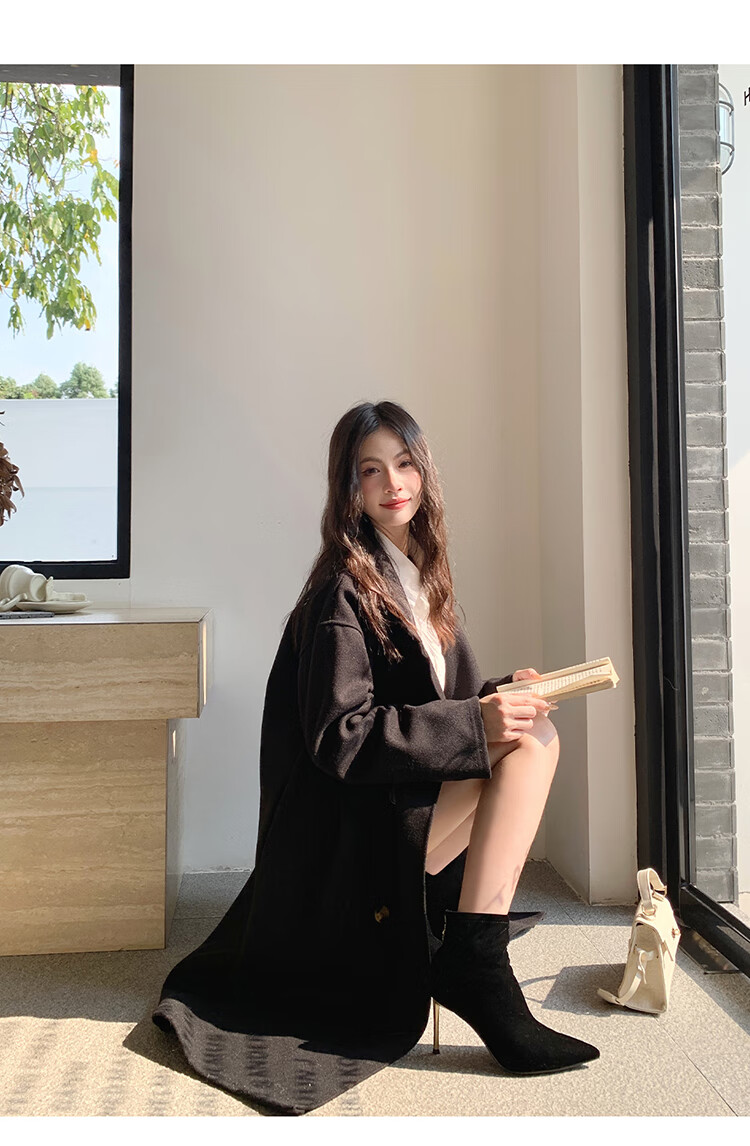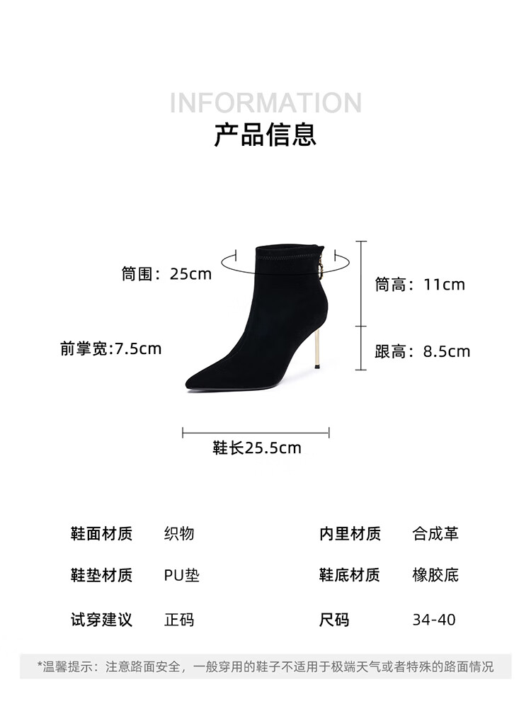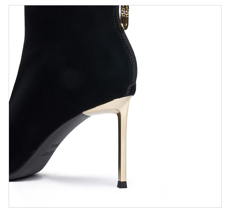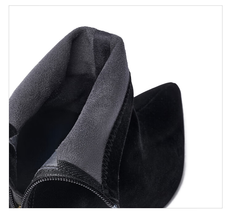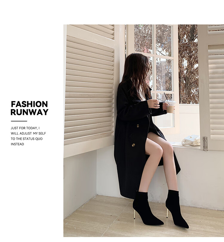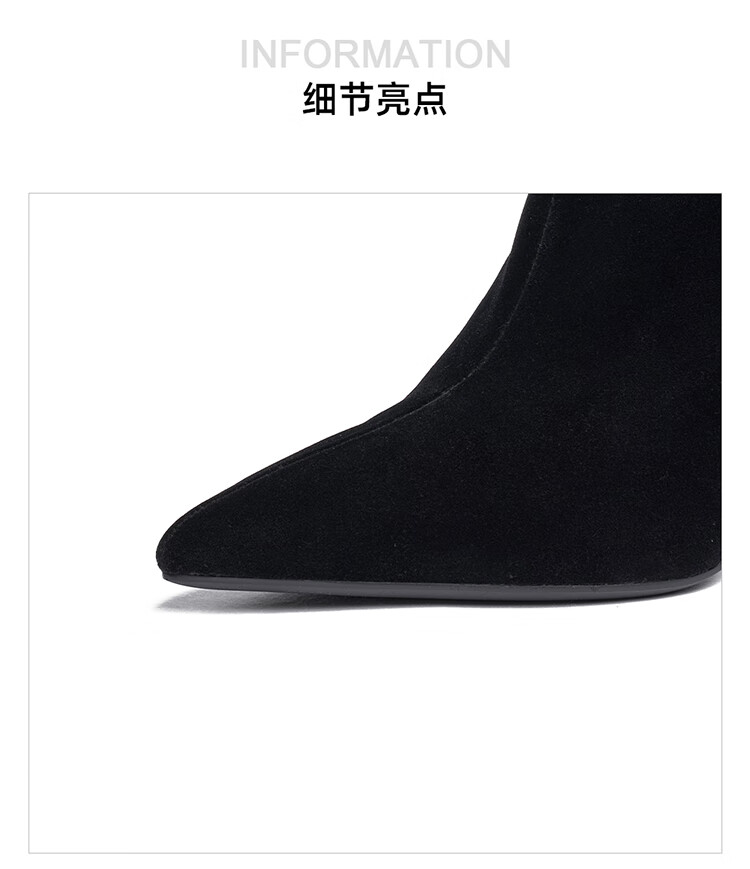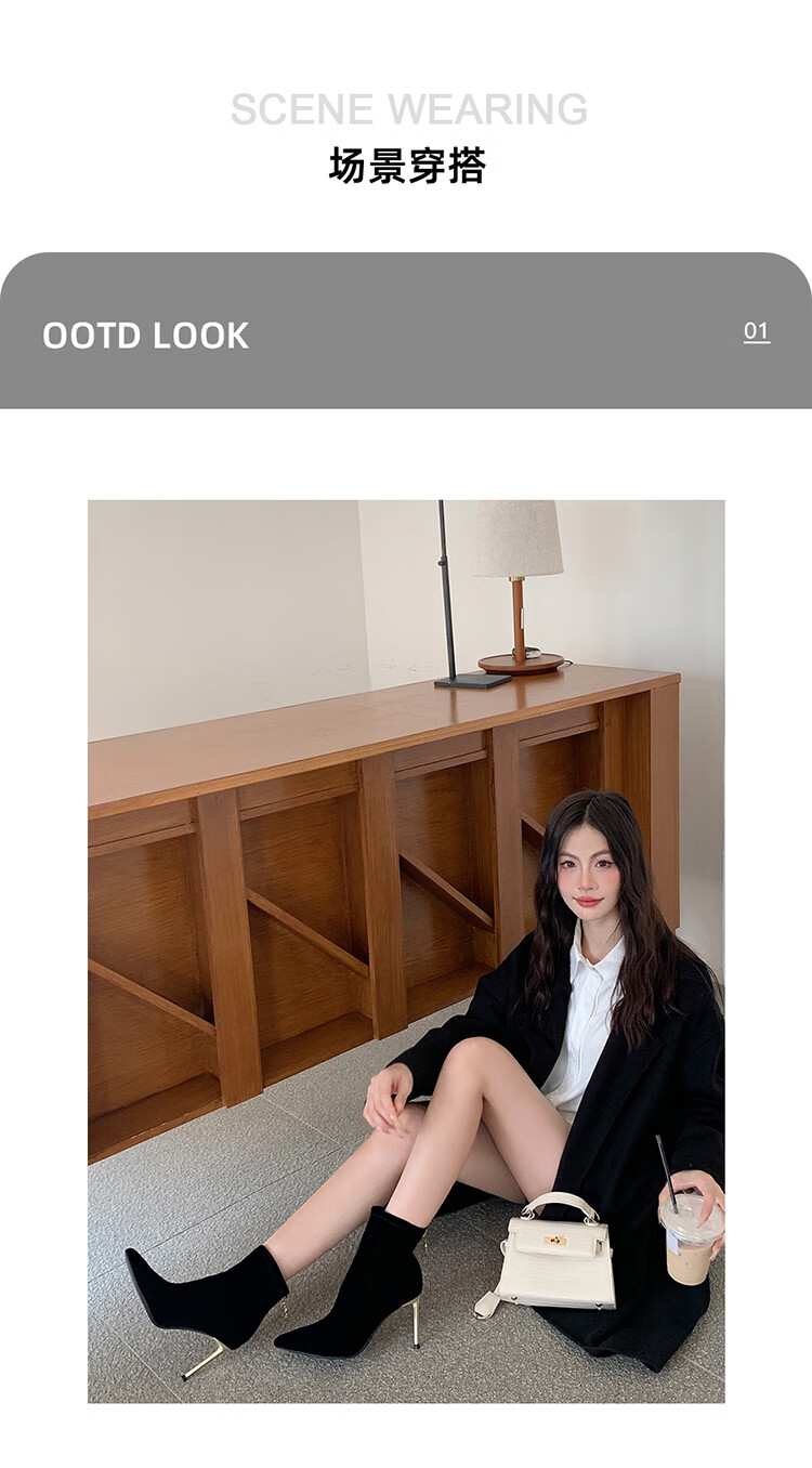 卓诗尼绒面法式弹力袜靴女2025秋季新款尖头细高跟短靴瘦瘦靴 黑色 39