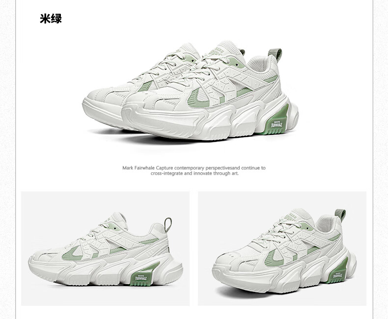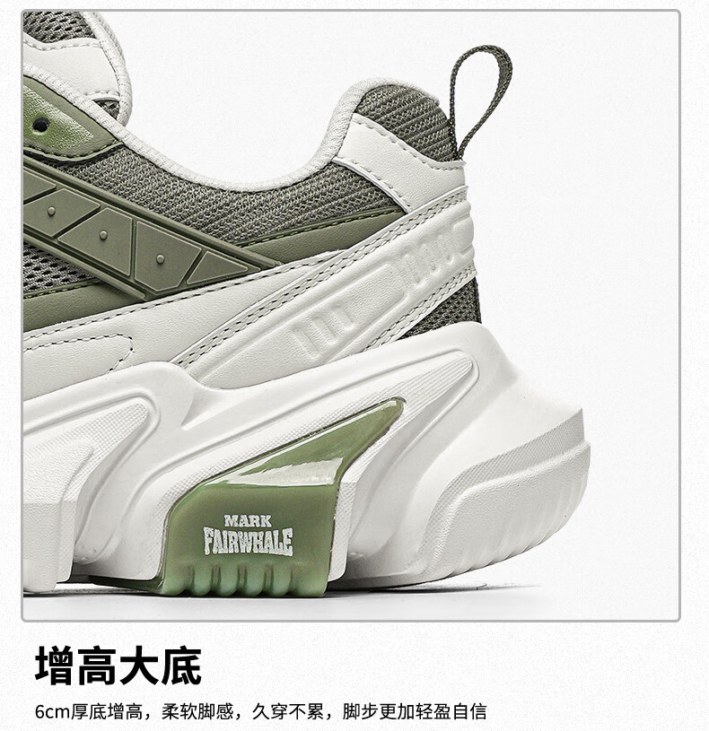 马克华菲德训鞋女2025夏季新款厚底增高透气运动鞋百搭休闲板鞋 白绿 37