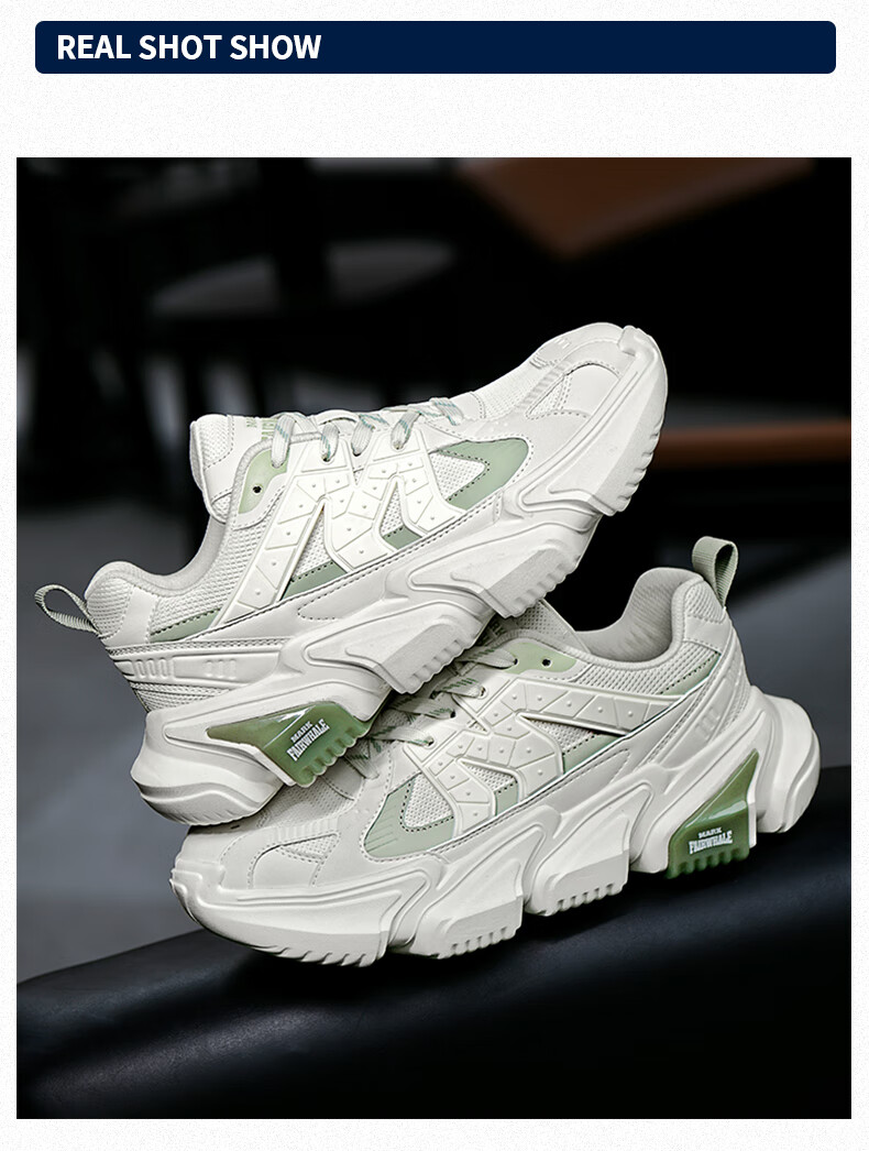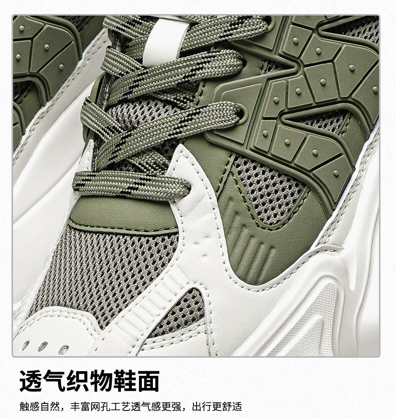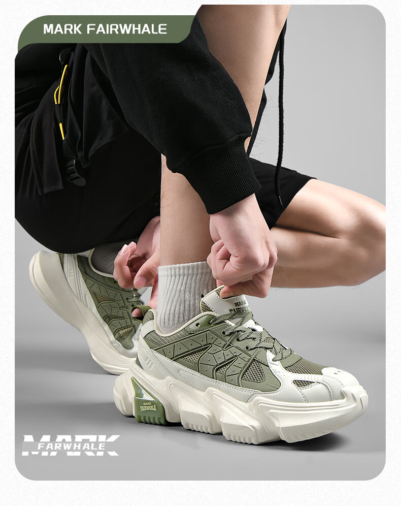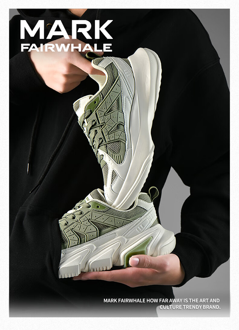 马克华菲老爹鞋男2025新款夏季透气休闲男鞋厚底增高运动鞋子男 橄榄绿 43