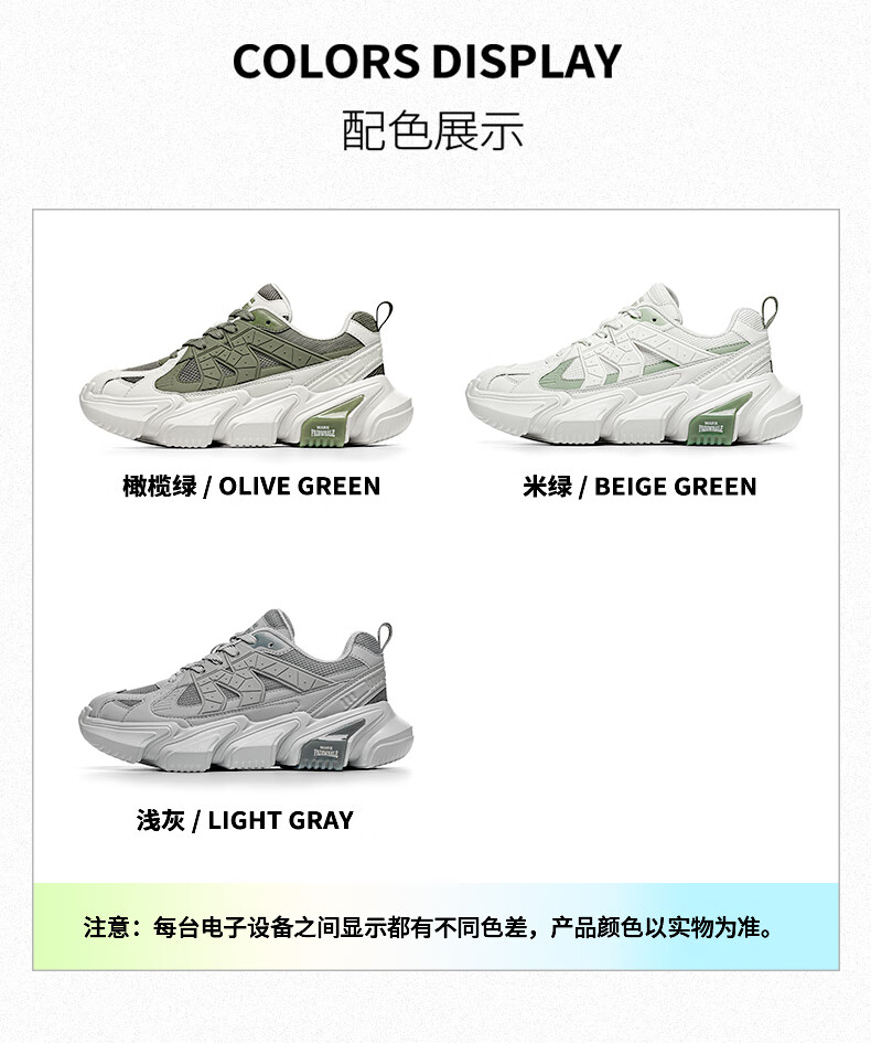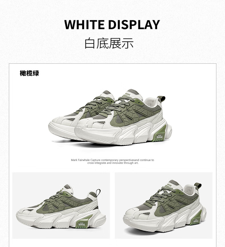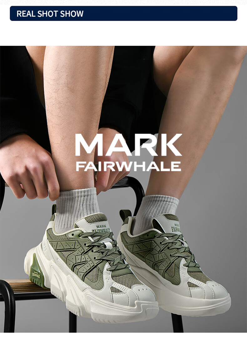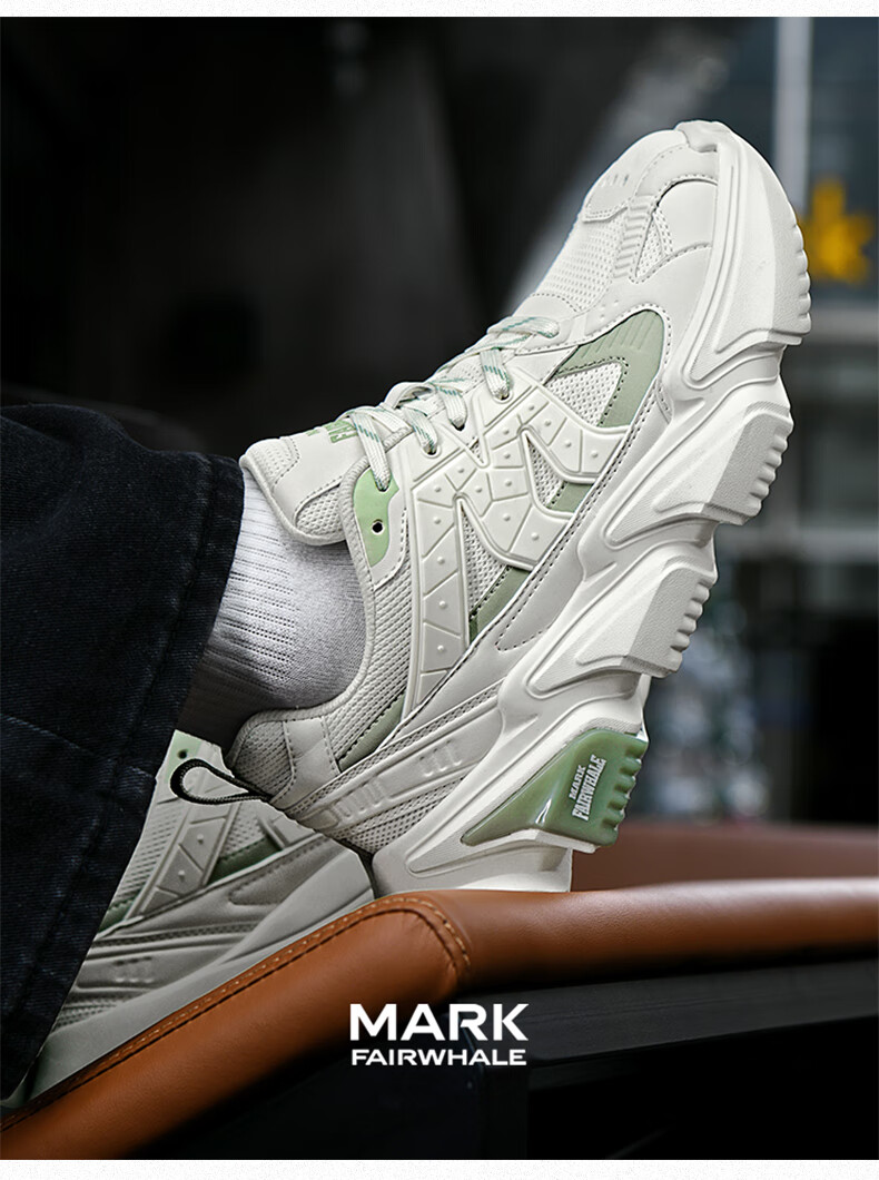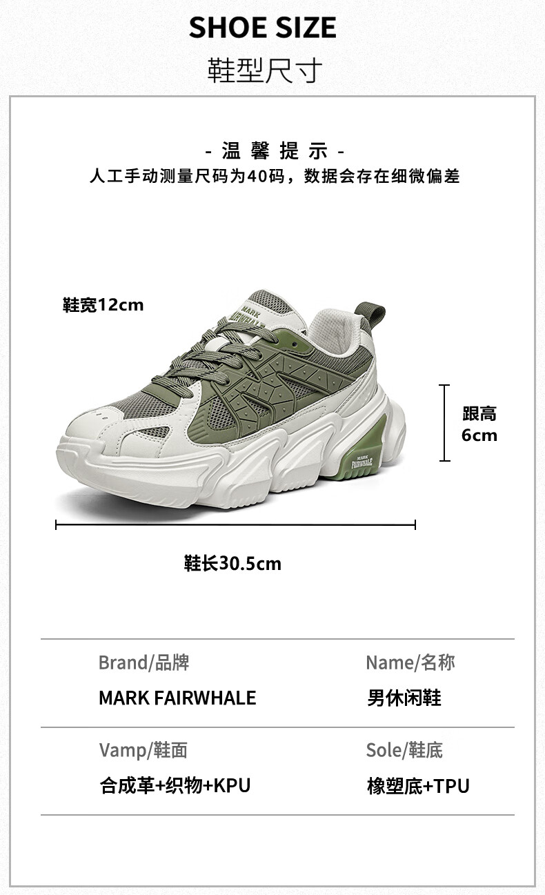 马克华菲老爹鞋男2025新款夏季透气休闲男鞋厚底增高运动鞋子男 橄榄绿 43