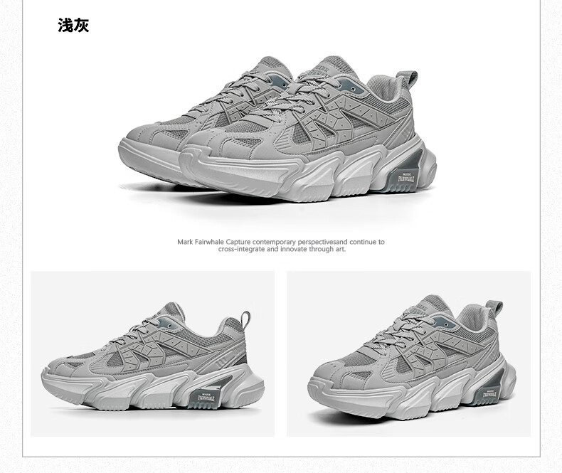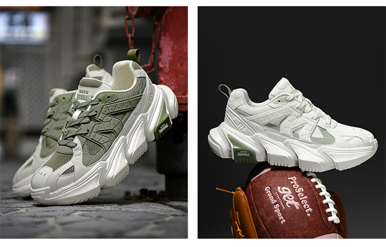 马克华菲男鞋厚底老爹鞋2025新款秋季增高鞋子男士运动休闲鞋 白棕 45