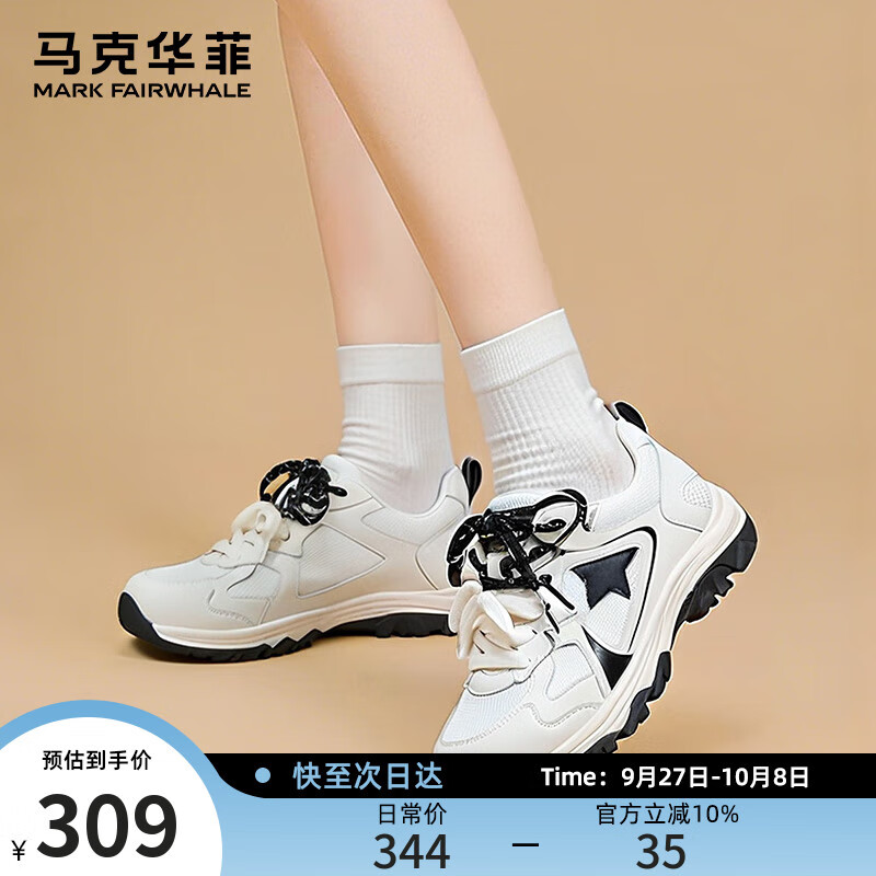 马克华菲男鞋厚底老爹鞋2025新款秋季增高鞋子男士运动休闲鞋 白棕 45