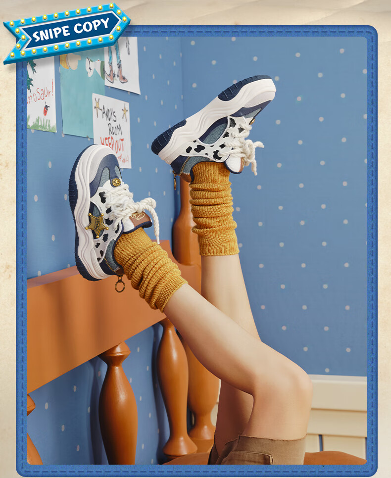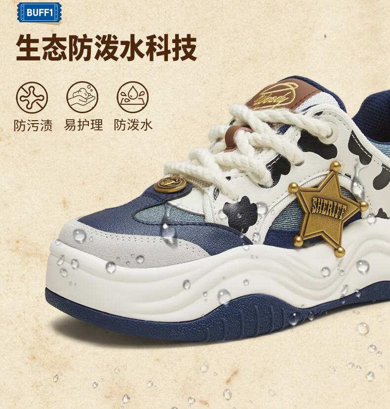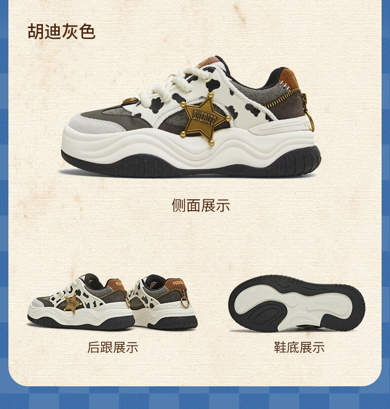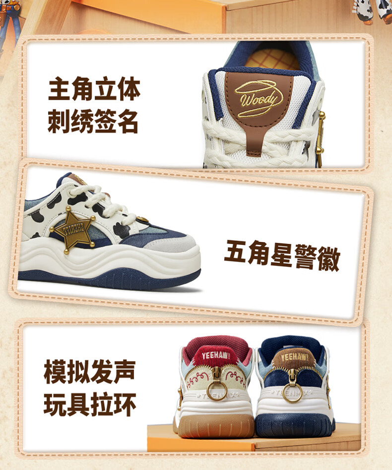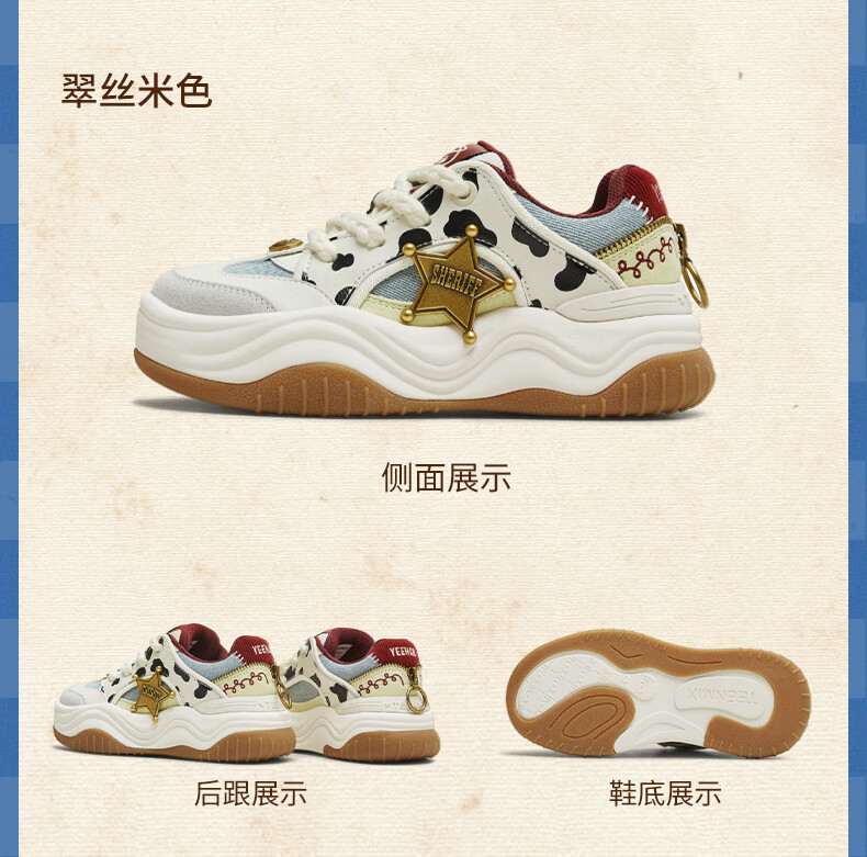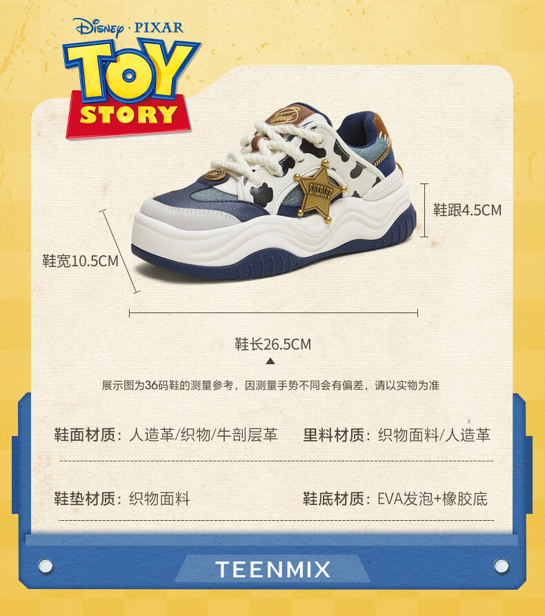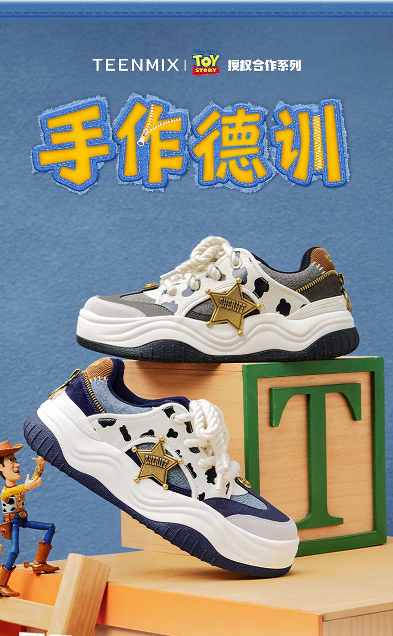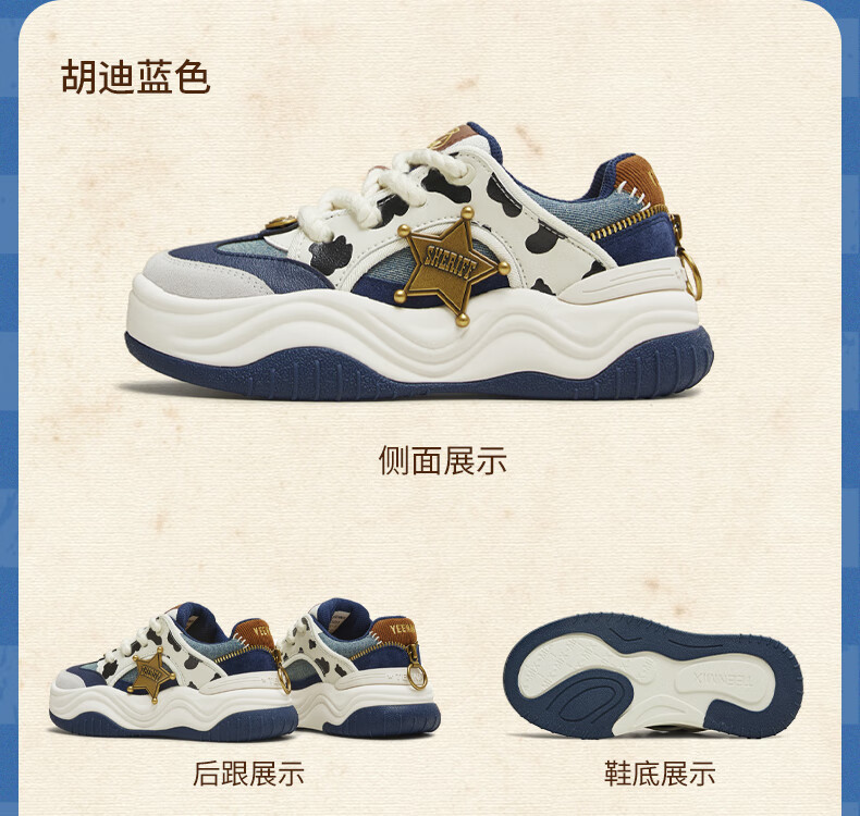 天美意吴宣仪/黄子弘凡玩具总动员联名手作德训鞋男女秋增高运动板鞋 胡迪蓝色【男款】 黄子弘凡同款 39