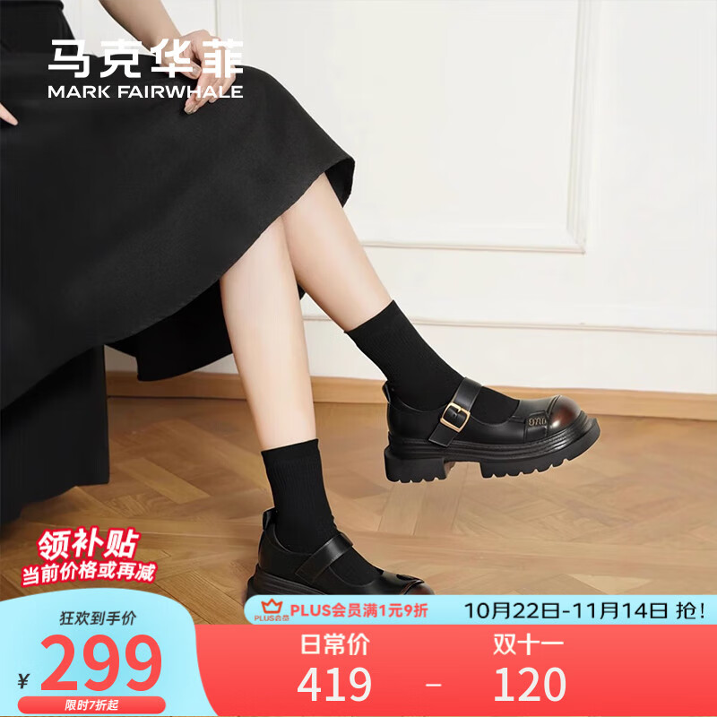 马克华菲厚底乐福鞋女2025夏季新款英伦风增高玛丽珍小皮鞋女 擦驼色 38
