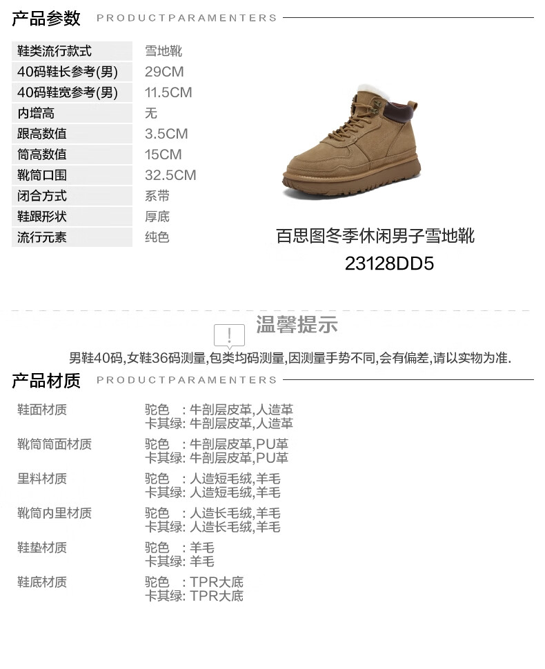 百思图2025冬季新款商场同款简约户外休闲男短靴23128DD5【预售】 驼色 38
