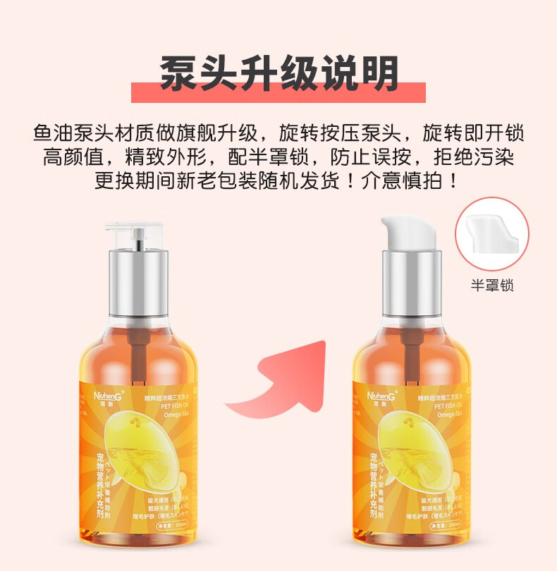 纽衡(NiuhenG)纽衡猫用鱼油Omega3深海三文鱼浓缩美毛亮毛护肤宠物狗狗鱼油液体 深海三文鱼油200ml