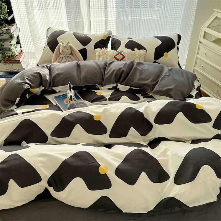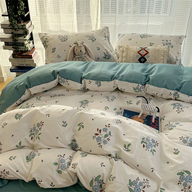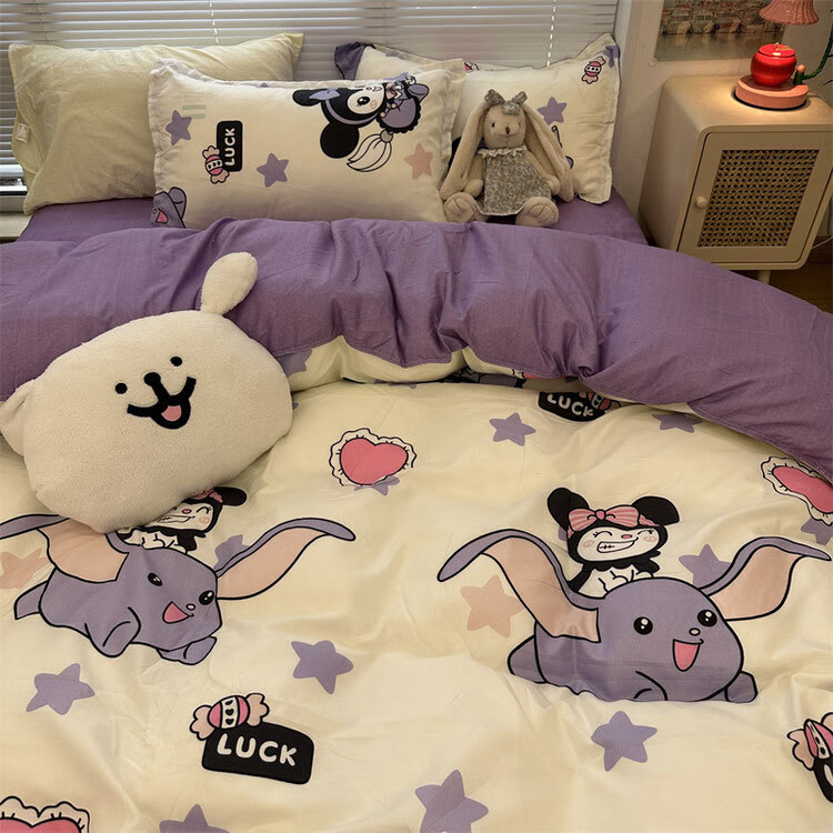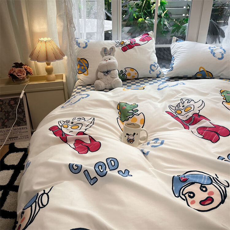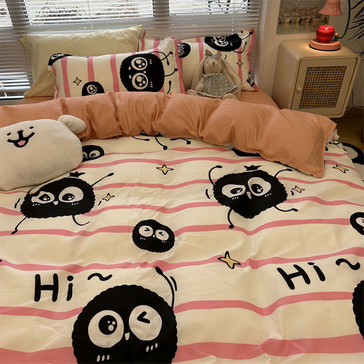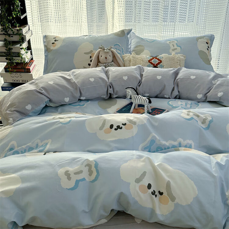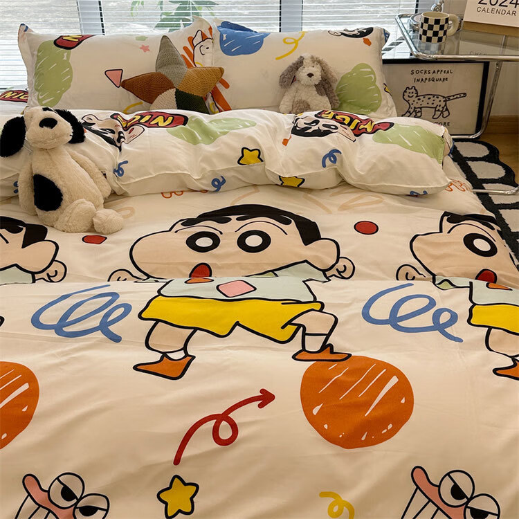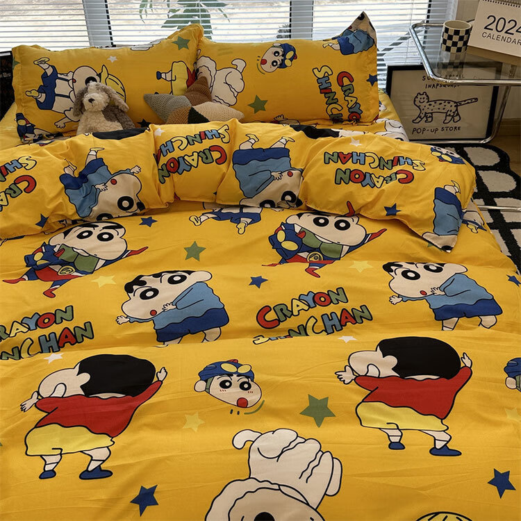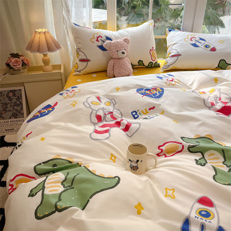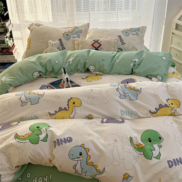 美克杰卡通ins恐龙可爱水洗棉床单被套床上1.5四件套学生宿舍单人三件套 趣味小新ljf 1.5m四件套(被套150x200)