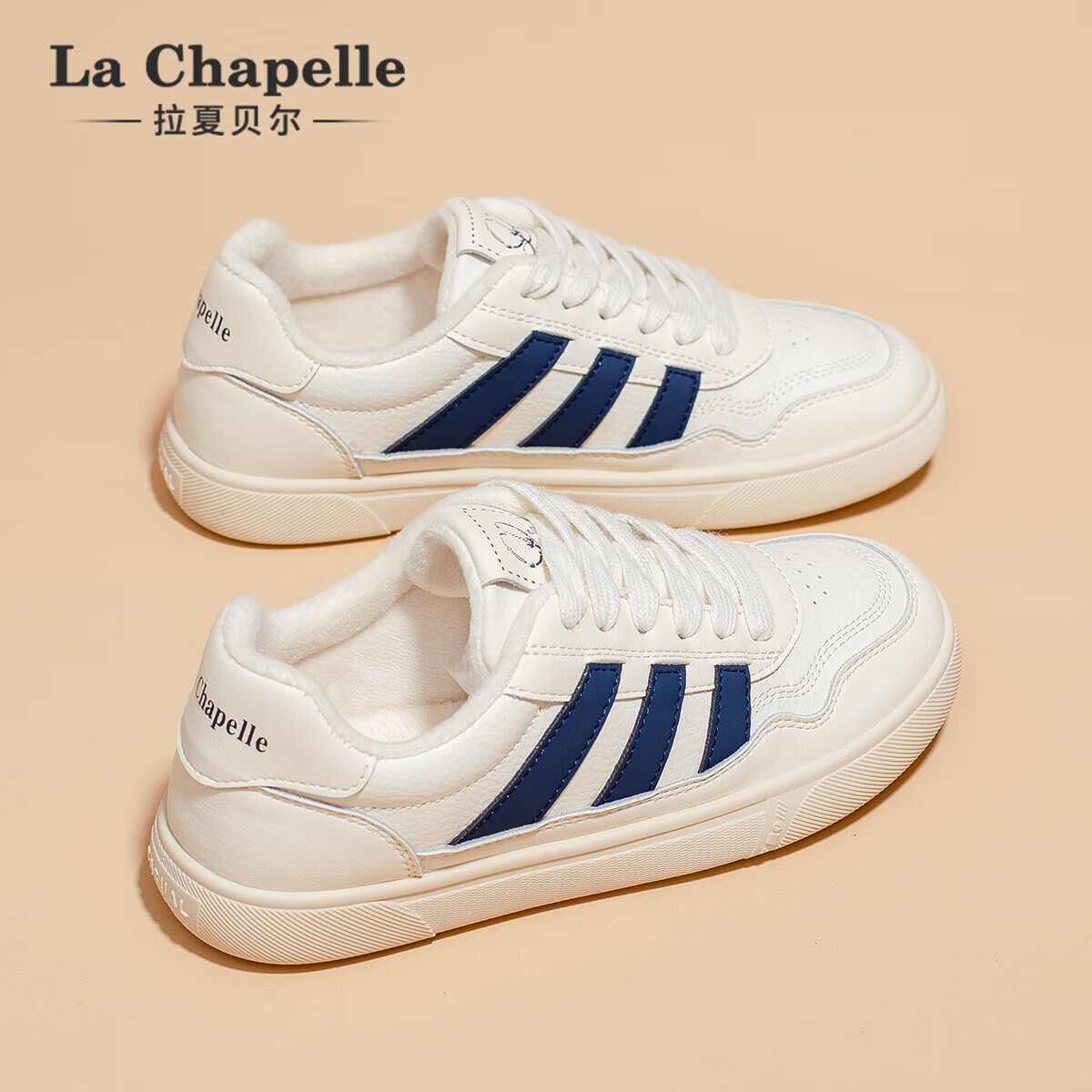 拉夏贝尔女鞋秋季新款加绒德训鞋保暖小白鞋女通勤透气运动休闲百搭板鞋女 米卡其 加绒保暖 35