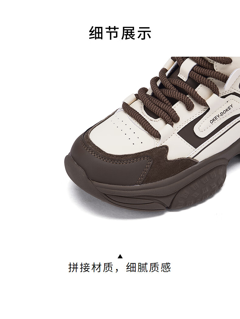 大东老爹鞋女鞋2025年秋季新款时尚潮流休闲鞋拼接5015 米红色 35