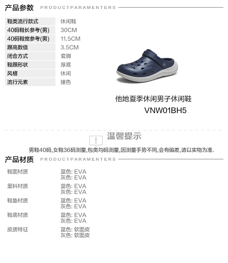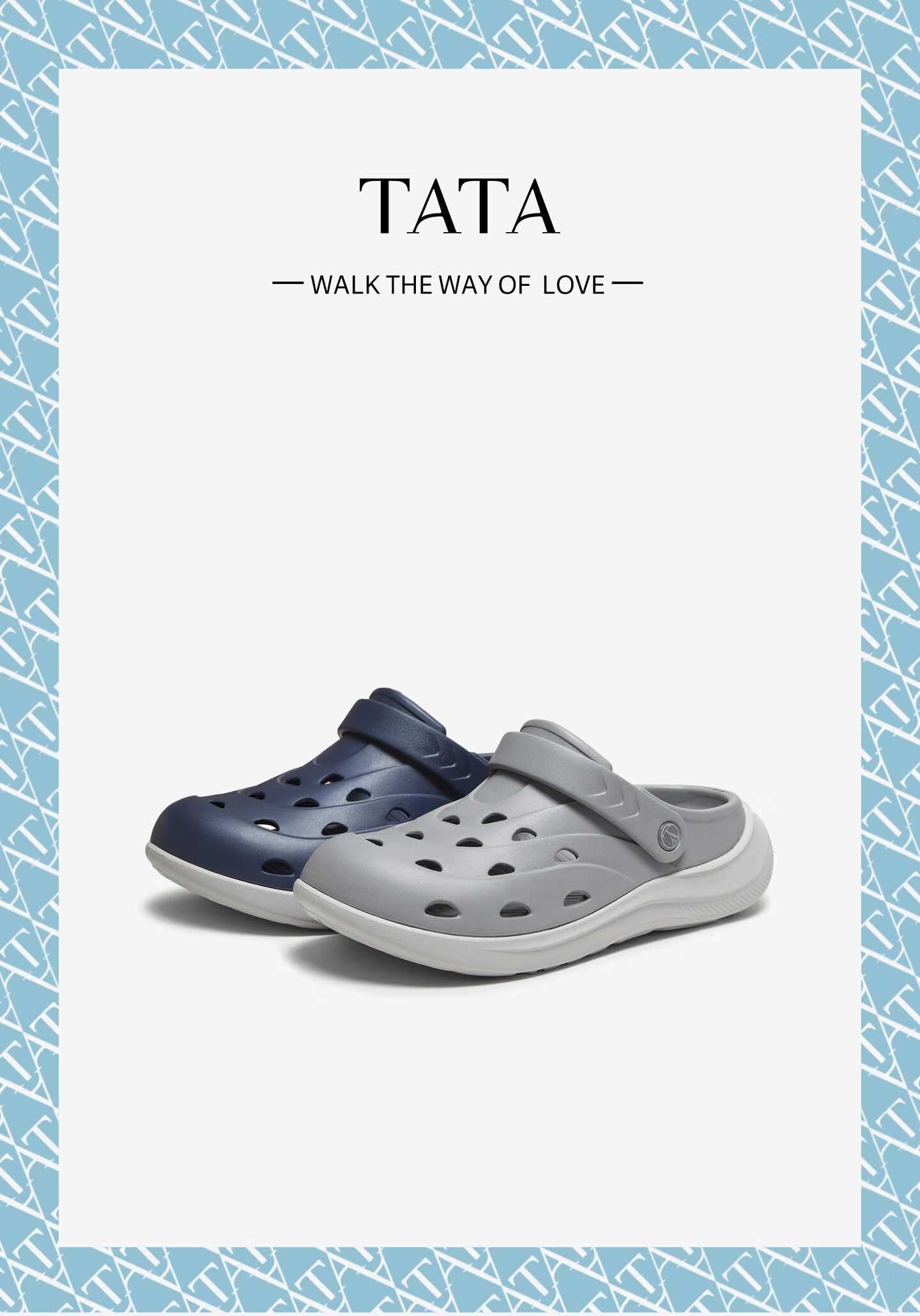 他她(TATA)2025夏商场同款舒适百搭休闲男洞洞鞋新款VNW01BH5 蓝色 43